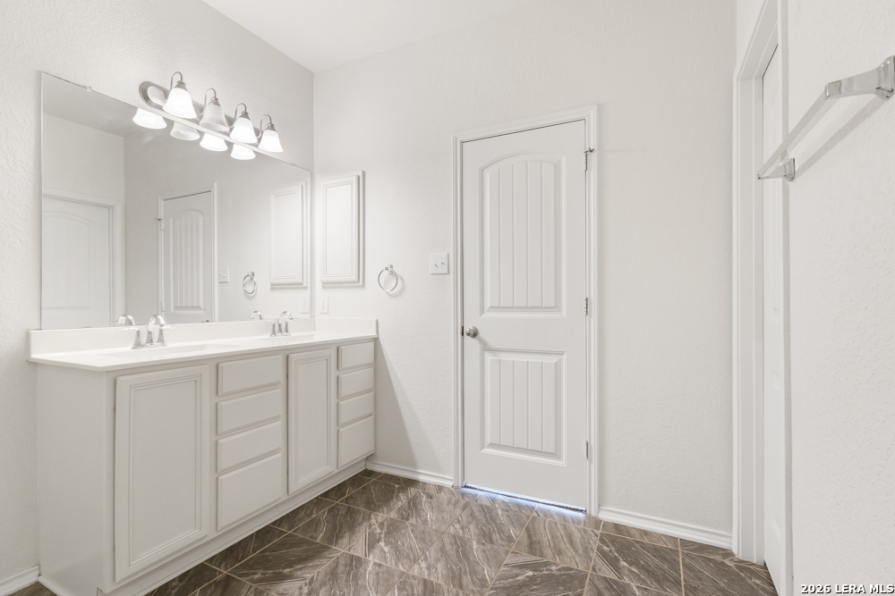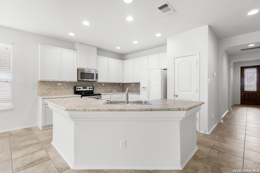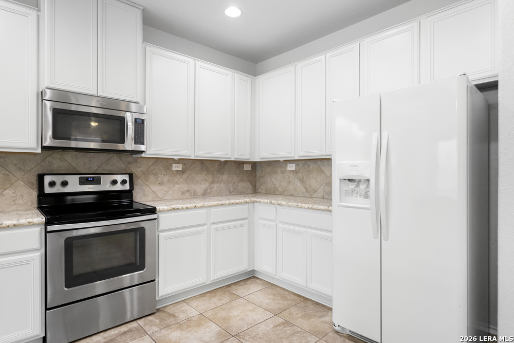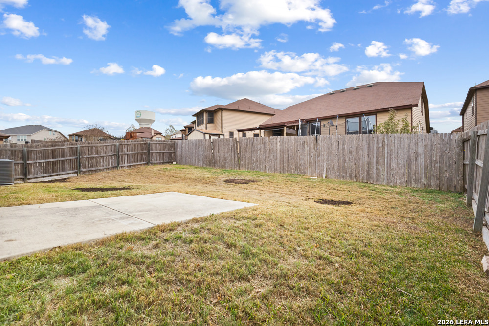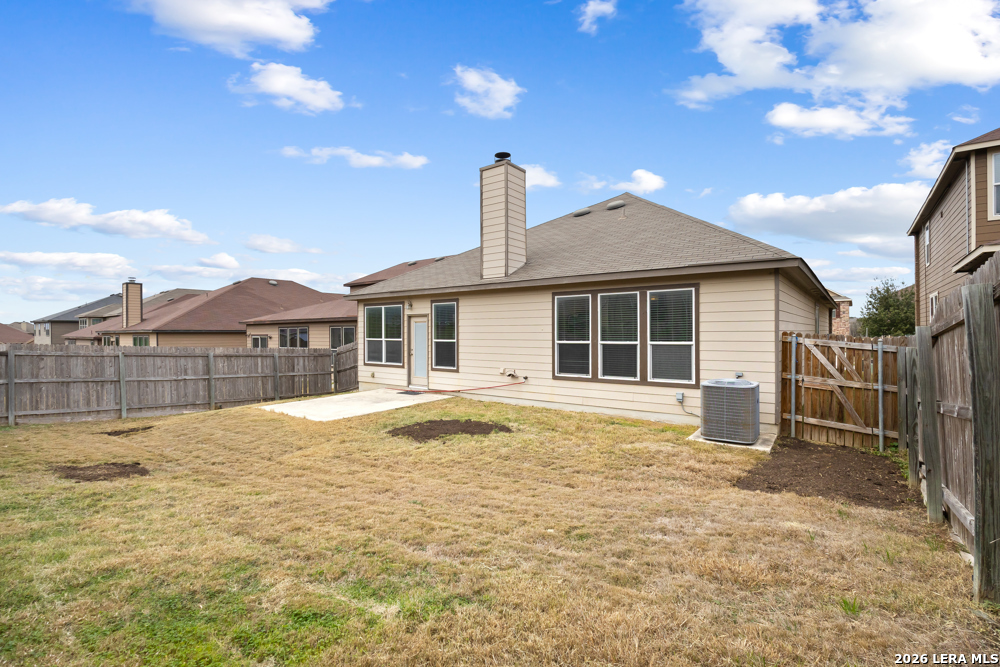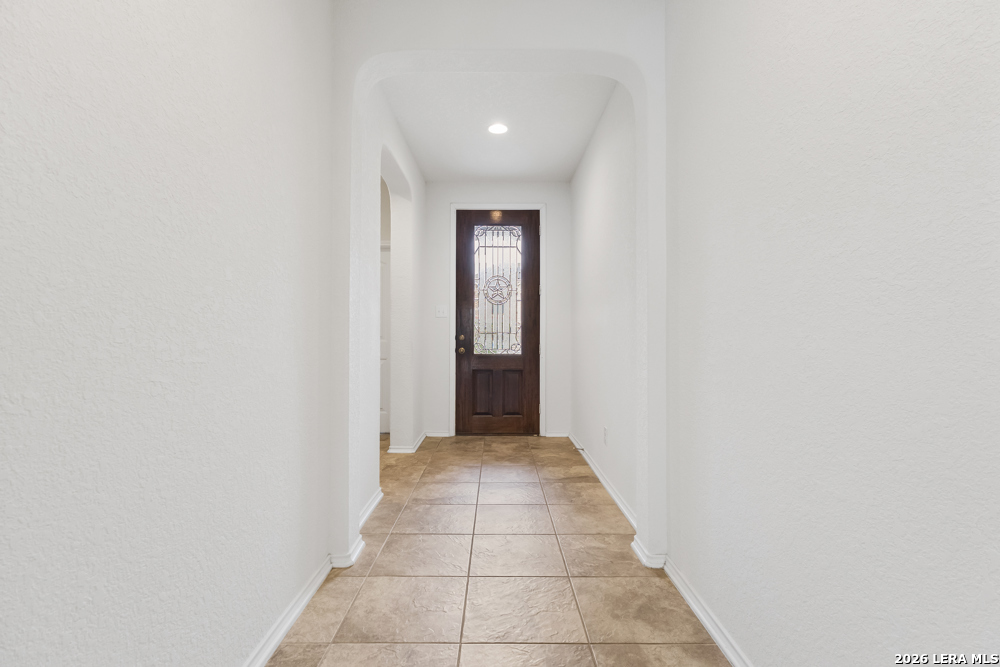 Exceptional single-story home. Bright, open floorplan with cool, neutral tones throughout. Island kitchen with an abundance of counter space and cabinets, tiled backsplash and stainless appliances. Spacious master suite has private bath with double vanities, walk-in closet. 18X18 tile in entry, hallway and kitchen. Wood and glass entry door, faux wood garage door. Level yard, privacy fence in backyard. Convenient flex-room for study, dining, etc. Commuter friendly location, with easy access to IH 35.