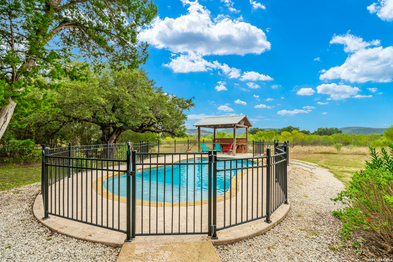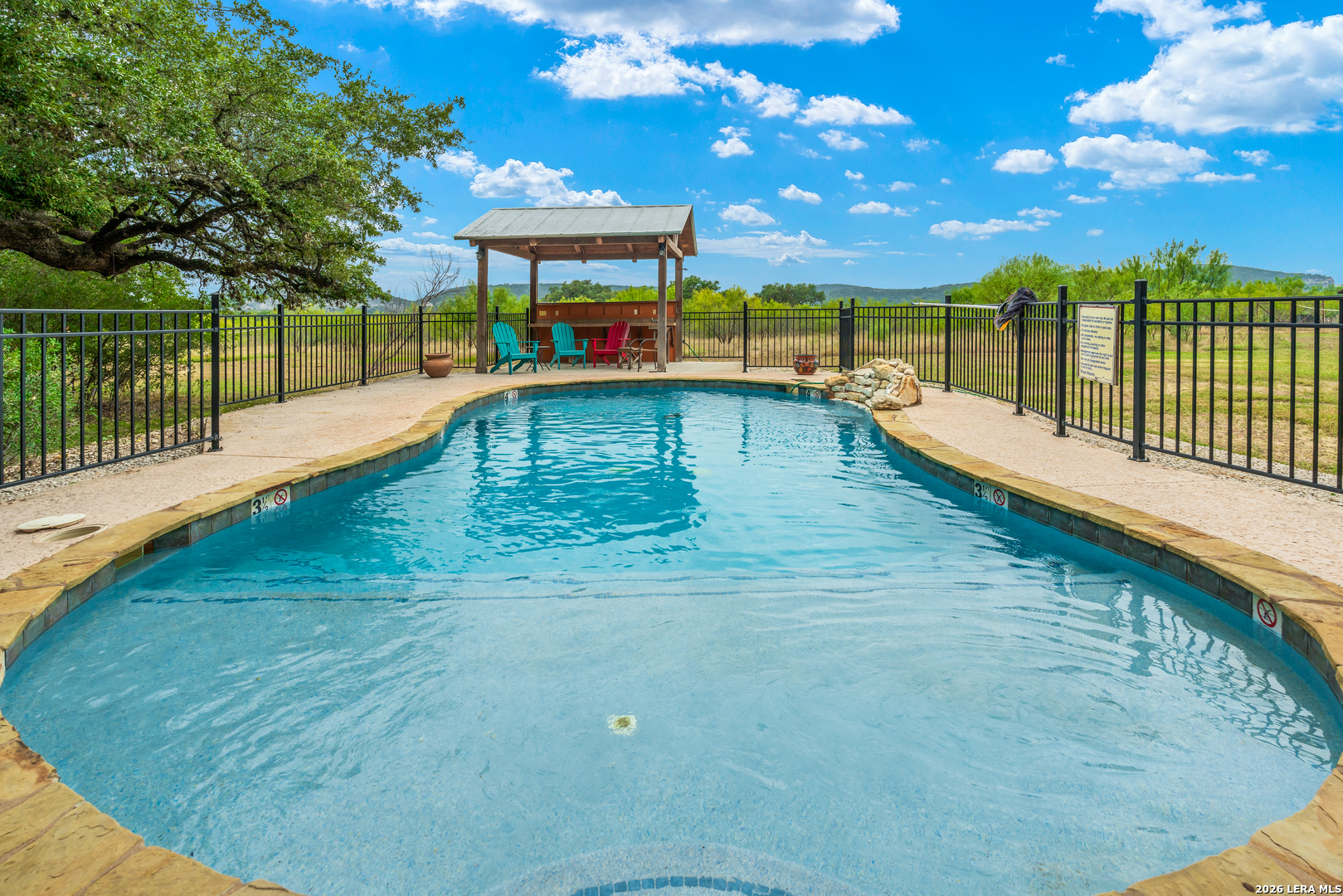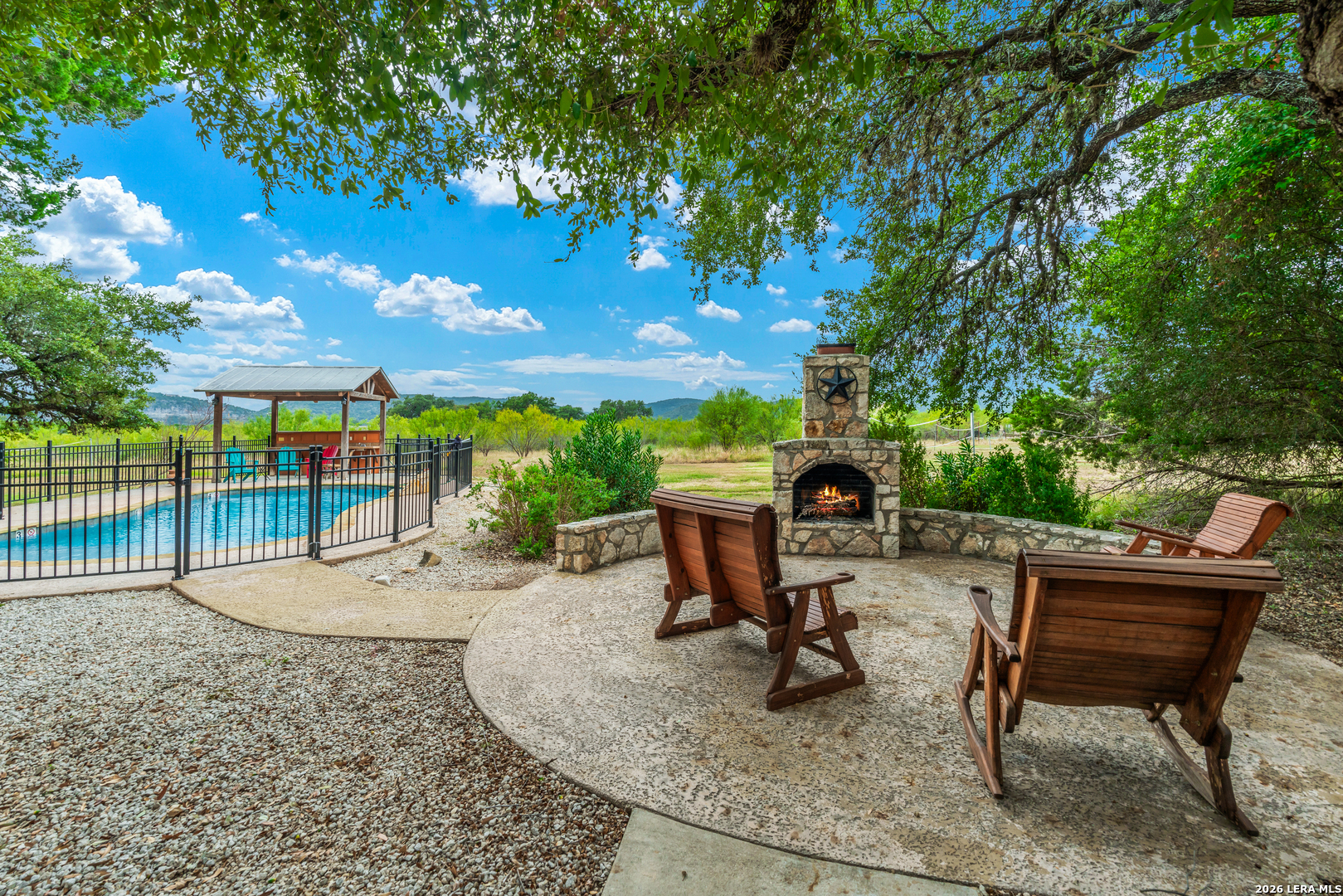 "On the friendliest street in Concan! Experience the heart of Concan's tranquil beauty in this 4-bedroon, 4 bath home on an acre lot covered with mature oaks. "Texas Star" has been a popular destination for many families looking for a spacious vacation home minutes from the Frio River. Amenities include a sparking swimming pool with cabana, volley ball, and horseshoe pit. The subdivision adjoins the 18 hole Concan Golf Course. This property is fully furnished and sleeps 18.