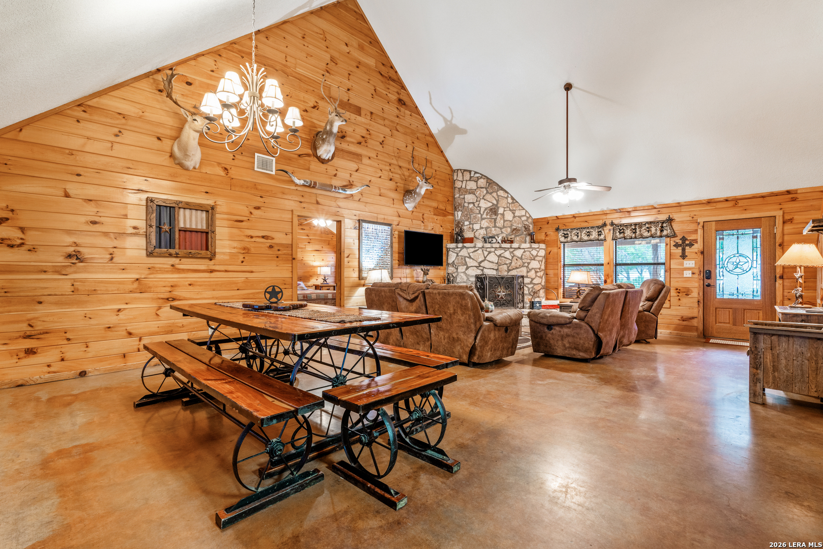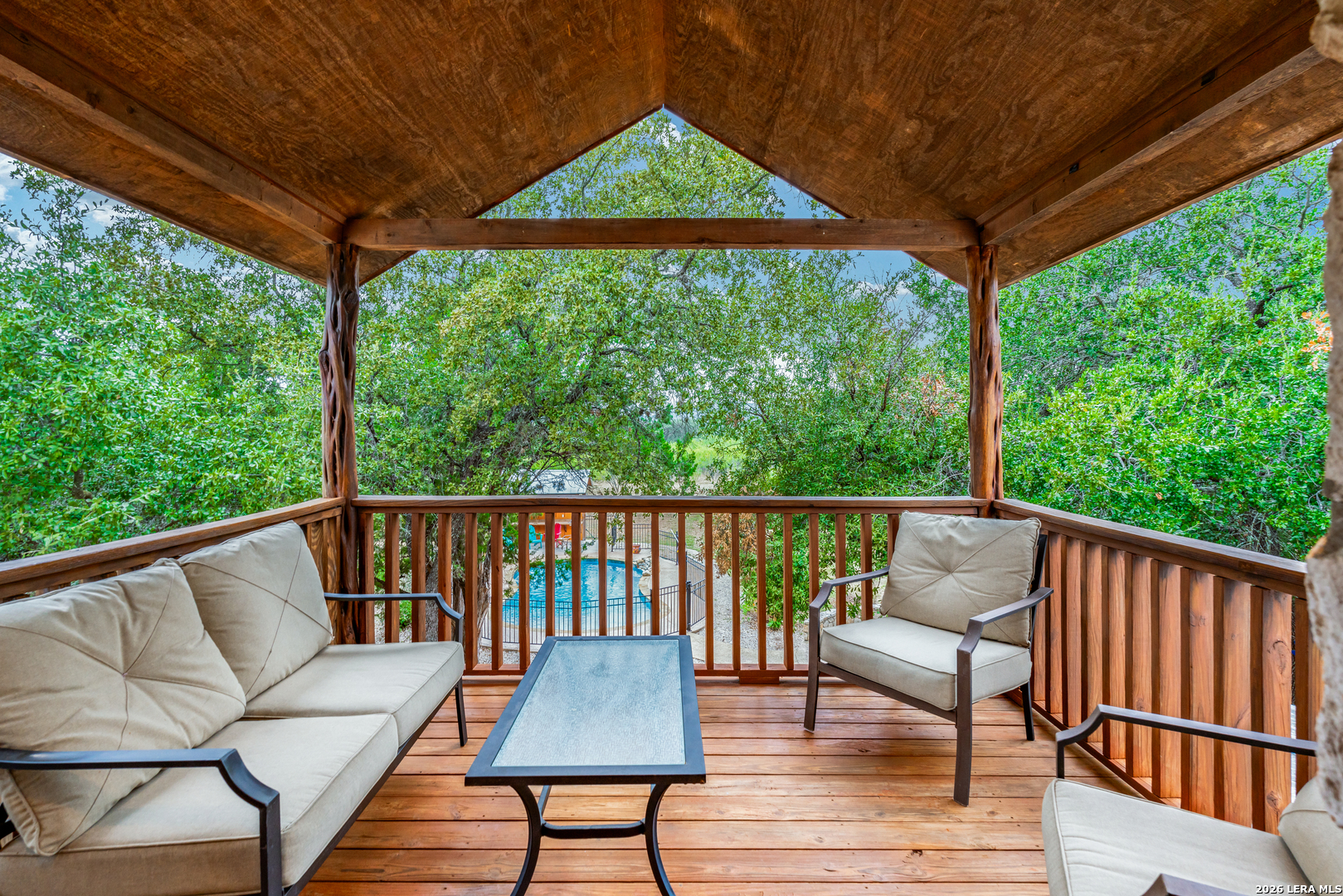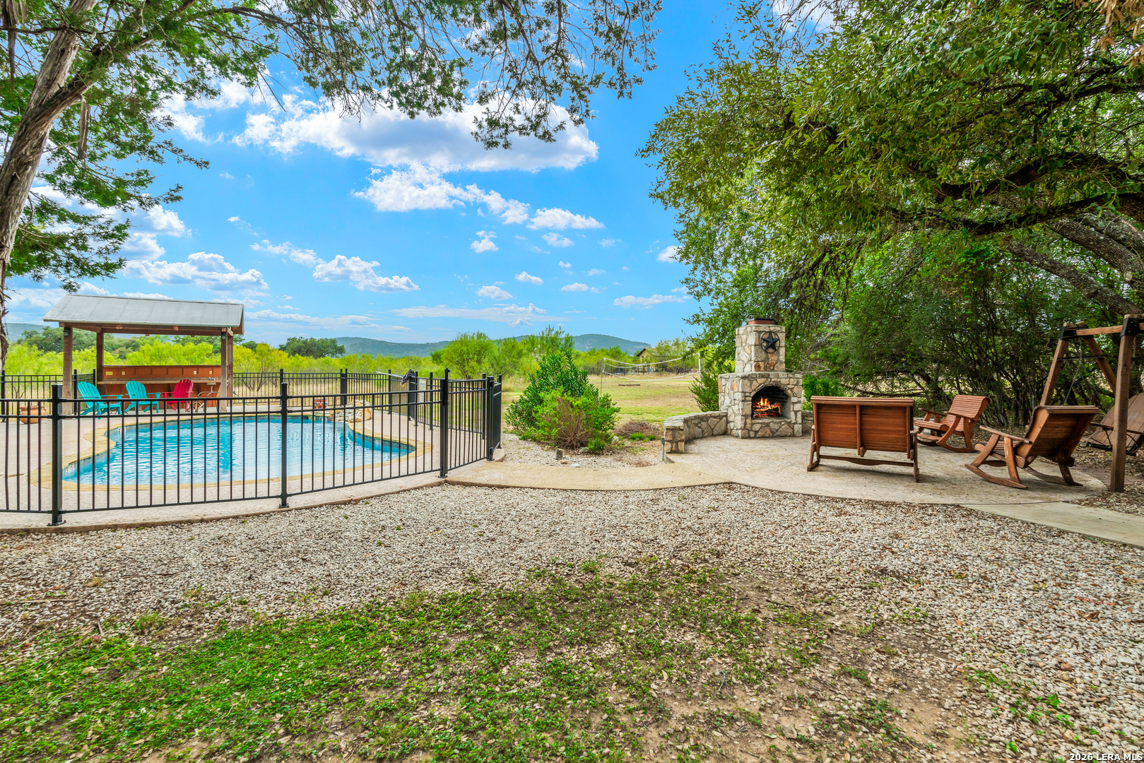 "On the friendliest street in Concan! Experience the heart of Concan's tranquil beauty in this 4-bedroon, 4 bath home on an acre lot covered with mature oaks. "Texas Star" has been a popular destination for many families looking for a spacious vacation home minutes from the Frio River. Amenities include a sparking swimming pool with cabana, volley ball, and horseshoe pit. The subdivision adjoins the 18 hole Concan Golf Course. This property is fully furnished and sleeps 18.