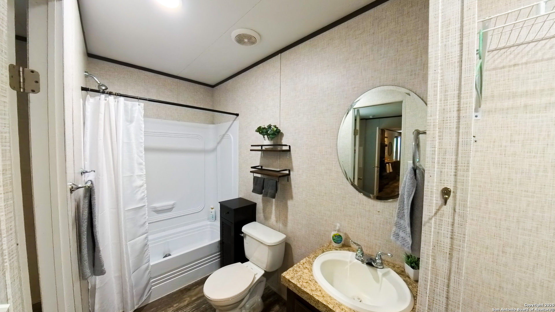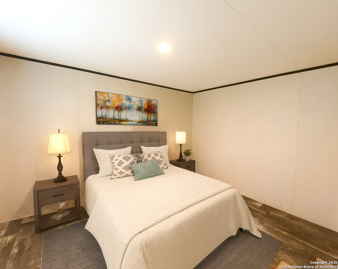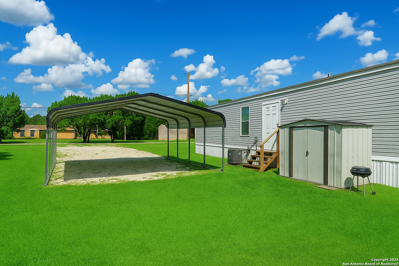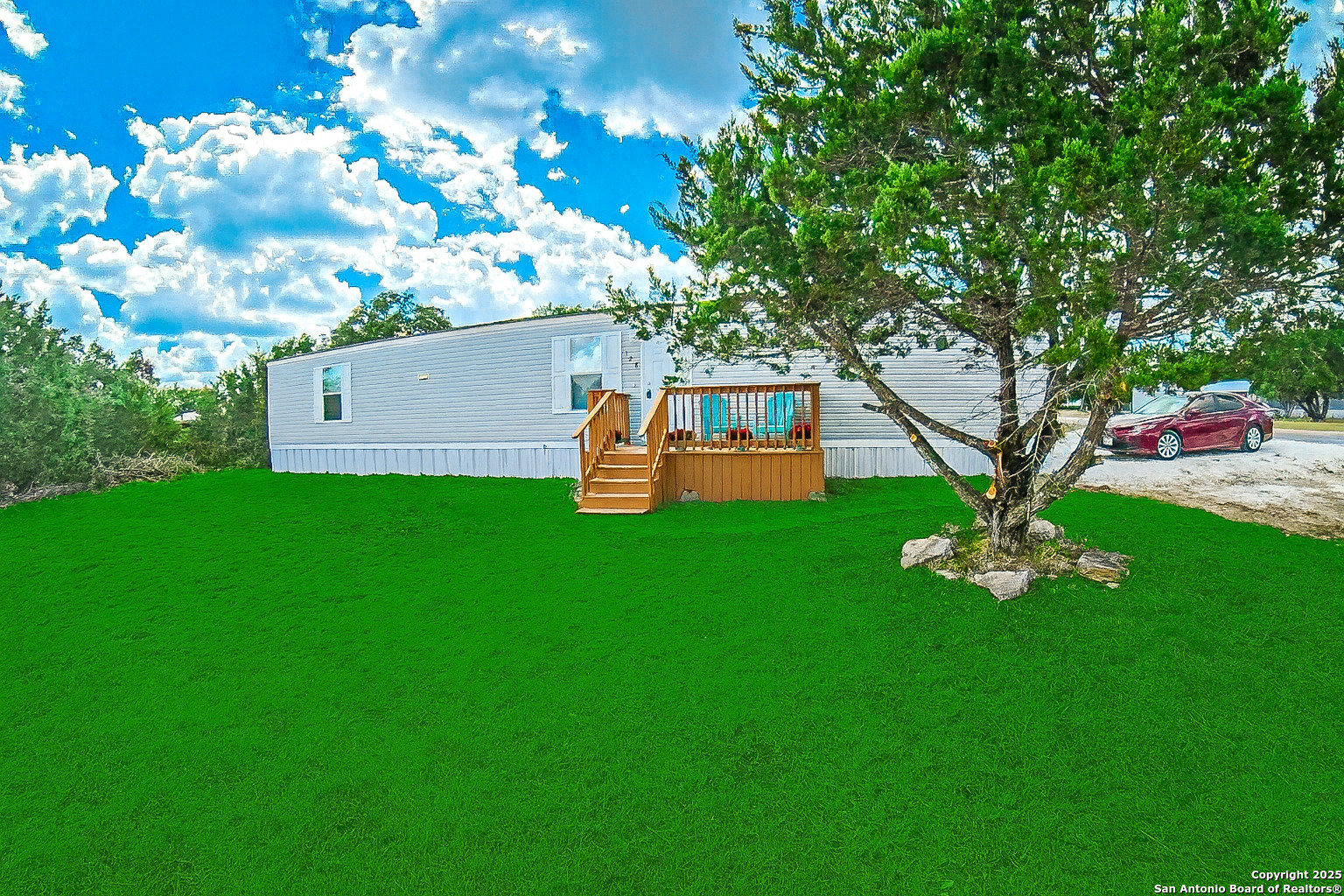 Like-new 3-bedroom, 2-bath manufactured home (built in 2019) situated on a corner 1/4 acre lot in the gated Holiday Villages of Medina. This single-story home offers modern touches including soft-touch light switches, recessed lighting, ceiling fan in the living room, and stylish barn door closet doors. The open-concept floor plan flows seamlessly into a contemporary kitchen and private primary suite with full bath. An new oversized covered carport and paved road access add extra convenience. Utility Shed conveys. Enjoy the privacy and security of a gated community with exclusive access to Medina Lake, plus amenities such as a clubhouse, swimming pool, and fishing pier. Perfect for full-time living or a relaxing weekend getaway in the Texas Hill Country.