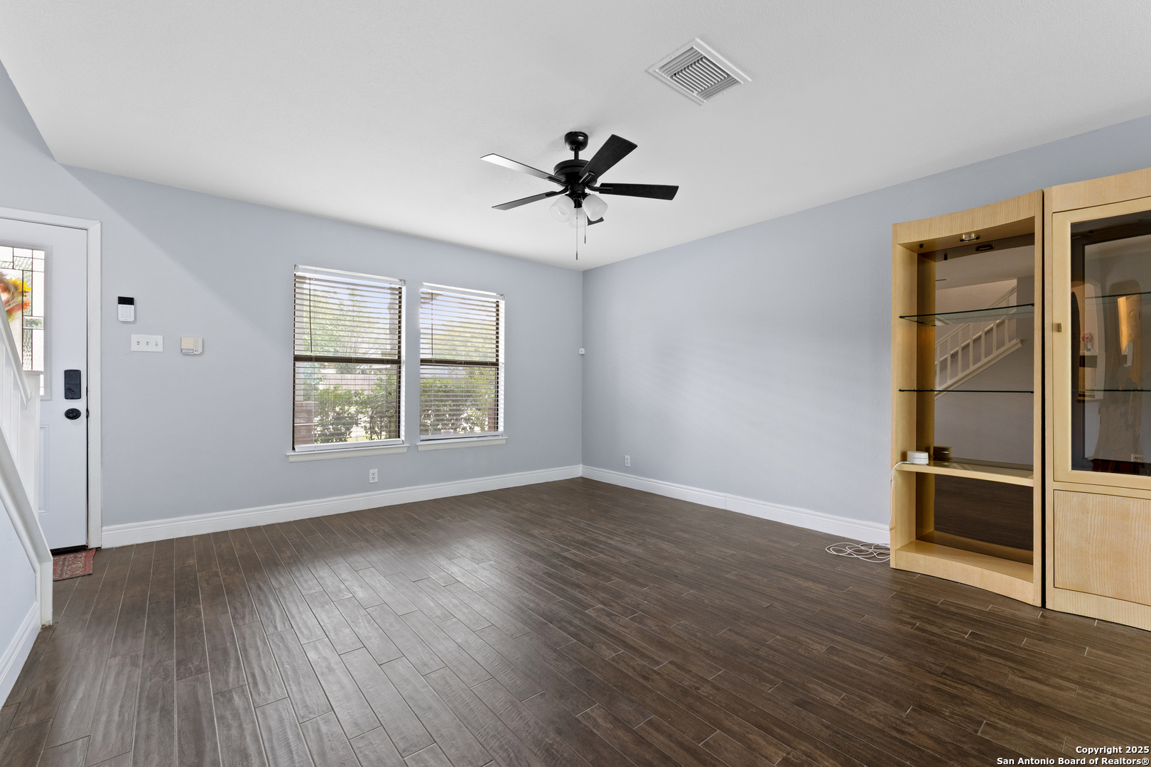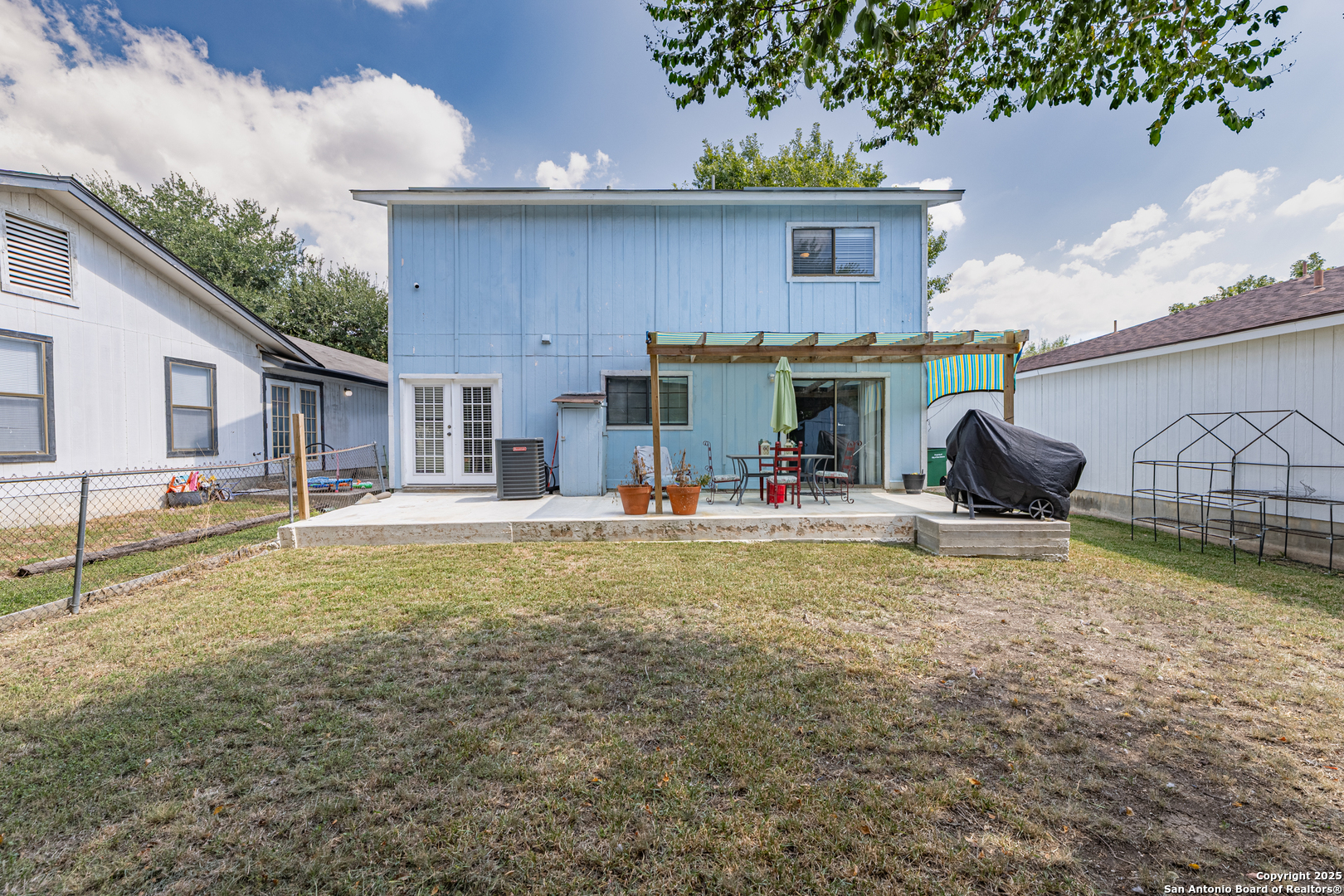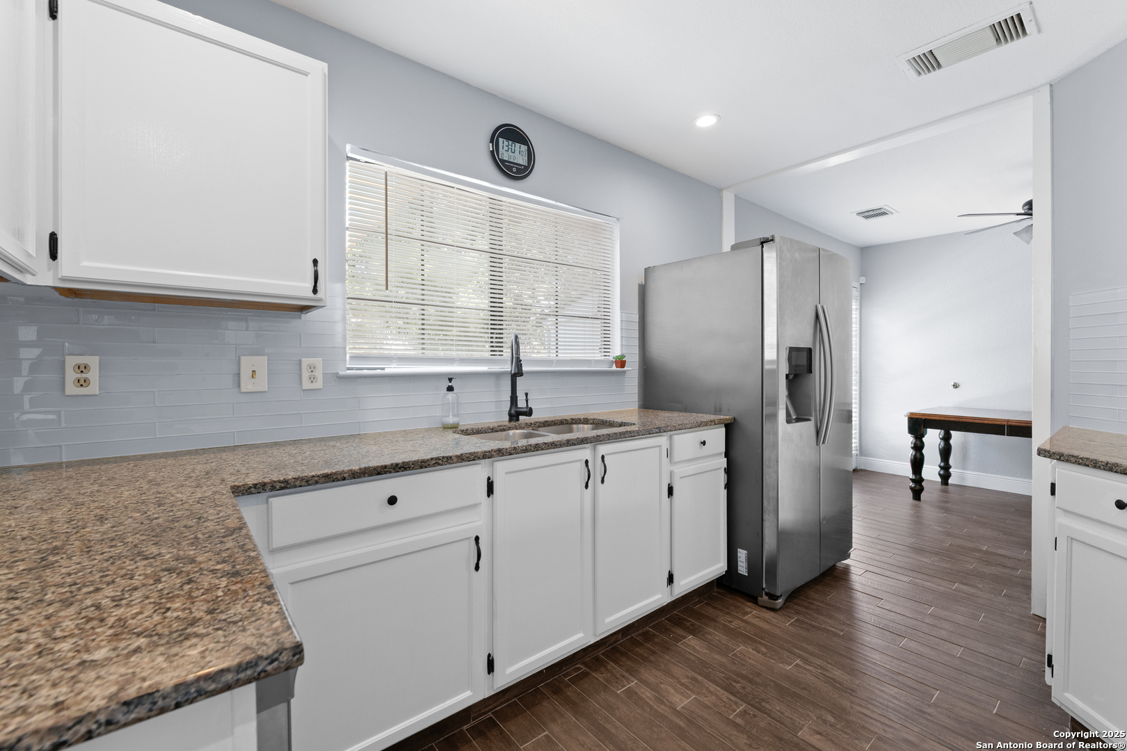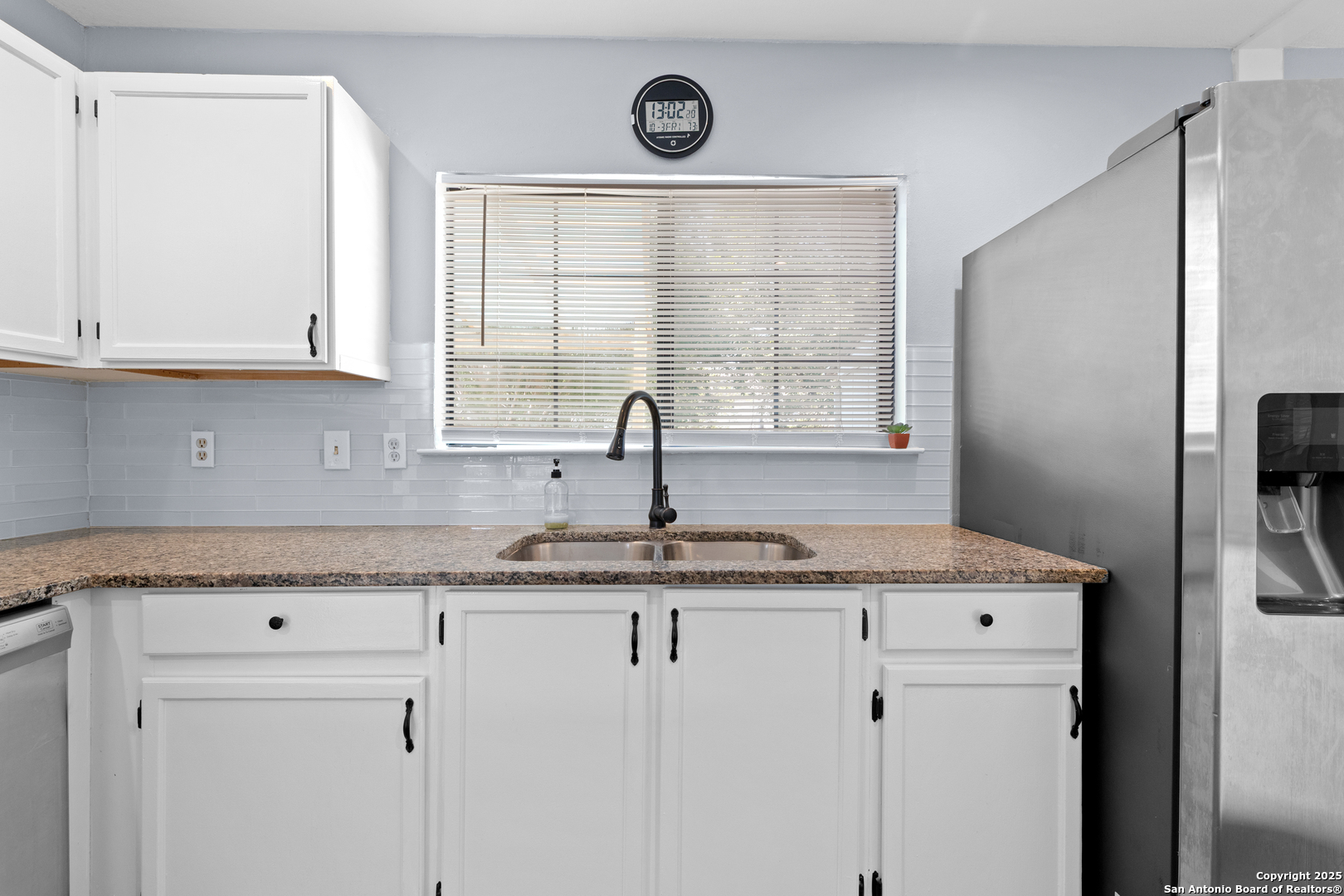 Step into this beautifully updated 2-story home in northwest San Antonio's desirable Hunters Chase community. From the moment you enter, the thoughtful updates are evident. Freshly painted walls in modern gray and blue tones create a sophisticated backdrop, while durable ceramic tile that mimics the warmth of wood flows throughout the main level. The kitchen serves as the heart of the home, featuring crisp white cabinets, and granite countertops. The open floor plan connects the kitchen seamlessly to the living areas, making it easy to stay connected whether you're preparing meals or entertaining guests. Just off the kitchen, you'll discover a charming breakfast nook with built-in cabinets and countertops, perfect for morning coffee or casual meals. Upstairs, you'll find three comfortable bedrooms, including a spacious primary suite with its own full bathroom for added privacy and convenience. The thoughtful layout provides peaceful retreats at the end of each day, with 2.5 bathrooms total throughout the home. The outdoor space extends your living area with a covered patio, ideal for morning coffee or evening gatherings. The spacious backyard offers plenty of room for your lifestyle, whether that means gardening, play space, or simply enjoying the open air. This move-in ready home combines contemporary updates with practical features, all in a convenient northwest San Antonio location near shopping, dining, and major highways. It's ready for you to simply unpack and start living!