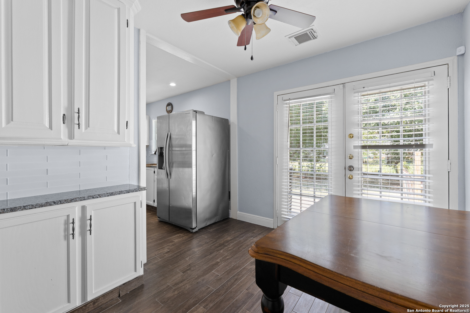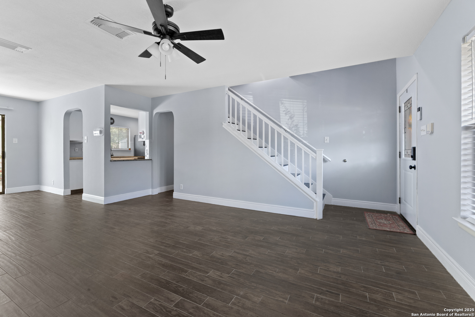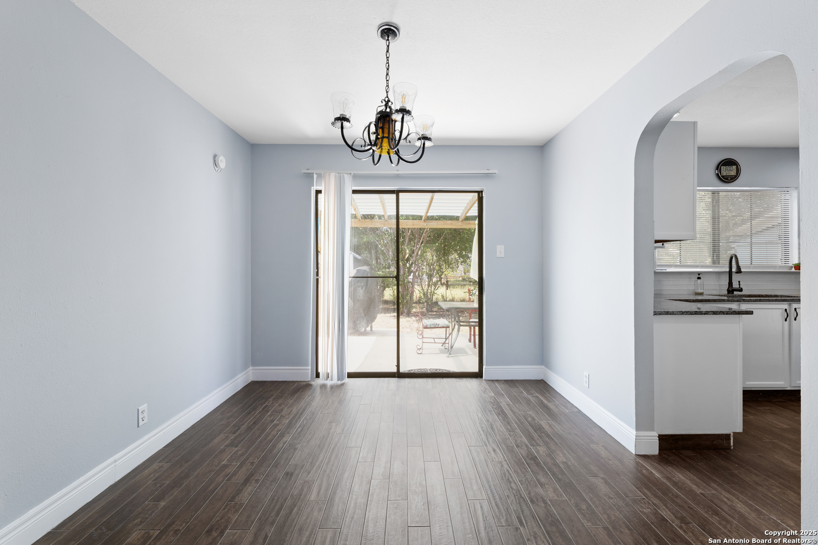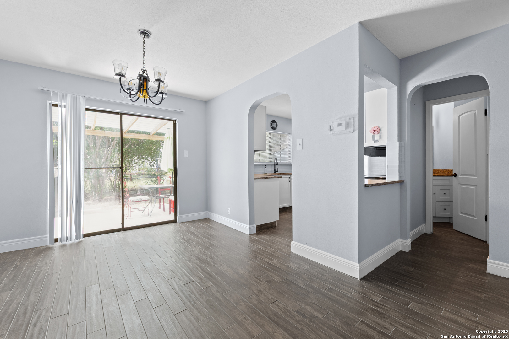 Step into this beautifully updated 2-story home in northwest San Antonio's desirable Hunters Chase community. From the moment you enter, the thoughtful updates are evident. Freshly painted walls in modern gray and blue tones create a sophisticated backdrop, while durable ceramic tile that mimics the warmth of wood flows throughout the main level. The kitchen serves as the heart of the home, featuring crisp white cabinets, and granite countertops. The open floor plan connects the kitchen seamlessly to the living areas, making it easy to stay connected whether you're preparing meals or entertaining guests. Just off the kitchen, you'll discover a charming breakfast nook with built-in cabinets and countertops, perfect for morning coffee or casual meals. Upstairs, you'll find three comfortable bedrooms, including a spacious primary suite with its own full bathroom for added privacy and convenience. The thoughtful layout provides peaceful retreats at the end of each day, with 2.5 bathrooms total throughout the home. The outdoor space extends your living area with a covered patio, ideal for morning coffee or evening gatherings. The spacious backyard offers plenty of room for your lifestyle, whether that means gardening, play space, or simply enjoying the open air. This move-in ready home combines contemporary updates with practical features, all in a convenient northwest San Antonio location near shopping, dining, and major highways. It's ready for you to simply unpack and start living!