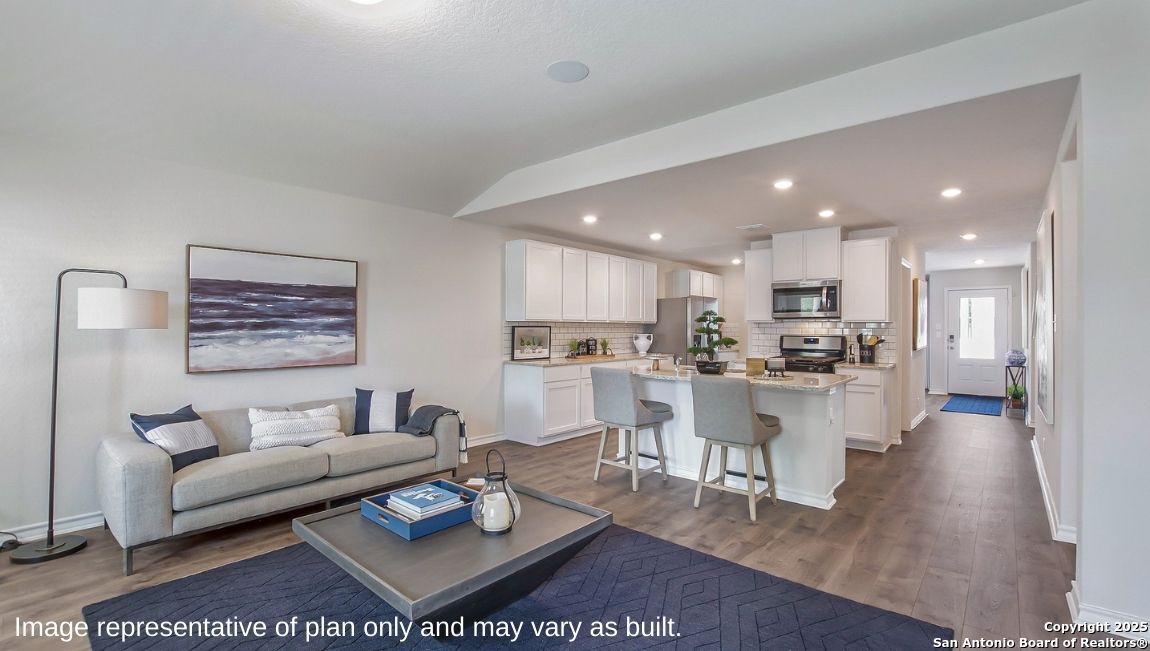 Introducing The Lombardi, a two-story home featured in our Avenida community in Converse, TX. This floor plan offers 3 classic front exteriors, a 2-car garage, and a full yard landscaping and irrigation package ensuring that your home looks its best every single day. Inside this 5 bedroom, 2.5 bathroom home, you'll find 2539 square feet of open-concept living. A deep-set, covered porch (per plan) opens to a foyer, formal dining room, and powder room. A butler entry connects the dining room and spacious kitchen lined with abundant cabinetry and quartz-top counterspace. Classic white subway tile backsplash and stainless steel appliances are a perfect accent, and a kitchen island with a deep single basin kitchen sink faces the living room. The private main bedroom suite is located off the living room and features a luxurious garden bath tub, a separate walk-in shower with tile surround, double vanity sinks, ceramic tile flooring, a separate door for the toilet and a large walk-in closet. Head up the stairs and tour the second floor of your brand new home! A versatile loft area greets you at the top of the stairs, complete with quality carpet and tons of natural light. Your four secondary bedrooms are located off the loft and include carpet flooring and spacious walk-in closets. Additional features include 9-foot ceilings, 2-inch faux wood blinds throughout the home, luxury vinyl plank flooring in the entryway, living room, kitchen, and dining room, ceramic tile at all bathrooms and utility room, pre-plumb for water softener loop, and more! You'll enjoy added security in your new home with our Home is Connected features. Using one central hub that talks to all the devices in your home, you can control the lights, thermostat and locks, all from your cellular device.