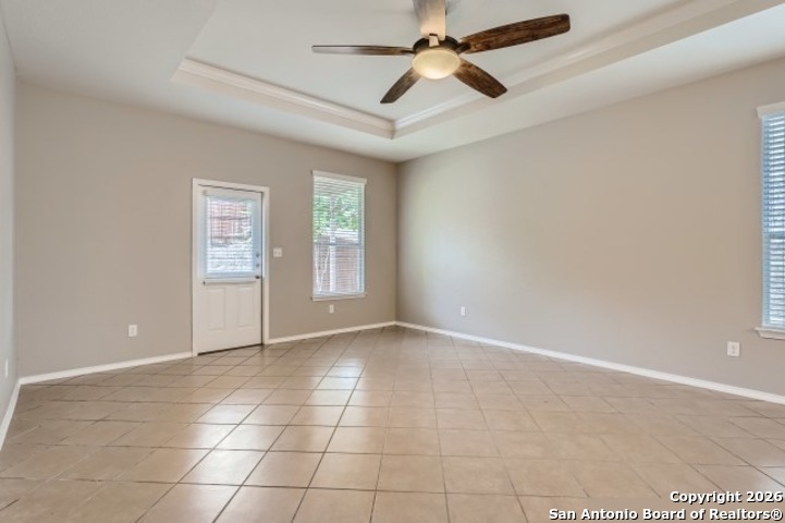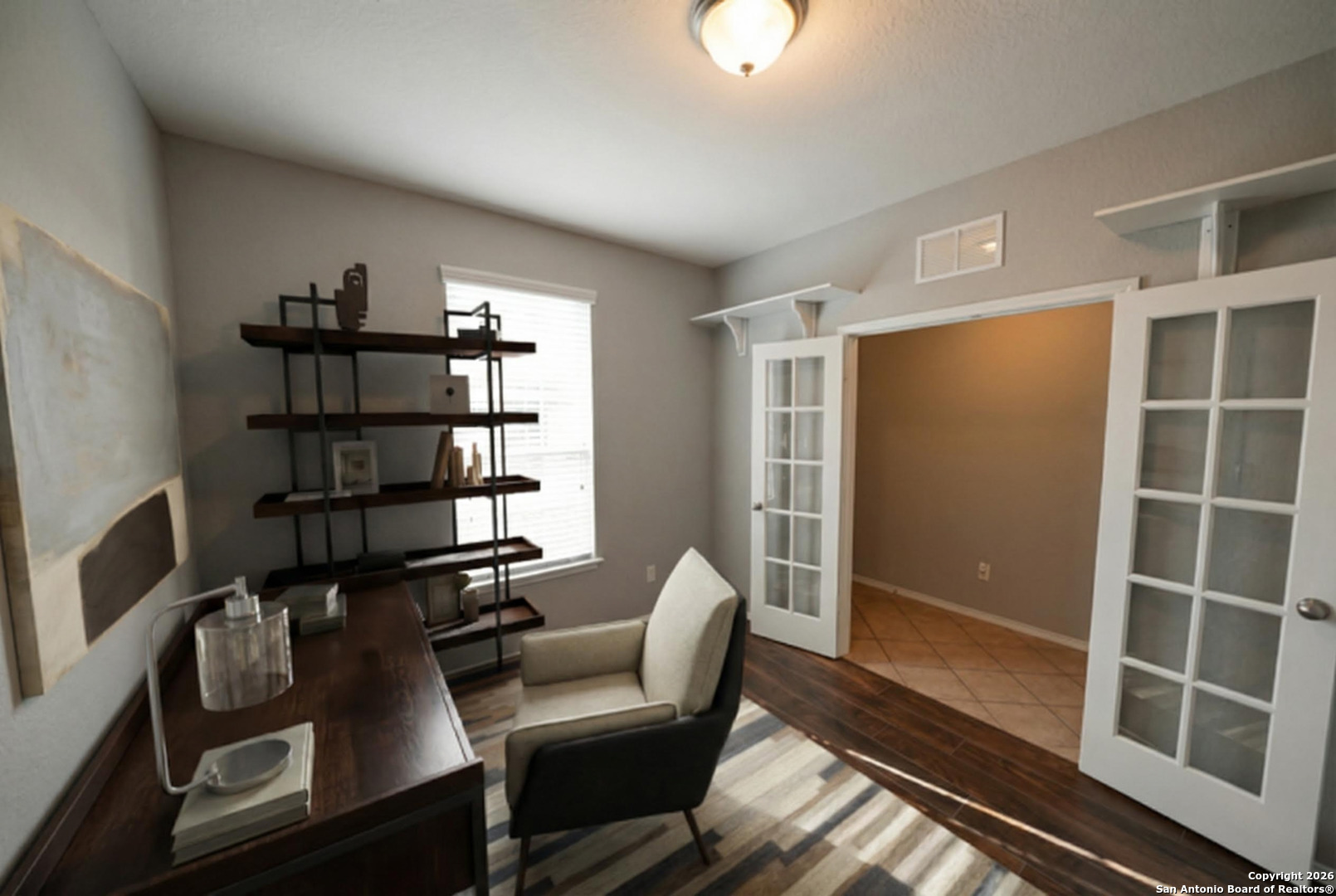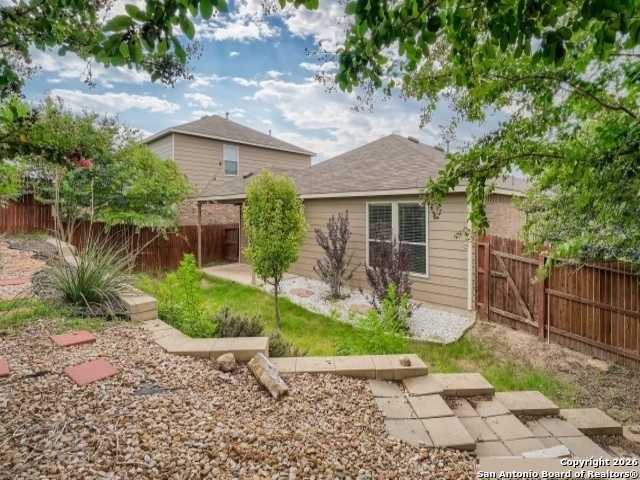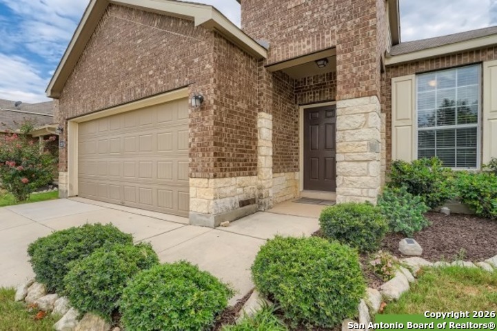 Welcome home to this well-appointed gem in the highly sought-after Alamo Ranch community. This beautiful 3-bedroom, 2-bath residence with a dedicated study is nestled in a quiet neighborhood, thoughtfully tucked away from the hustle and bustle-yet just minutes from shopping, dining, and entertainment. Lovingly maintained, the home features NEW tile wood-plank flooring in all bedrooms and the study, creating a cohesive, modern look throughout. The open-concept floor plan is ideal for both everyday living and entertaining, offering a separate dining area plus barstool seating for casual meals and gatherings. The kitchen is a standout with a stainless steel appliances and gas stove-perfect for the chef in the family-and opens seamlessly to the main living space. The private study with elegant glass French doors provides a light-filled space ideal for a home office or flex room. Includes ceiling fans throughout and a water softener, outdoor shed, and extended driveway. Step outside to a beautifully landscaped backyard, perfect for relaxing evenings or weekend entertaining--outdoor ceiling fan included for warm Texas heat. This inviting home blends comfort, style, and location in one of Alamo Ranch's most popular communities. Where comfort meets convenience--don't miss this opportunity to make this your next home. Schedule your showing today!