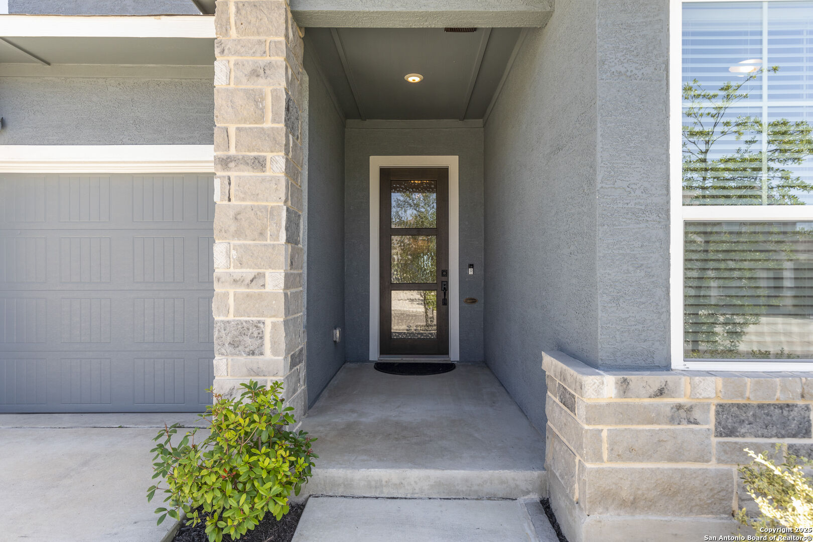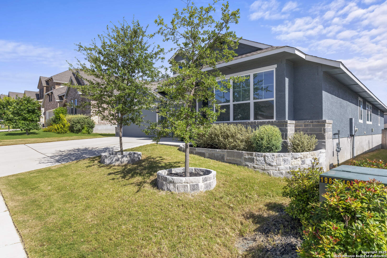 Motivated Sellers Offering! Take advantage of this rare opportunity! This stunning David Weekley home showcases the highly sought-after Ridgegate floor plan and is nestled on a sizeable lot with exceptional curb appeal, located in the sought-after Reserve at Weston Oaks community. The curb appeal is compelling with attractive four-side stucco and heavy composition shingles. The beautifully landscaped front yard features upgraded stonework and a fully automated sprinkler system for low-maintenance elegance. The home sports 4 Bedrooms, 3 Bathrooms, and 3 Car Garage. The open-concept floorplan flows easily between the large living area and the island kitchen. A separate dining area and a flex room offer space for work, play, or hosting guests. The bank of windows in the living space makes sure the space is filled with the best building material...natural sunlight. You will appreciate the Open layout with tasteful, practical upgrades throughout, such as: * Wood-look tile flooring throughout-no carpet! * Premium 8-ft glass-inset front door adds style and natural light The Gourmet will love the Dream Kitchen,, which has: * Crisp white shaker cabinets with modern hardware * Quartzite countertops and oversized island * Energy-efficient stainless steel appliances, including a 5-burner gas cooktop * Spacious walk-in pantry The spacious primary retreat includes dual vanities, an oversized walk-in shower, and a large walk-in closet. It makes for a peaceful space to retreat at the end of a long day to relax and unwind. Amenities In the Primary Suite include: * Spacious bedroom with spa-like ensuite bath * Dual vanity sinks, oversized walk-in shower, private toilet room, and large walk-in closet There are two secondary bedrooms on one wing, and a separate bedroom on the other side of the house that is en suite. Do you need a guest room, or a spot for an in law or older child that wound appreciate their privacy? This ideal for all those situations. The Additional Bedrooms have: * Secondary ensuite with upgraded walk-in shower * Third and fourth bedrooms share a well-appointed bath with tub/shower combo Step outside to an oversized covered patio with dual ceiling fans and a dedicated gas stub for your grill-perfect for weekend cookouts or evening wind-downs behind your privacy fence. Relax and enjoy the Outdoor Living with: * Largest optional covered patio, complete with dual ceiling fans, gas grill hookup, and outdoor TV connections * Spacious backyard with auto sprinklers and large storage shed Throughout the home, you'll find ceiling fans and smart upgrades like a mudroom, water softener, sprinkler system, in wall pest control system and garage door openers for the oversized 3-car garage. The Garage Features: * 3-car garage with upgraded epoxy flooring * Installed and owned water softener Neighborhood perks include access to community parks, pool, and trails-all with convenient access to Hwy 151, Lackland AFB, downtown San Antonio, the Medical Center, and SeaWorld. If you're looking for a home that combines energy-efficient features, everyday comfort, and thoughtful design, this one checks the boxes. Reach out today to schedule your showing today!