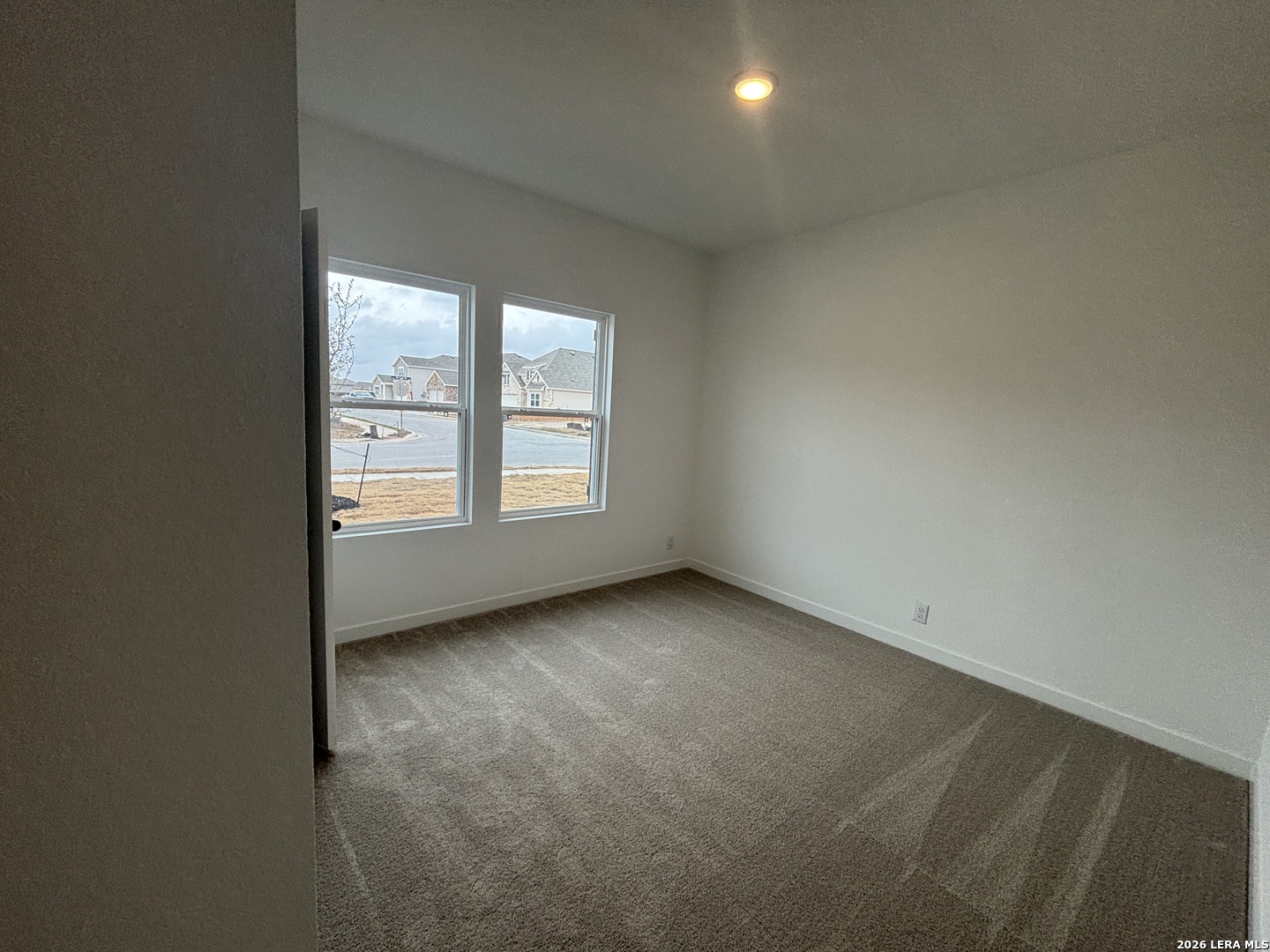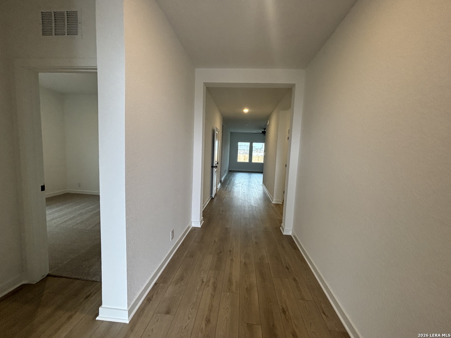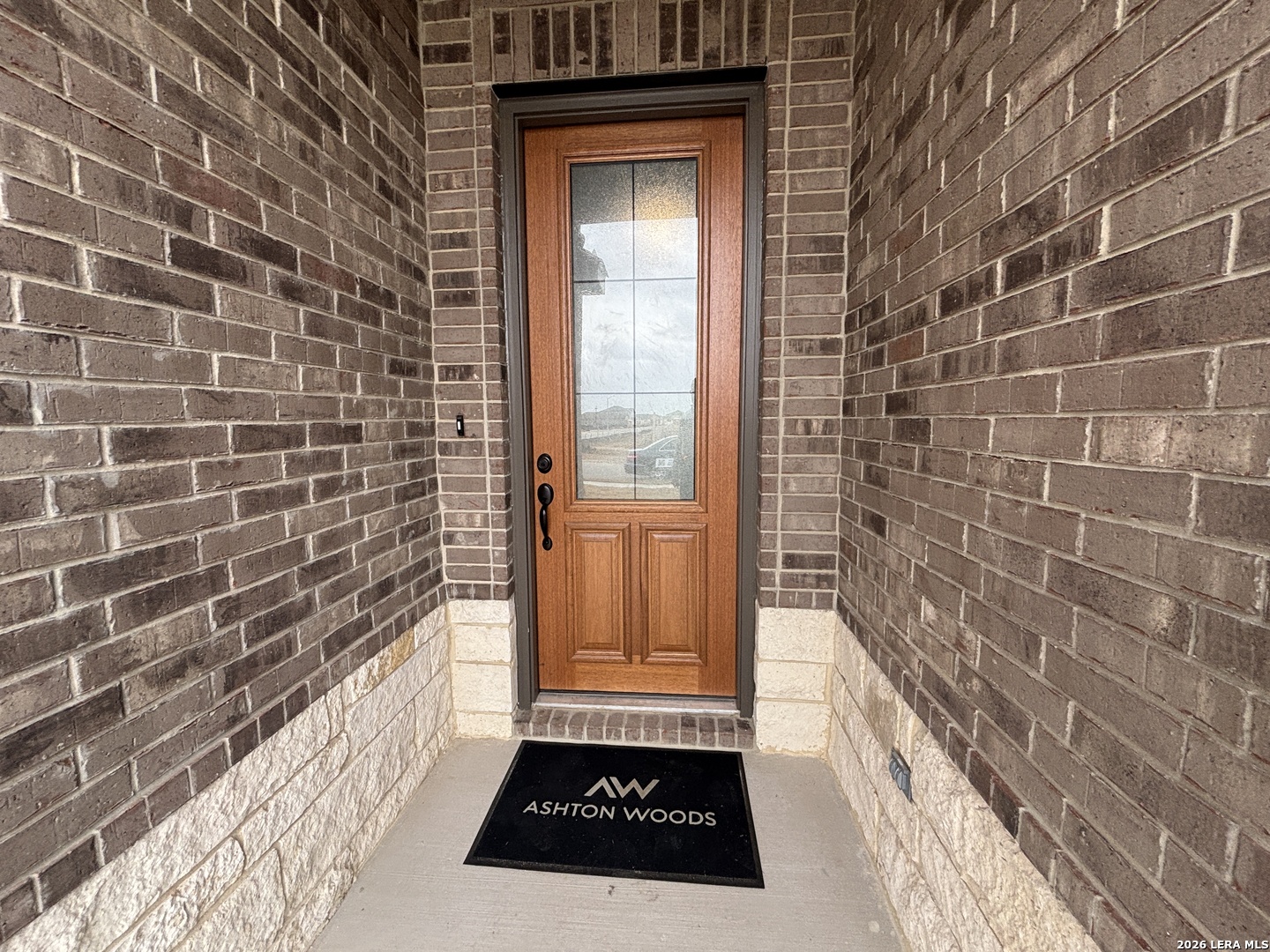 Charming one story home with gourmet kitchen featuring quartz countertops, upgraded cabinets, and a pantry. Open and spacious family room with large windows that look out onto the backyard. No direct back neighbors. Secluded primary suite features a private bath with an oversized shower, double vanities, and a walk-in closet. Two secondary bedrooms with a shared bath. Covered patio ideal for outdoor relaxation. Full landscaping package with a sprinkler system. This home is part of our Serene Collection - designed to bring balance, calm, and open space into everyday life. Muted earth tones and natural textures work together to create rooms that breathe and moments that linger. Serene is about slowing down, soaking in the quiet, and making space for what truly matters, one peaceful moment at a time. This home is in Saddlebrook Ranch, a master-planned community in Schertz, offering easy access to I-35, shopping, dining, Randolph AFB, a pool, playground, and top-rated schools.