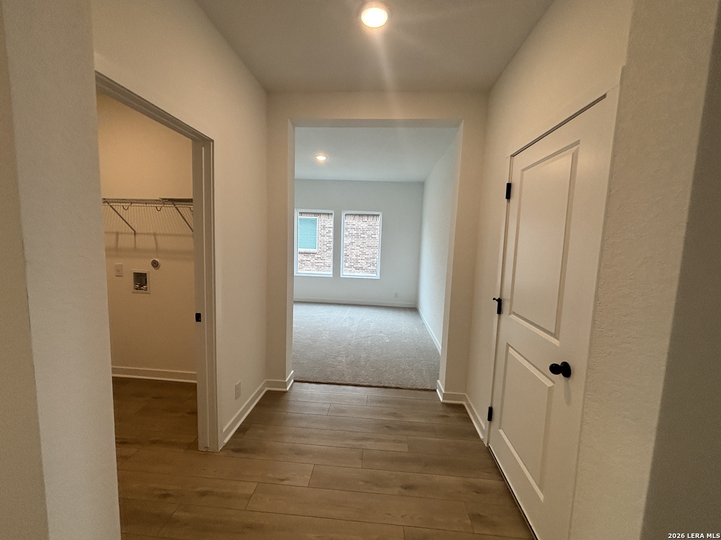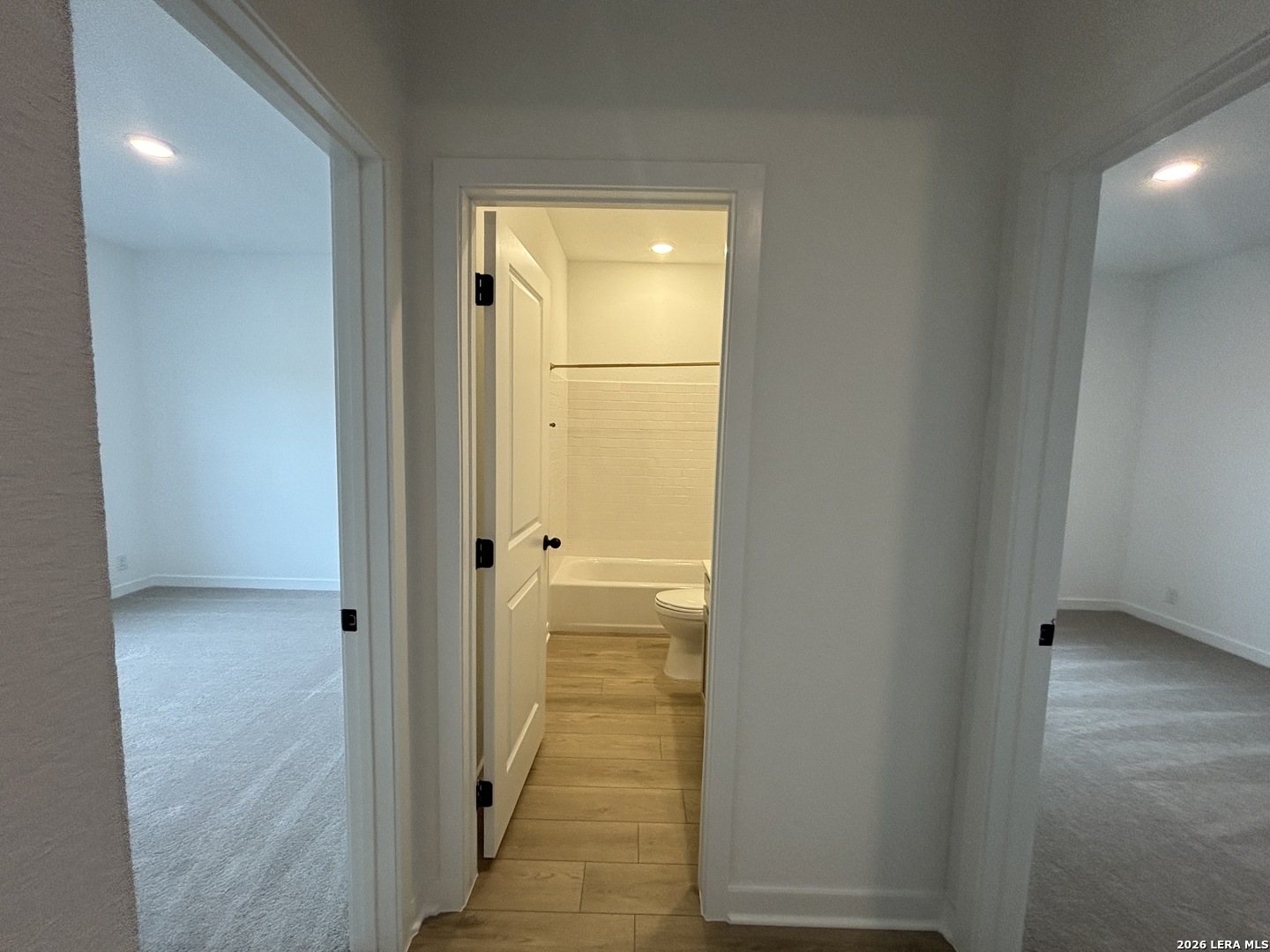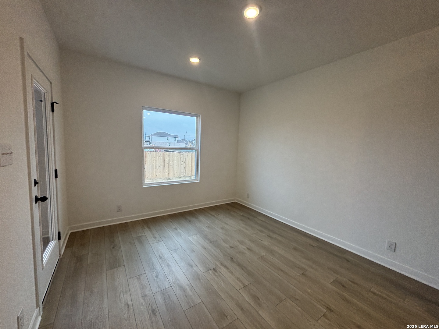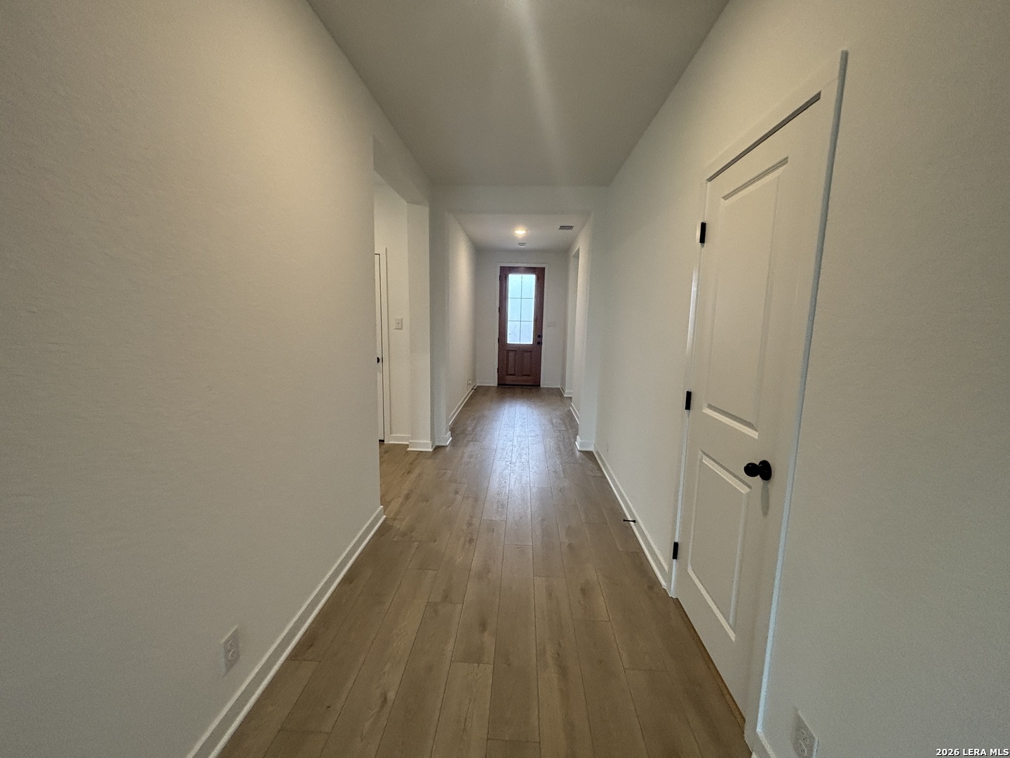 Charming one story home with gourmet kitchen featuring quartz countertops, upgraded cabinets, and a pantry. Open and spacious family room with large windows that look out onto the backyard. No direct back neighbors. Secluded primary suite features a private bath with an oversized shower, double vanities, and a walk-in closet. Two secondary bedrooms with a shared bath. Covered patio ideal for outdoor relaxation. Full landscaping package with a sprinkler system. This home is part of our Serene Collection - designed to bring balance, calm, and open space into everyday life. Muted earth tones and natural textures work together to create rooms that breathe and moments that linger. Serene is about slowing down, soaking in the quiet, and making space for what truly matters, one peaceful moment at a time. This home is in Saddlebrook Ranch, a master-planned community in Schertz, offering easy access to I-35, shopping, dining, Randolph AFB, a pool, playground, and top-rated schools.