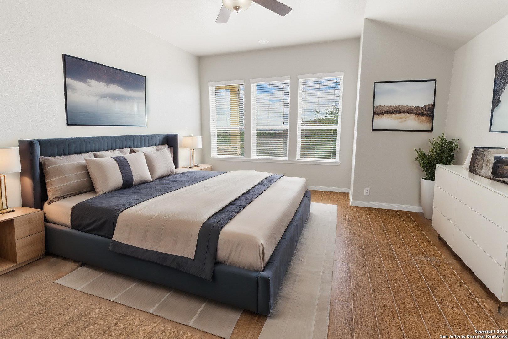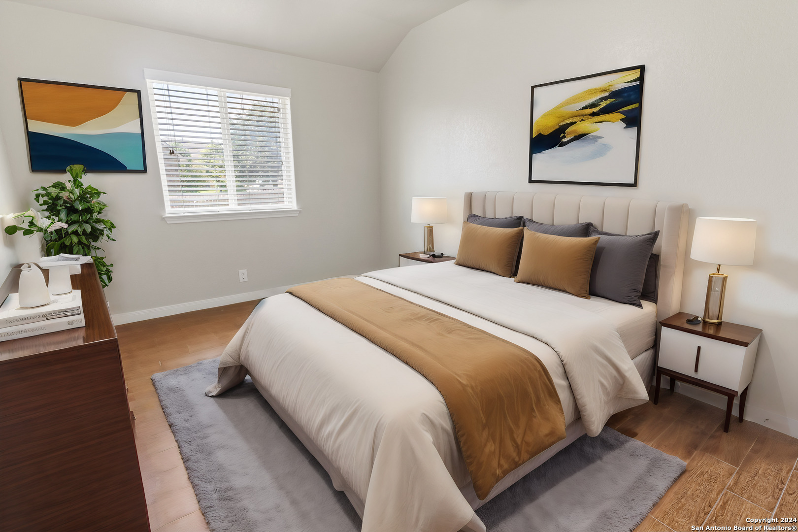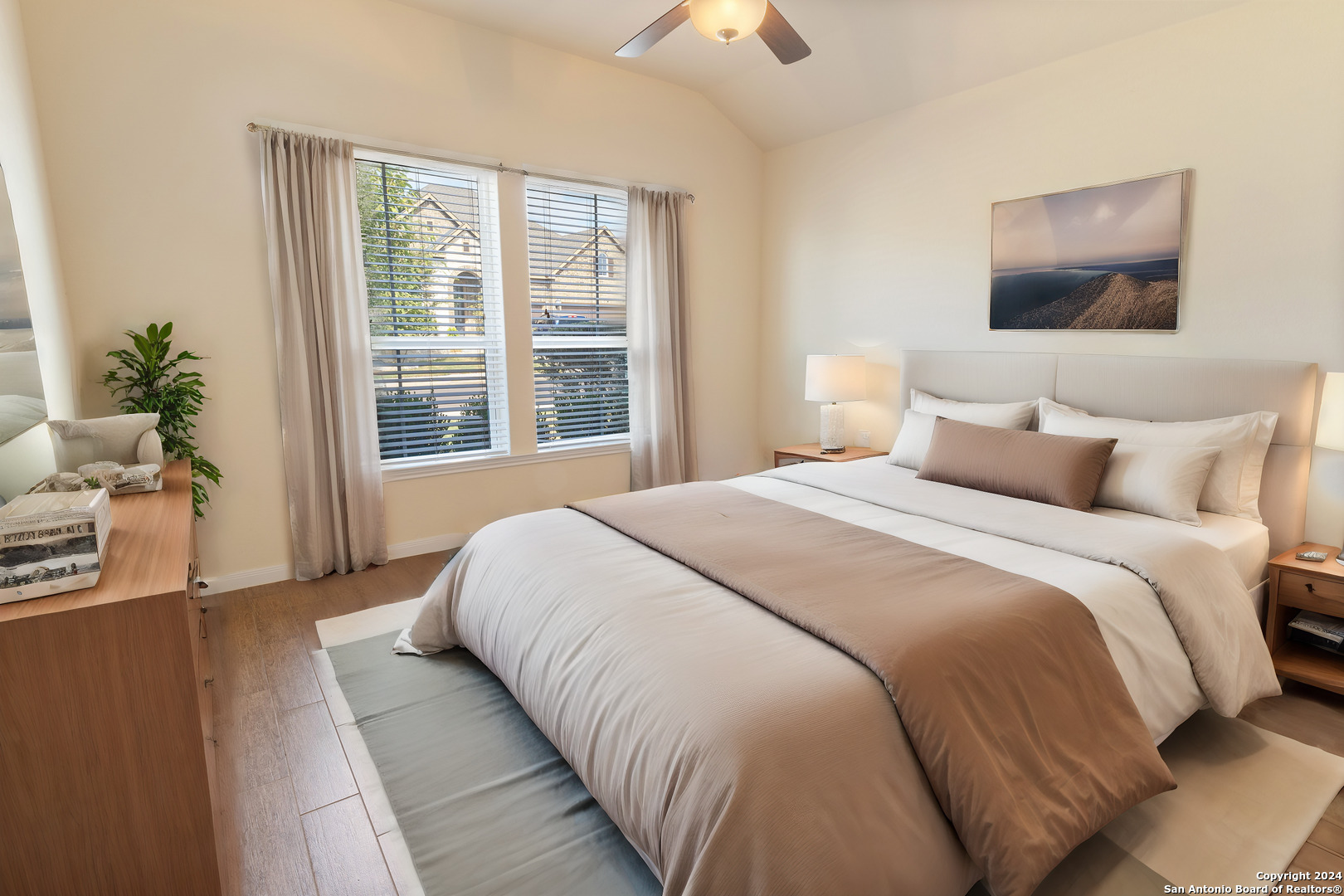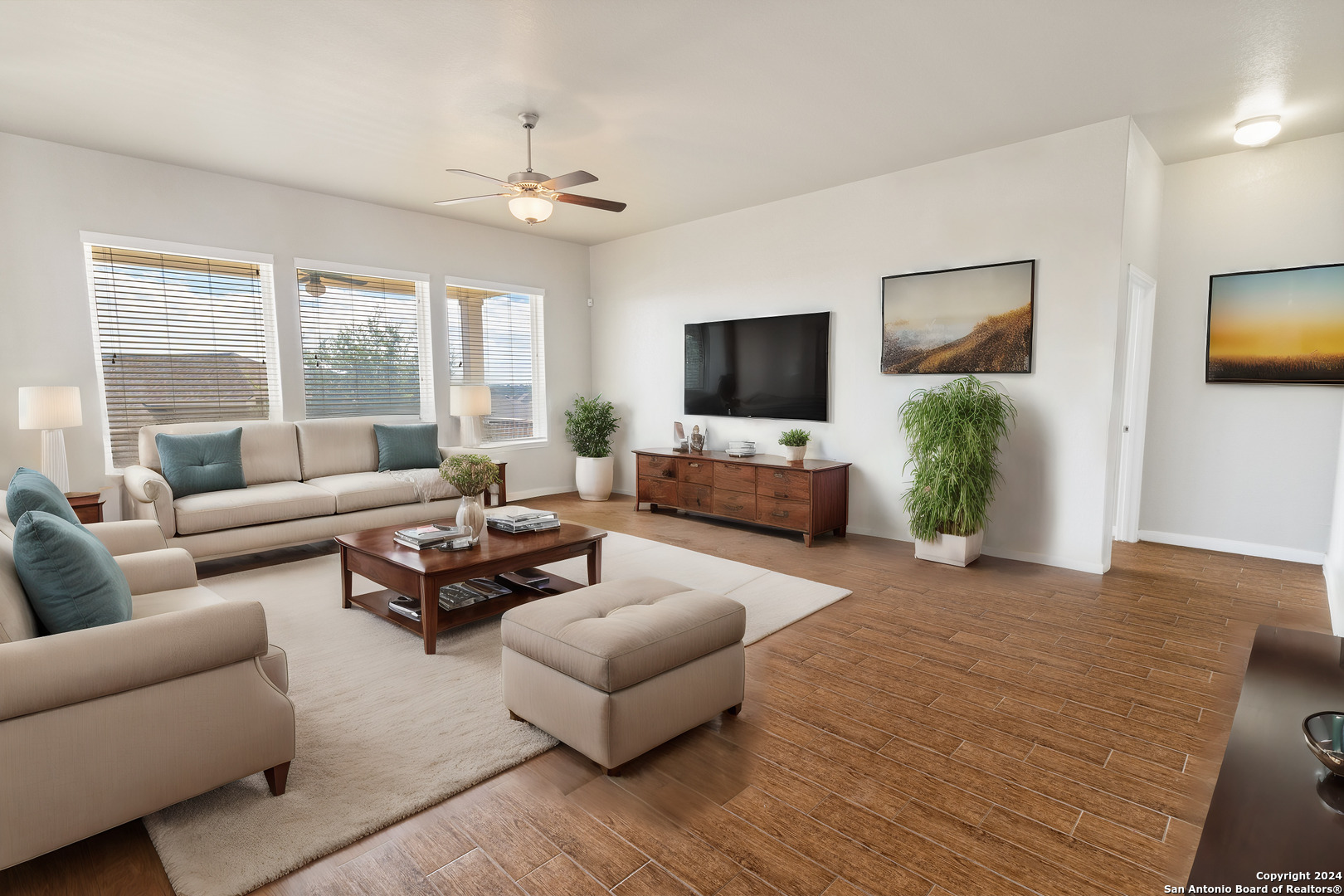 Welcome to this charming four-bedroom, three-bathroom home in the highly sought-after Weston Oaks neighborhood. As you step inside, you're greeted by stunning oak inspired floors that flow seamlessly throughout the home, accented by bright neutral colored walls and updated light fixtures, creating a fresh and inviting atmosphere. The open floor plan makes the living spaces feel expansive, with natural ample lighting that illuminates the common areas and the kitchen serving as the heart of the home. It boasts gray granite countertops that are accentuated by the mosaic backsplash tiling, stainless steel appliances, and crisp white cabinets, effortlessly opening up to both the living and dining areas. The primary bedroom is thoughtfully positioned on the opposite side of the home from the other bedrooms, offering privacy and tranquility. It features an ensuite bathroom with a large walk-in closet, providing plenty of storage space. The fourth guest bedroom situated at the front of the home boasts its own full bath. Step outside to the back patio, where you'll be greeted with amazing city views perfect for outdoor entertaining, overlooking a fully fenced, lush green lawn and a full view of the firework shows at Sea World. This home is the perfect blend of comfort and style, ideal for those seeking a serene retreat in a prime location. Property subject to the 90-day flip rule, FHA eligible 11/27