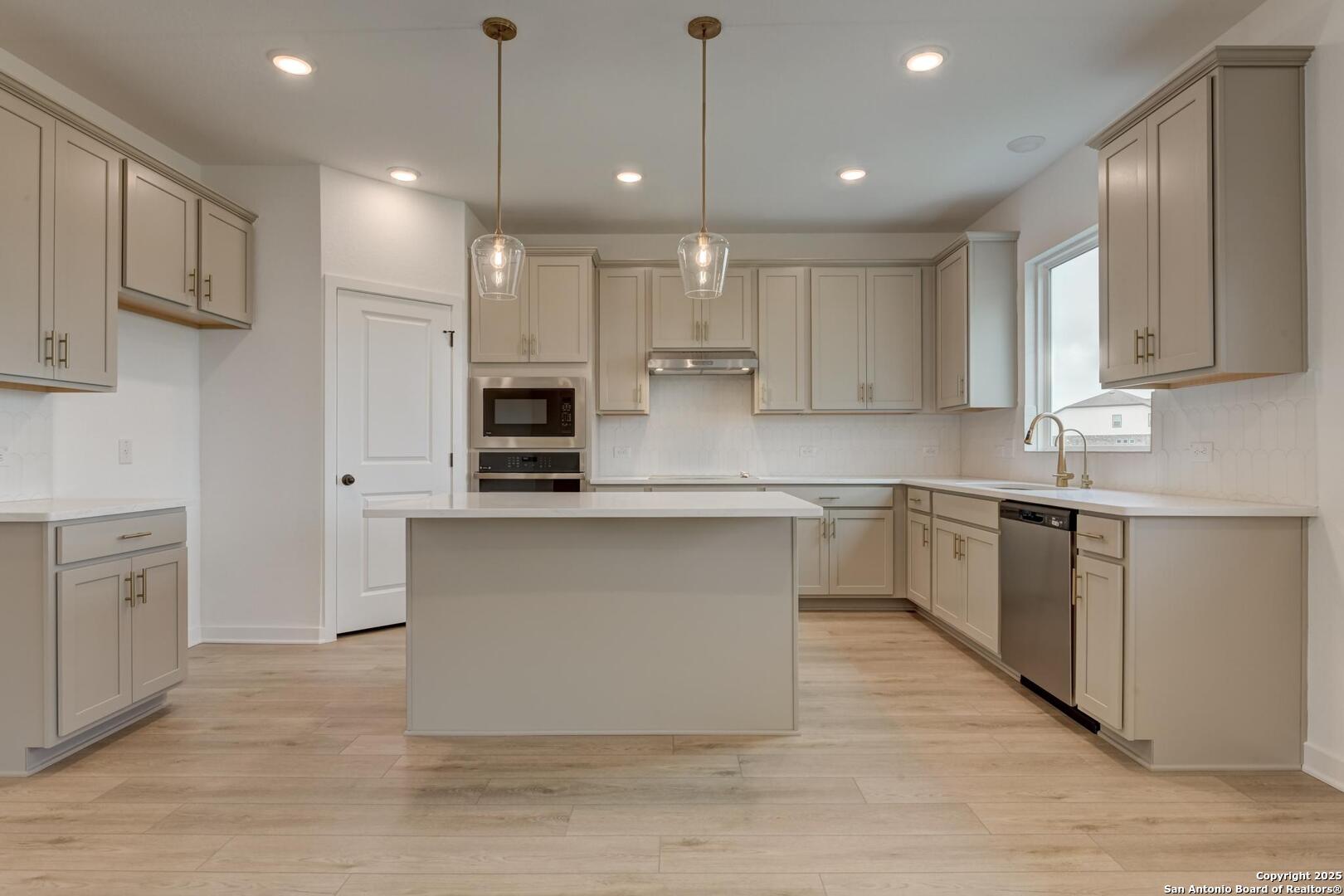 This beautiful two-story home combines thoughtful design with flexible living spaces to suit a variety of lifestyles. At the heart of the home is a gourmet kitchen featuring a spacious center island and a walk-in pantry, creating the perfect setting for meal prep, casual dining, or entertaining. The kitchen opens seamlessly to the family room and breakfast area, making it easy to stay connected whether you are hosting friends or enjoying a quiet night in. The family room is filled with natural light from three large windows that overlook the backyard, creating a bright and inviting atmosphere. Just off the foyer, a private study provides the ideal space for working from home, pursuing hobbies, or creating a quiet reading nook. The study can also be converted into a downstairs secondary bedroom and bathroom for added flexibility. In addition, the downstairs living room can be optioned as a second study, giving you even more ways to tailor the home to your needs. Upstairs, the primary suite offers a private retreat complete with a well-appointed bath and a spacious walk-in closet. A large loft provides extra space for a game room, media area, or secondary living zone. Three secondary bedrooms and a shared bathroom are also located upstairs, offering plenty of room for family and guests. The three-car tandem garage provides generous storage and parking space, with the tandem bay available as an option for a media room. This home is part of our Serene Collection-designed to bring balance, calm, and open space into everyday life. Muted earth tones and natural textures work together to create rooms that breathe and moments that linger. Serene is about slowing down, soaking in the quiet, and making space for what truly matters, one peaceful moment at a time. This home is located in Saddlebrook Ranch, a master-planned community in the charming city of Schertz-named one of CNN/Money's top small towns. Enjoy easy access to I-35, premier shopping, dining, and Randolph Air Force Base. Planned amenities include a sparkling pool and playground, perfect for family fun. With the highly regarded Schertz-Cibolo-Universal City School District nearby, Saddlebrook Ranch offers the ideal blend of community, convenience, and small-town charm.