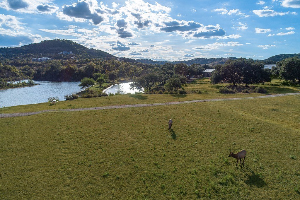Exceptional Value! Two lots for the price of one in Ranches of Brushy Top!. This 21+ acre hilltop property offers breathtaking views, nestled in a prestigious ranch community with free-roaming exotic wildlife, an 80-acre nature preserve, and two stocked lakes. Conveniently located near Hwy 281, this secluded offering includes two contiguous lots (8.36 acres & 13.38 acres) with multiple build sites among mature trees—perfect for your dream home or investment. The Ranches of Brushy Top spans 2,000+ acres, preserving native and exotic wildlife like Elk, Black Buck, and Oryx. Community amenities include gated entry, two stocked lakes for fishing, swimming, and kayaking, plus miles of trails for horseback riding, hiking, or UTV cruising. Underground utilities, including high-speed internet, are in place. Currently 1-D-1 Ag exempt, with no city taxes and low HOA fees. Located 45 minutes from Austin or San Antonio. 8 minutes to shopping and restaurants.