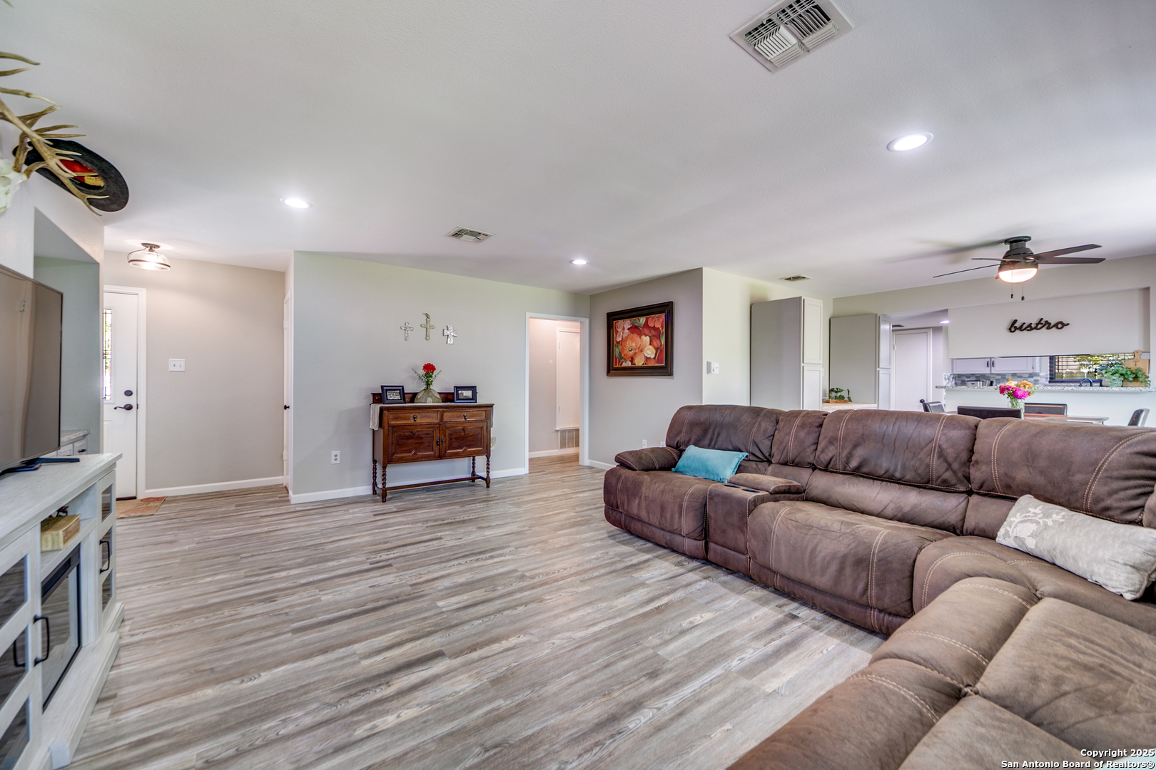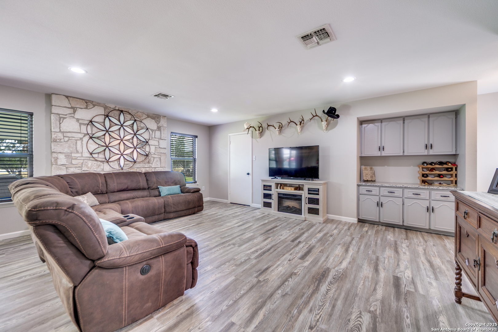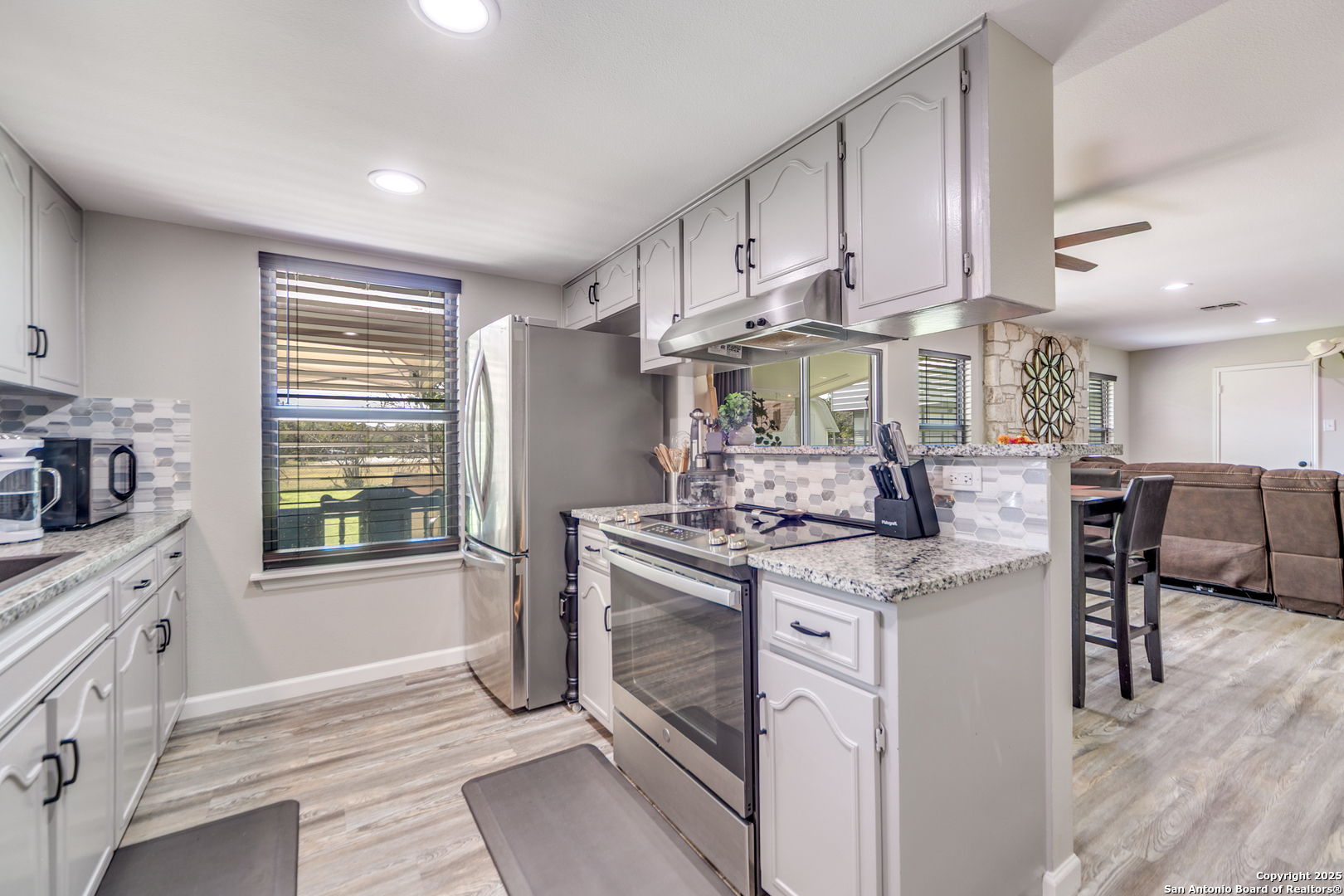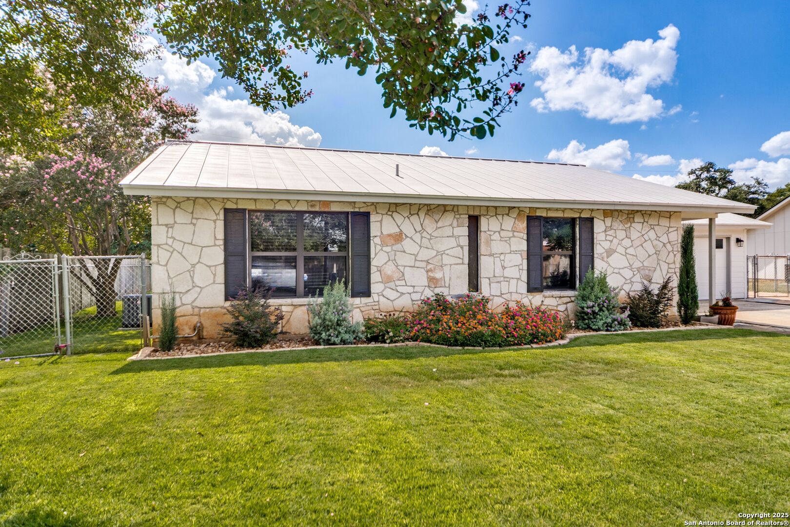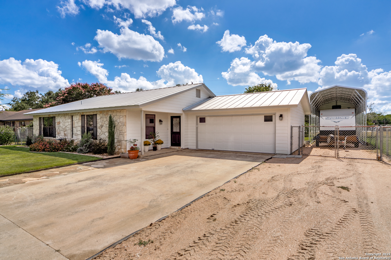 Welcome to 129 Hughs Street in Boerne! This charming 3-bedroom, 2-bath home has been beautifully updated inside and out and is ready for its new owners. One of the bedrooms could easily serve as a home office, offering flexibility for today's lifestyle. Renovations completed in 2022 include fresh interiors along with major exterior improvements including the metal roof, Hardi plank siding, windows, and exterior doors, giving you peace of mind for years to come. The kitchen is a true highlight, featuring granite countertops, recent appliances, and a coffee bar with additional counter space and storage. The open layout flows seamlessly into the dining and living areas, creating the perfect setting for gatherings with family and friends. Both bathrooms have been refreshed, and thoughtful touches throughout add comfort and convenience. Step outside and enjoy a freshly replaced, lush green lawn. The expansive backyard offers privacy as it backs up to the open lawn of a church with no neighbors directly behind you. It's an ideal space for entertaining, gardening, or simply relaxing. An added carport provides parking for an RV or at least two additional vehicles, in addition to the attached two-car garage. Located just minutes from Downtown Boerne, the Cibolo Nature Center, and the local Farmers Market, this home also offers convenient access to Boerne schools. With modern updates and classic Hill Country charm, this one is ready to welcome you home.
