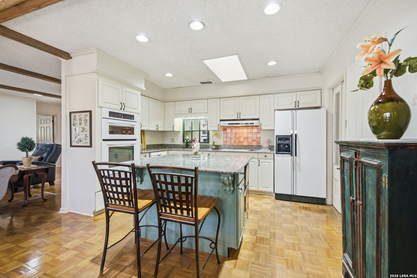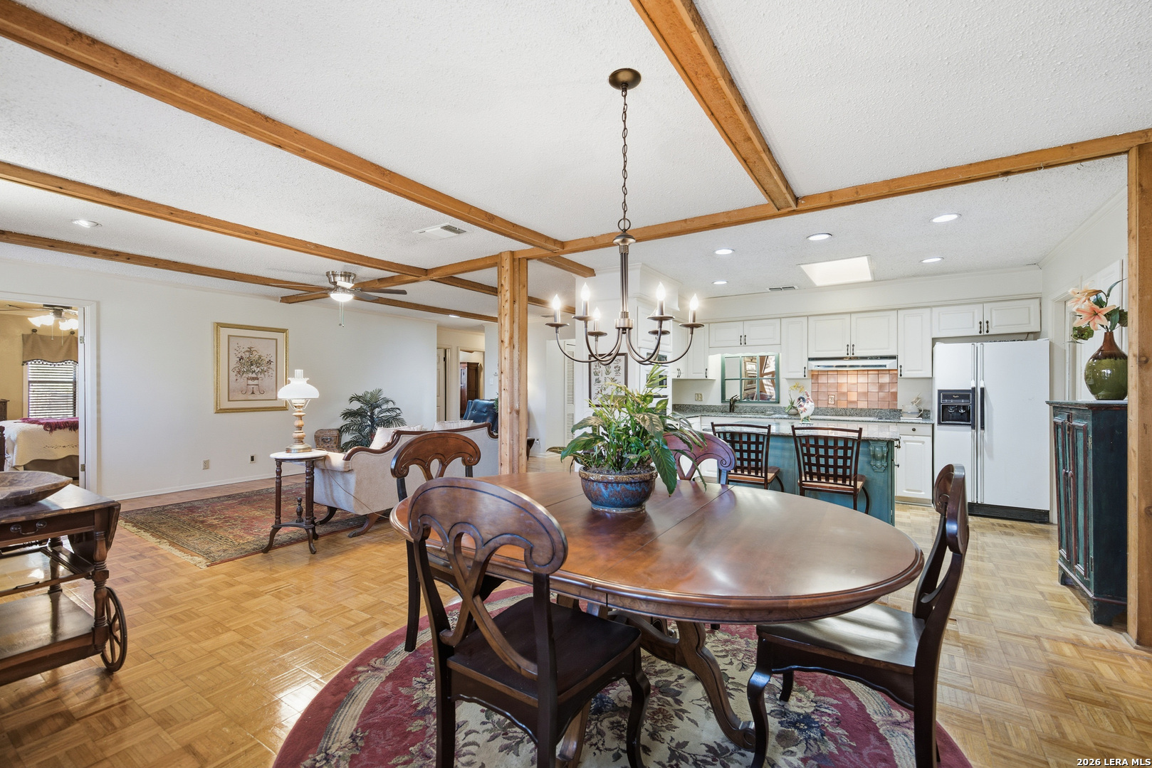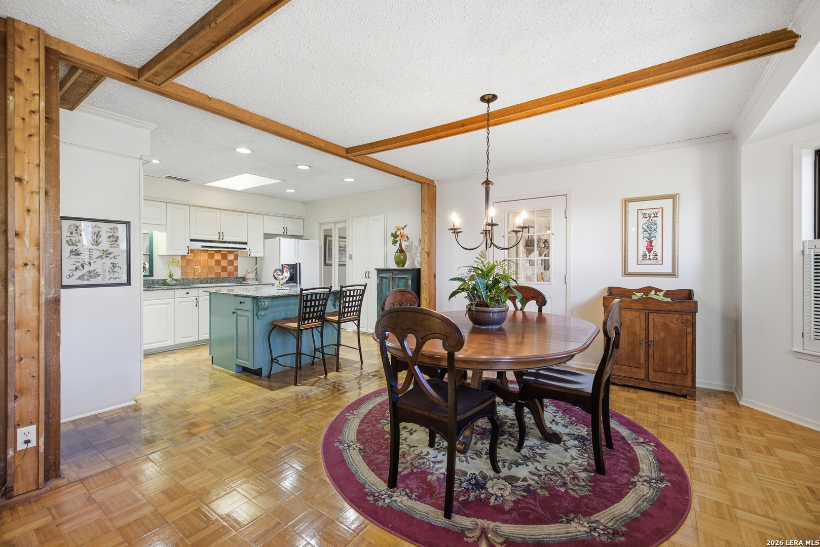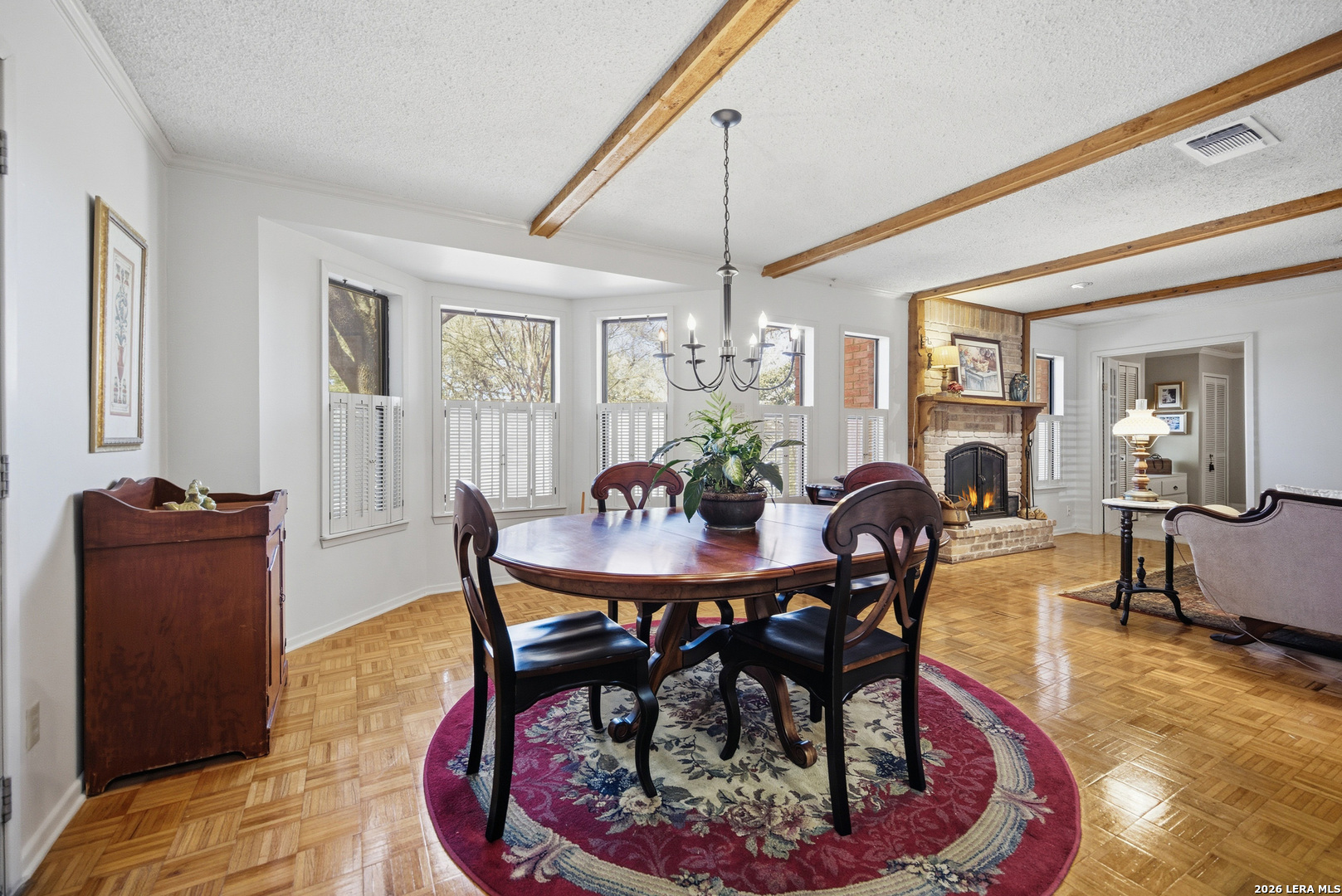 Charming Single Story Home-Pride of Ownership Shows*Classic Beauty Situated on a Picture Perfect Lot-Trees-Privacy Fence*Front Porch*Entry Opens to Formal Dining Room w/ Floor to Ceiling Built-In*Wood Beams Accent Ceilings in Living Room w/ Brick Fireplace-Gas Starter & Mantel*Wood Flooring*Kitchen Opens to Living Room Plus Dining Room*Lots of Cabinetry & Full Pantry*Built In Appliances*Double Ovens*Granite Counters*Laundry Room w/ Storage Space*Primary Bedroom w/ Full Bath and Dual Walk-In Closets*Primary Bath Features Tile Mud Set Shower & Single Vanity*Spacious Secondary Bedrooms*4th Room is a True Separate Study or Flex Room-no closet*Picture Perfect Enclosed Patio/Sunroom w/ Windows Overlooking Lush Landscaping & Extended Patio-Perfect for Privacy & Entertaining*Attached 2 Car Garage*This Home is a Must See!*