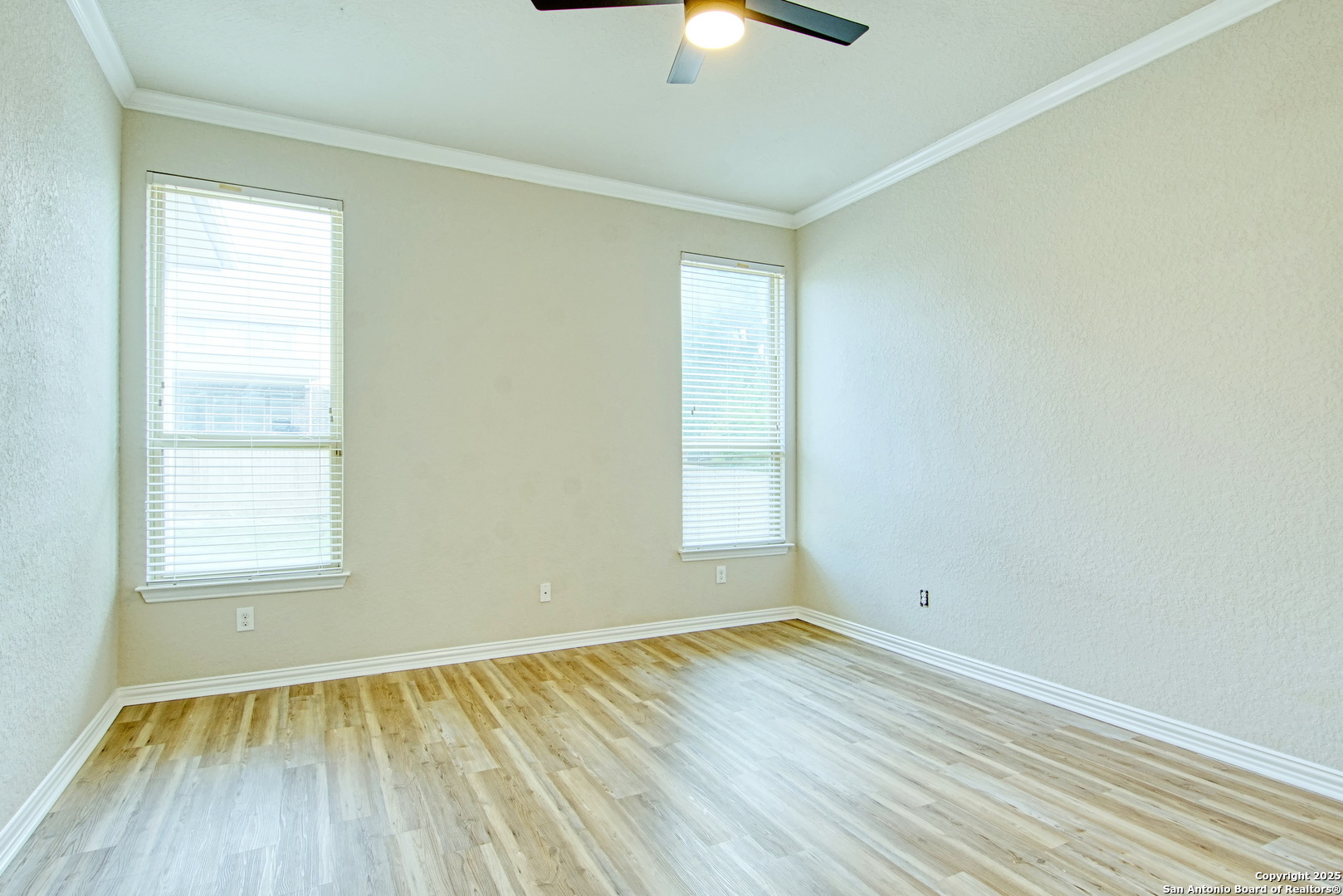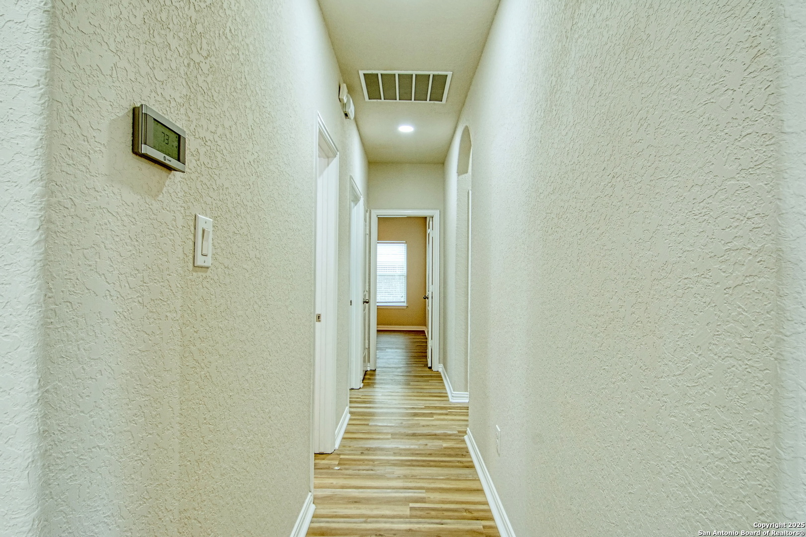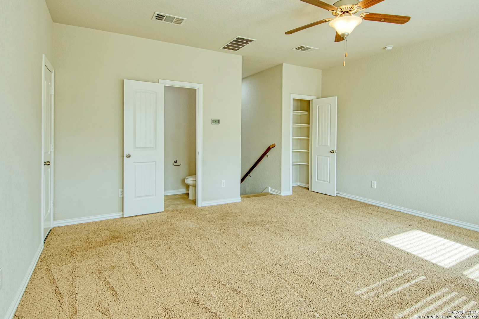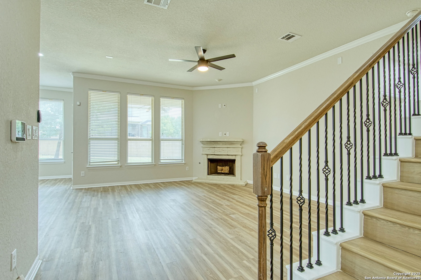 Don't miss your opportunity to acquire this highly sought-after 1.5-story floor plan in the prestigious gated community of Alamo Ranch. This home boasts over $50,000 in upgrades, including luxurious vinyl plank flooring throughout the entire residence, extending even to the staircase. The only carpeted area is the upstairs game/media room, providing a cozy retreat for entertainment. This unique open floor plan features four spacious bedrooms and two and a half bathrooms on the main level, with an additiona