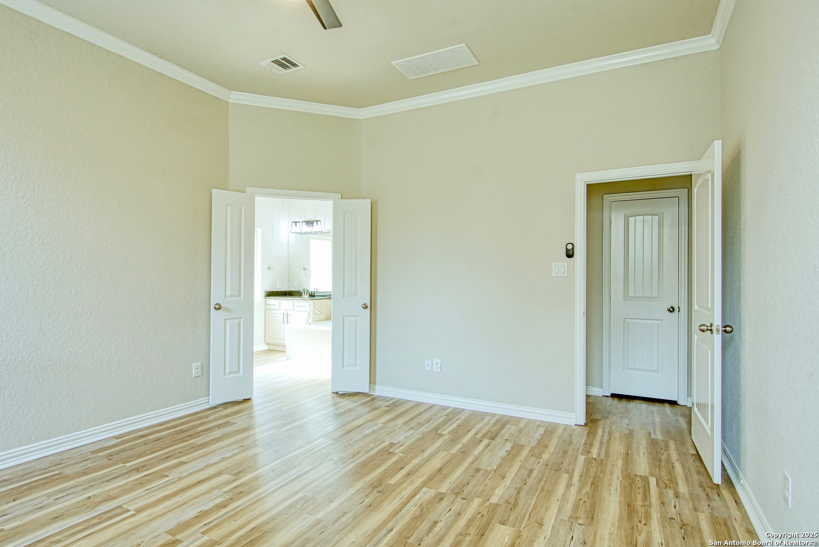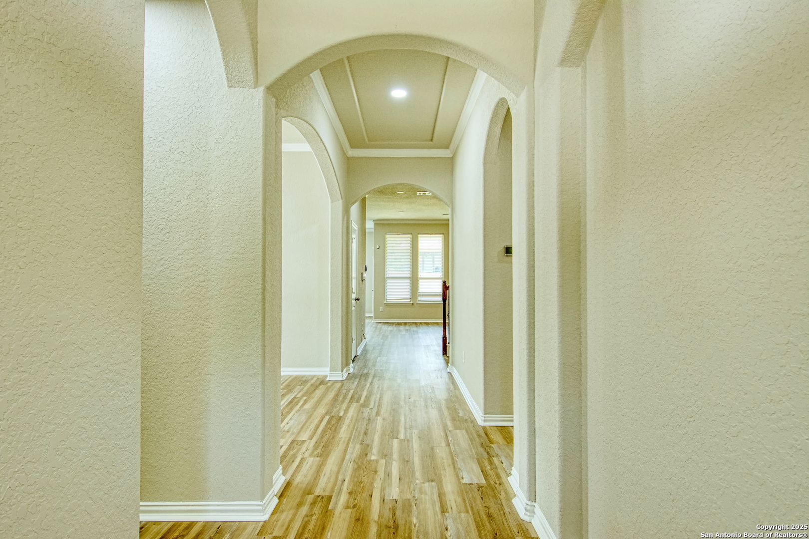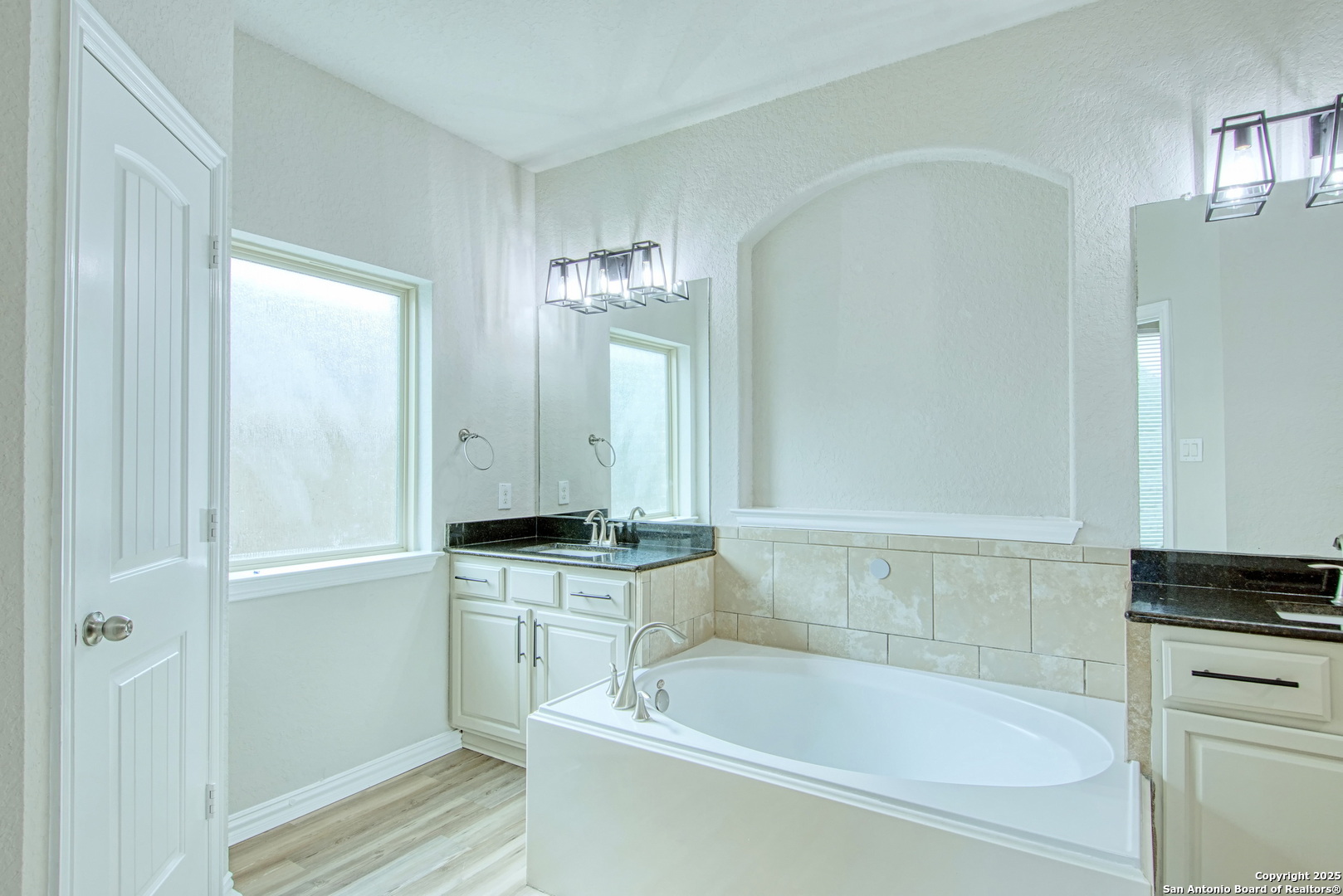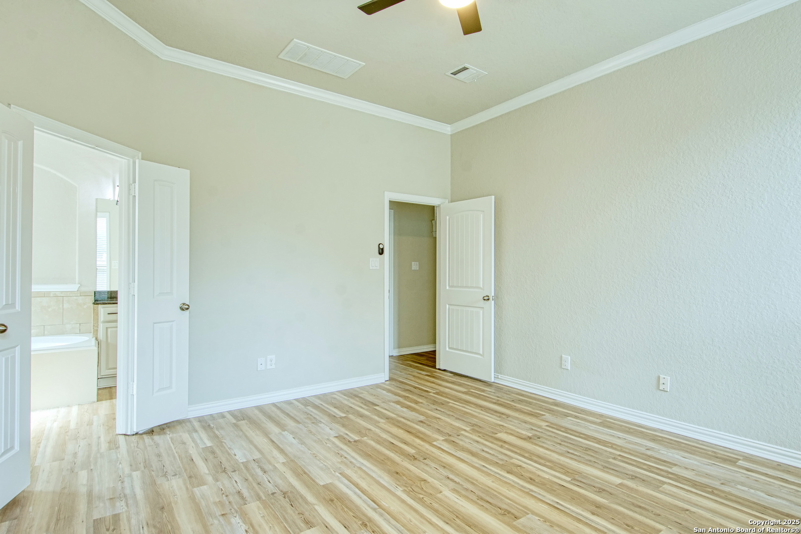 Don't miss your opportunity to acquire this highly sought-after 1.5-story floor plan in the prestigious gated community of Alamo Ranch. This home boasts over $50,000 in upgrades, including luxurious vinyl plank flooring throughout the entire residence, extending even to the staircase. The only carpeted area is the upstairs game/media room, providing a cozy retreat for entertainment. This unique open floor plan features four spacious bedrooms and two and a half bathrooms on the main level, with an additiona