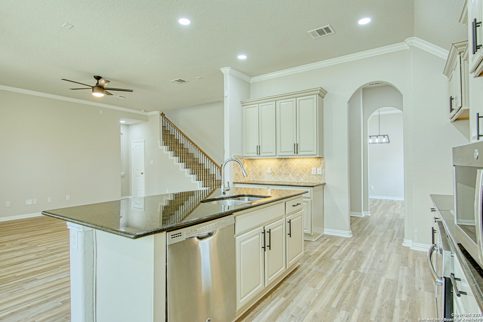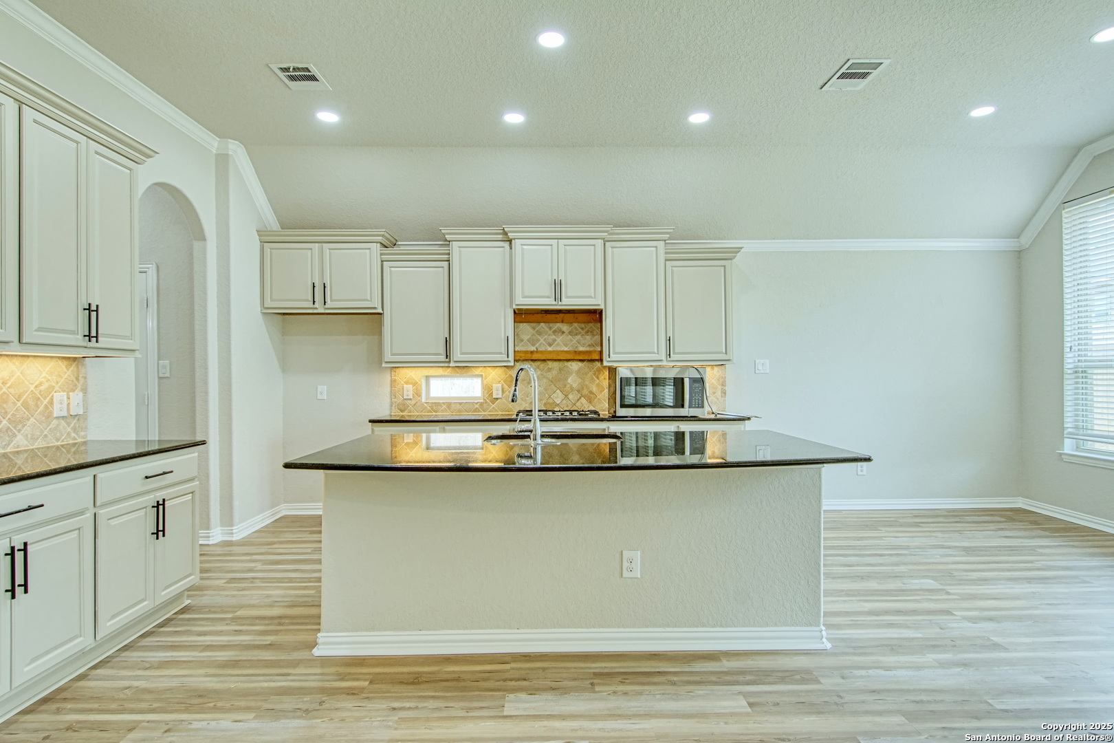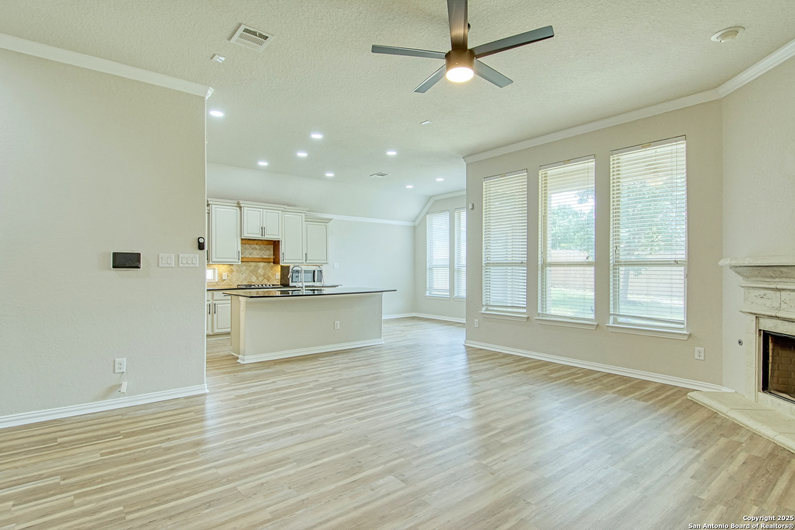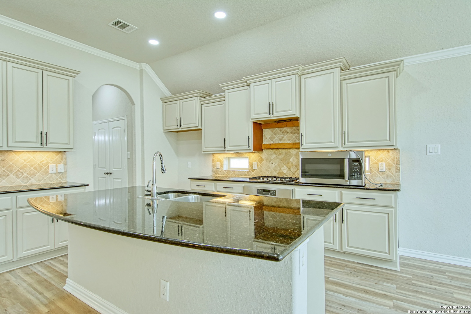 Don't miss your opportunity to acquire this highly sought-after 1.5-story floor plan in the prestigious gated community of Alamo Ranch. This home boasts over $50,000 in upgrades, including luxurious vinyl plank flooring throughout the entire residence, extending even to the staircase. The only carpeted area is the upstairs game/media room, providing a cozy retreat for entertainment. This unique open floor plan features four spacious bedrooms and two and a half bathrooms on the main level, with an additiona