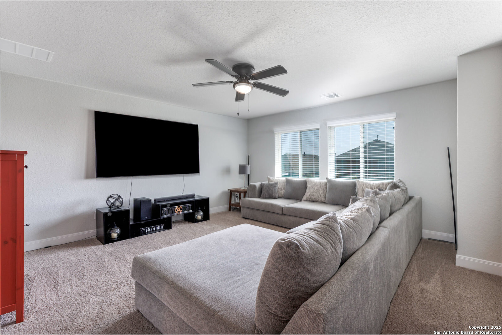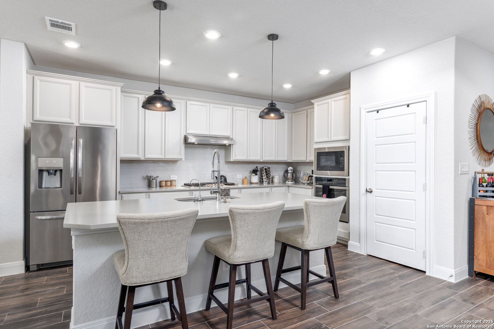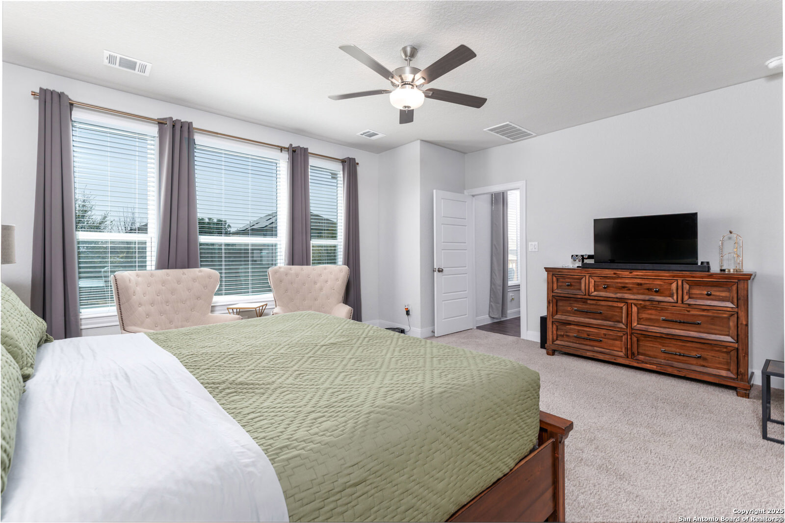 Feel like you've just stepped into the pages of Southern Living! Seller offering $5,000 in FLEX CASH! Prepare to be wowed by The Latham Floorplan a stunning David Weekley masterpiece that perfectly blends modern elegance with everyday comfort. From the moment you enter, you'll feel an immediate sense of style, sophistication, and warmth. This two-story showstopper sits on a .17-acre lot and features 4 spacious bedrooms, 3.5 baths, and a 3-car garage designed with convenience and versatility in mind. The home includes a second master suite upstairs, offering flexibility for guests or multigenerational living. On the main level, you'll find a private study, perfect for a home office or quiet retreat. The open-concept living area steals the show with soaring 20-foot ceilings and an abundance of natural light, creating an inviting atmosphere that's ideal for both relaxing and entertaining. The gourmet kitchen is a dream come true for any home chef, featuring gas cooking, sleek white cabinetry, and ample counter space and storage the perfect blend of function and style. Outside your doorstep, the community offers resort-style amenities including a clubhouse, park/playground, jogging trails, BBQ area, and basketball court - everything you need for an active, connected lifestyle. Located just minutes from Loop 1604, Hwy 90, and Hwy 151, with Lackland AFB only 15 minutes away and SeaWorld just 10 minutes, you'll enjoy quick access to premier shopping, dining, and entertainment. This is more than a home it's a statement of style, comfort, and modern living.