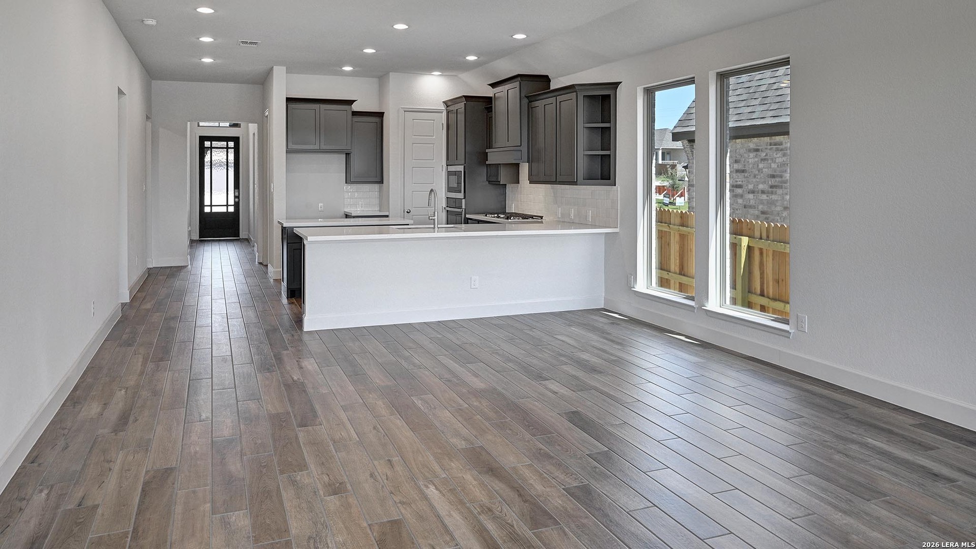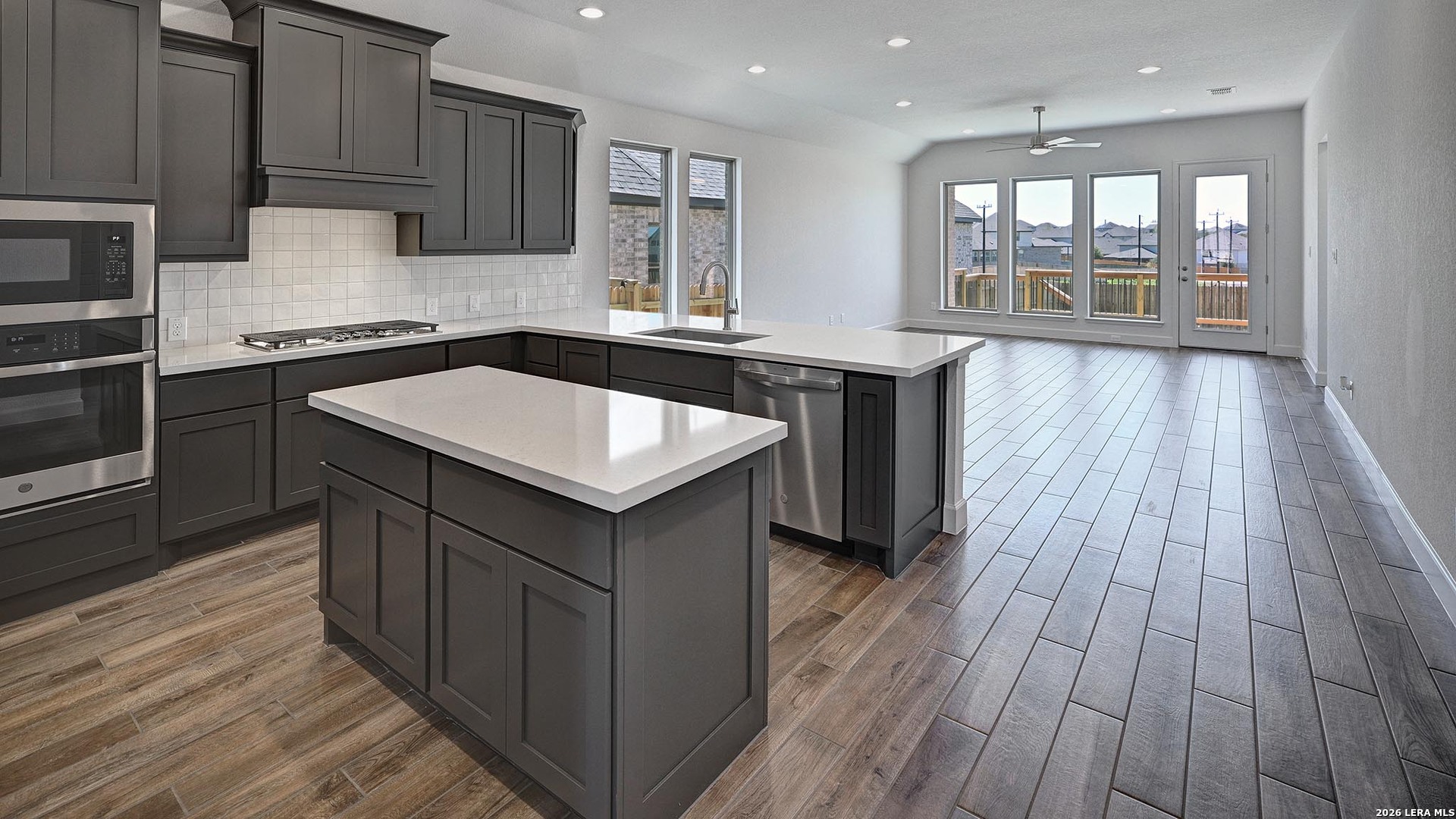 Entry welcomes you with a 12-foot ceiling. Open kitchen offers a center island, a 5-burner gas cooktop and spacious pantry. Dining area flows into open family room with wall of windows. Secluded primary suite includes primary bath with dual vanities, garden tub, separate glass-enclosed shower and a large walk-in closet. Abundant closet space in the secondary bedrooms. Covered backyard patio. Mud room off the two-car garage.