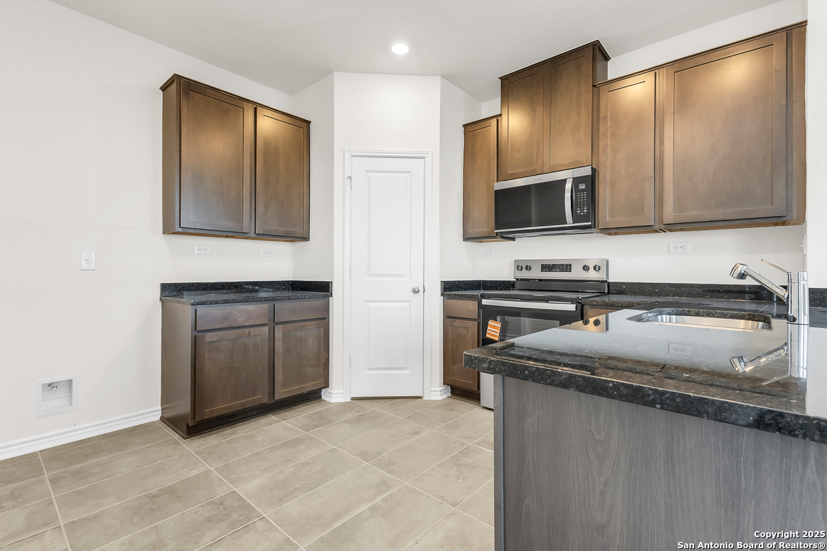 Step inside this beautifully designed home featuring 9-ft. first-floor ceilings and stylish Rekindle ceramic tile flooring throughout the kitchen, great room, and baths. The kitchen is a culinary delight with Whirlpool stainless steel appliances, Woodmont Dakota Shaker panel 42-in. upper cabinets, granite countertops in Uba Tuba, and an extended breakfast bar. The primary bath offers a relaxing 42-in. garden tub/shower with a Daltile surround and upgraded cabinetry. Enjoy added touches like a Carrara-style entry door, Kwikset Polo knob hardware, and a wireless security system. Outside, an automatic sprinkler system and fully sodded yard complete the picture.