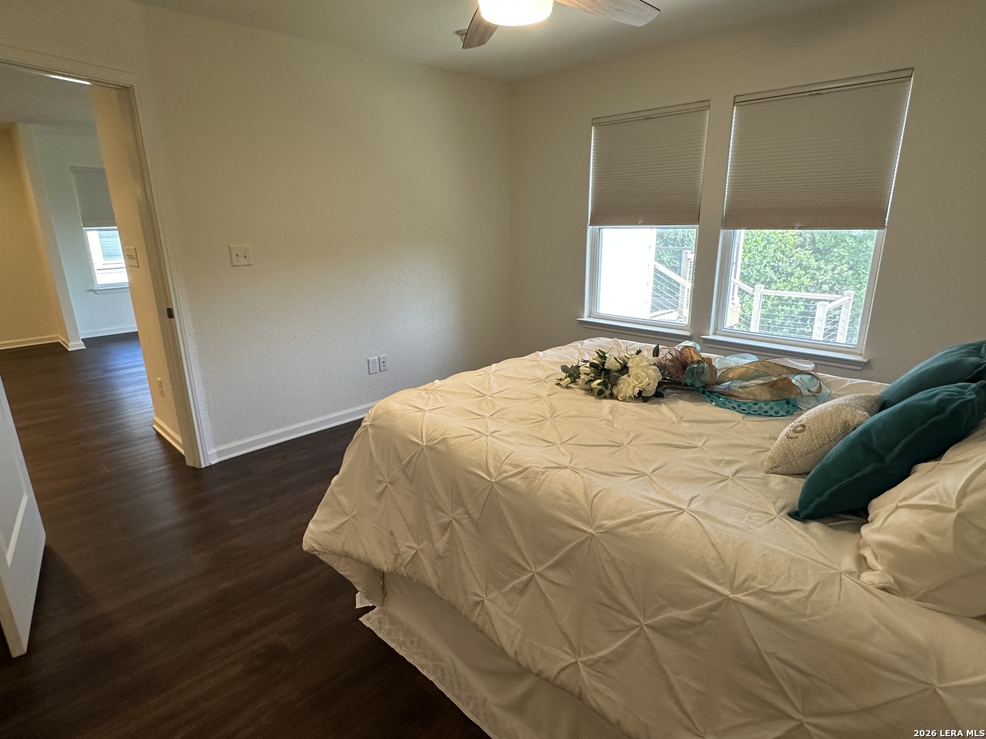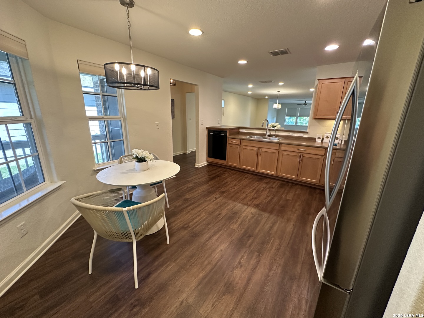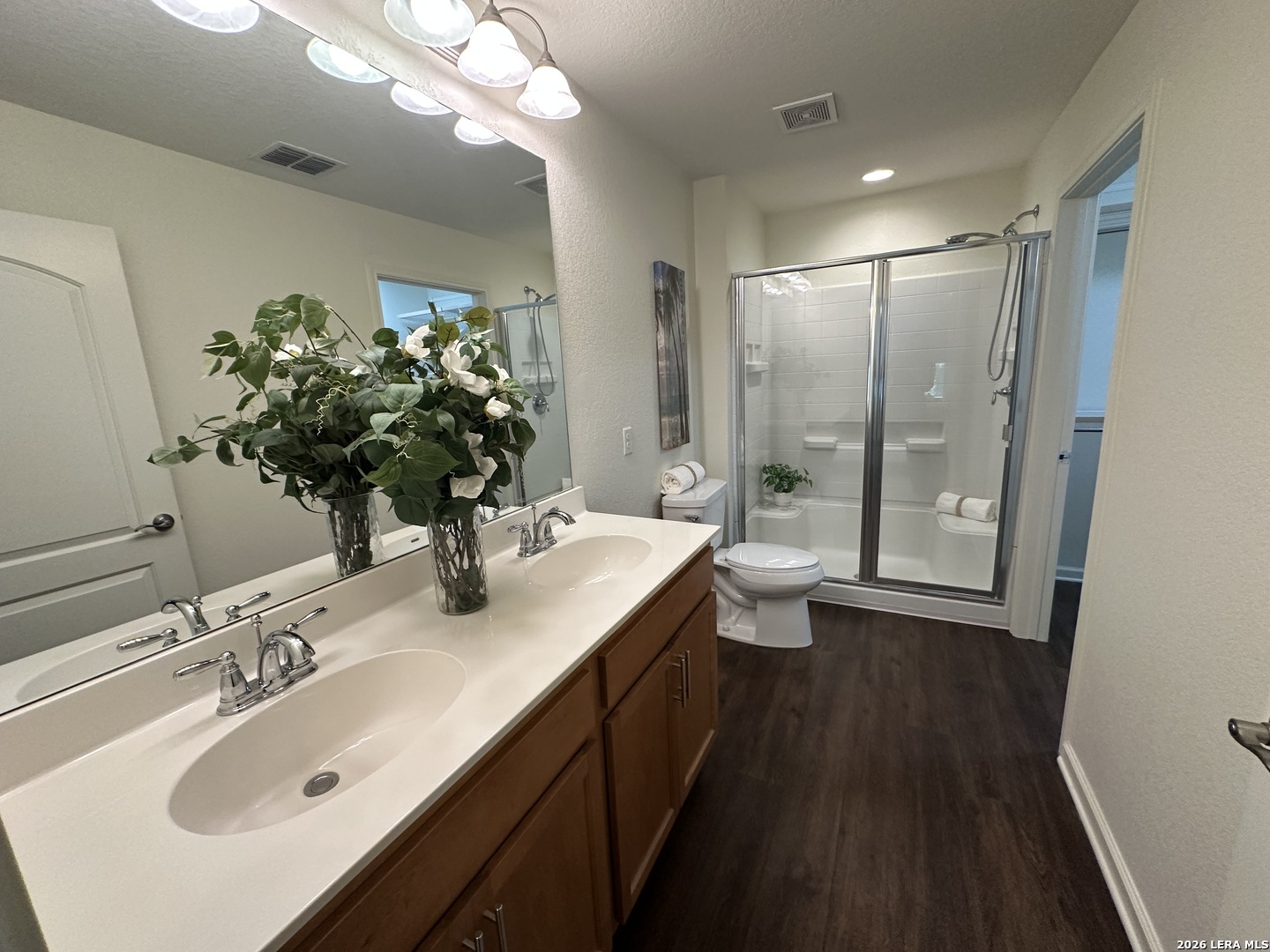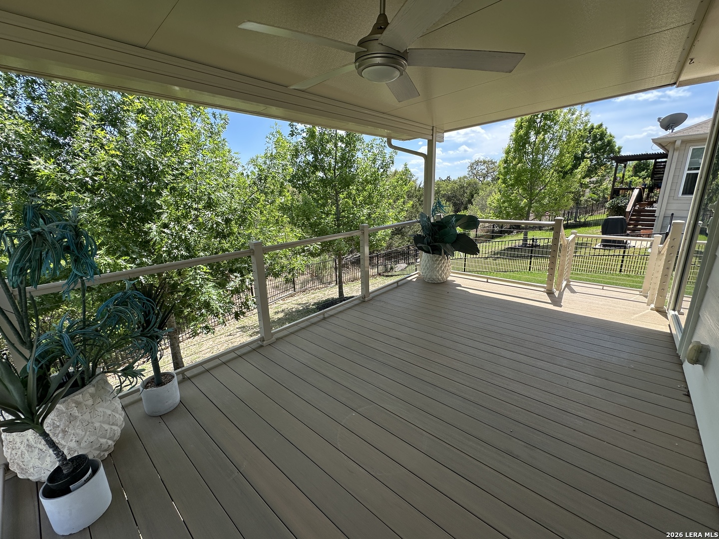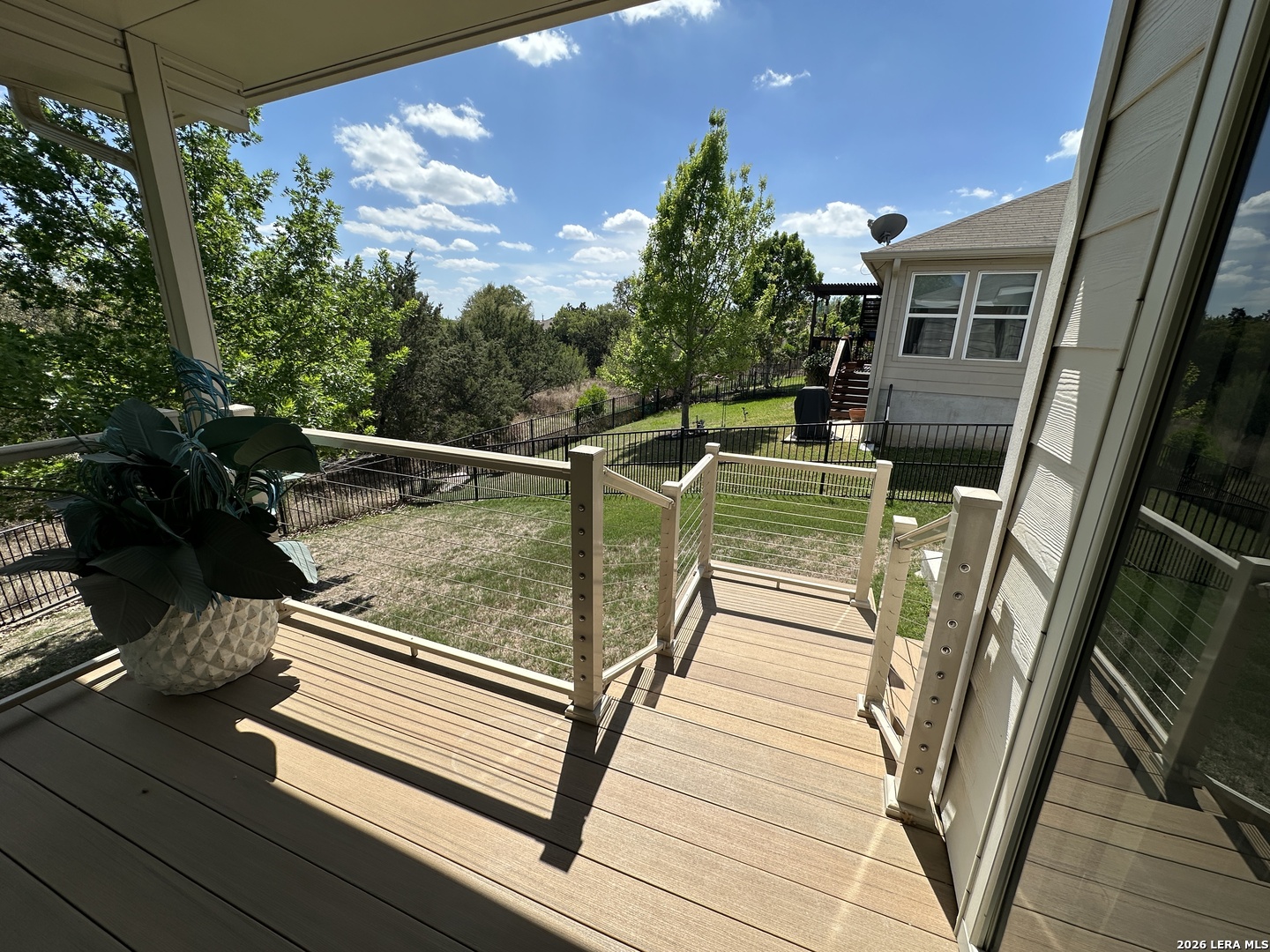 Beautifully appointed move in ready single story in the quiet over 55 community of Hill Country Retreat by Del Web. Open floor plan, many updates and aftermarket upgrades including Diamond composite deck with cover overlooking the serene greenbelt, custom master closet from Container Store, newer whole house waterproof LVP, front and back security doors plus 2 storm doors, newer LG refrigerator, LG stove (2025), recently painted, garage 220 plug for electric vehicle, water softener , newer gas water heater, new garage door (2025), 220 plug wired on deck for a future hot tub, honey comb Levolour custom blinds with remote which lower and rise from the top or bottom, ceiling fans throughout, new wrought iron fence in back, reverse osmosis water system, 1 hp garbage disposal, newer commodes, bring your buyers today!!