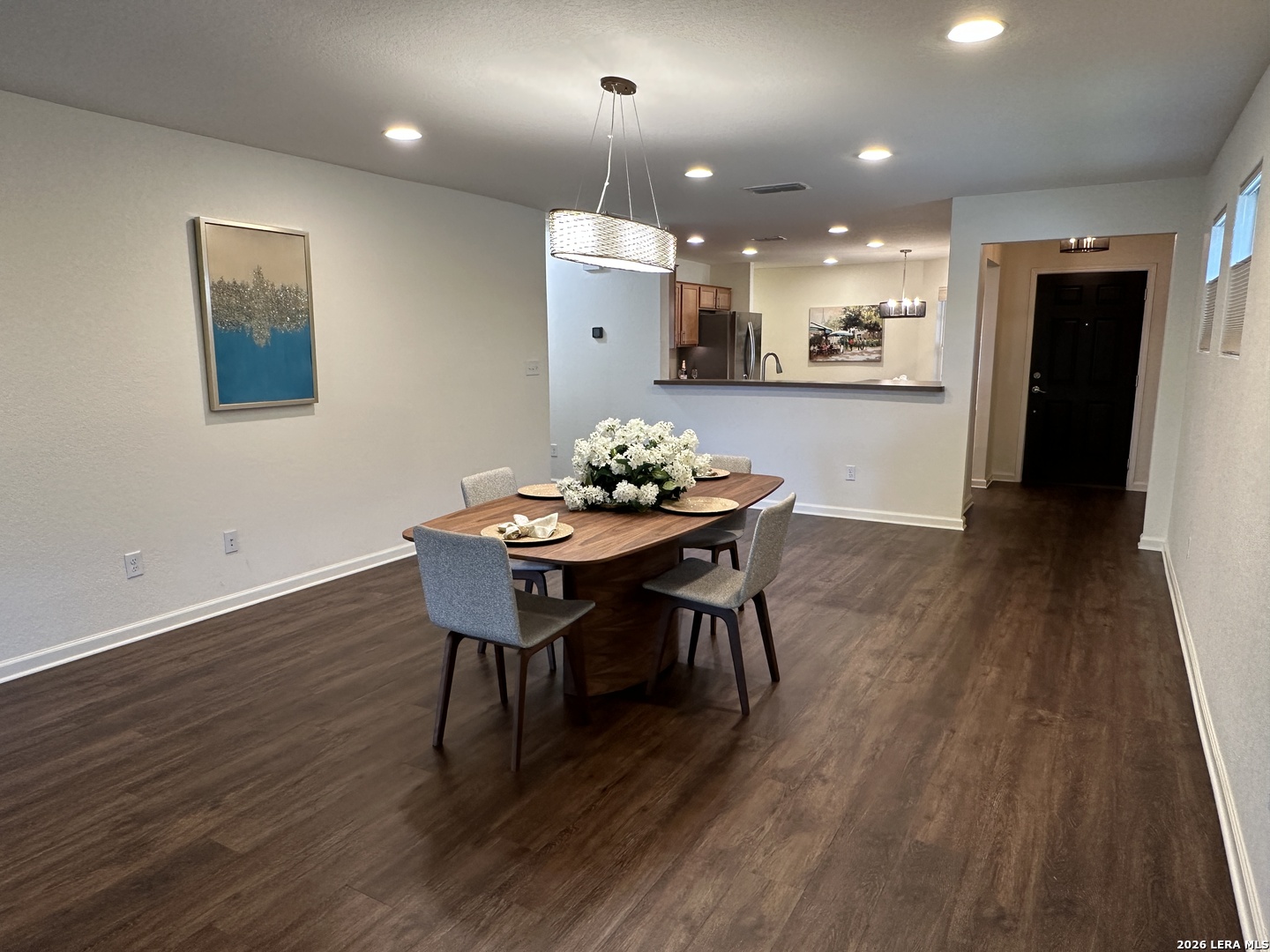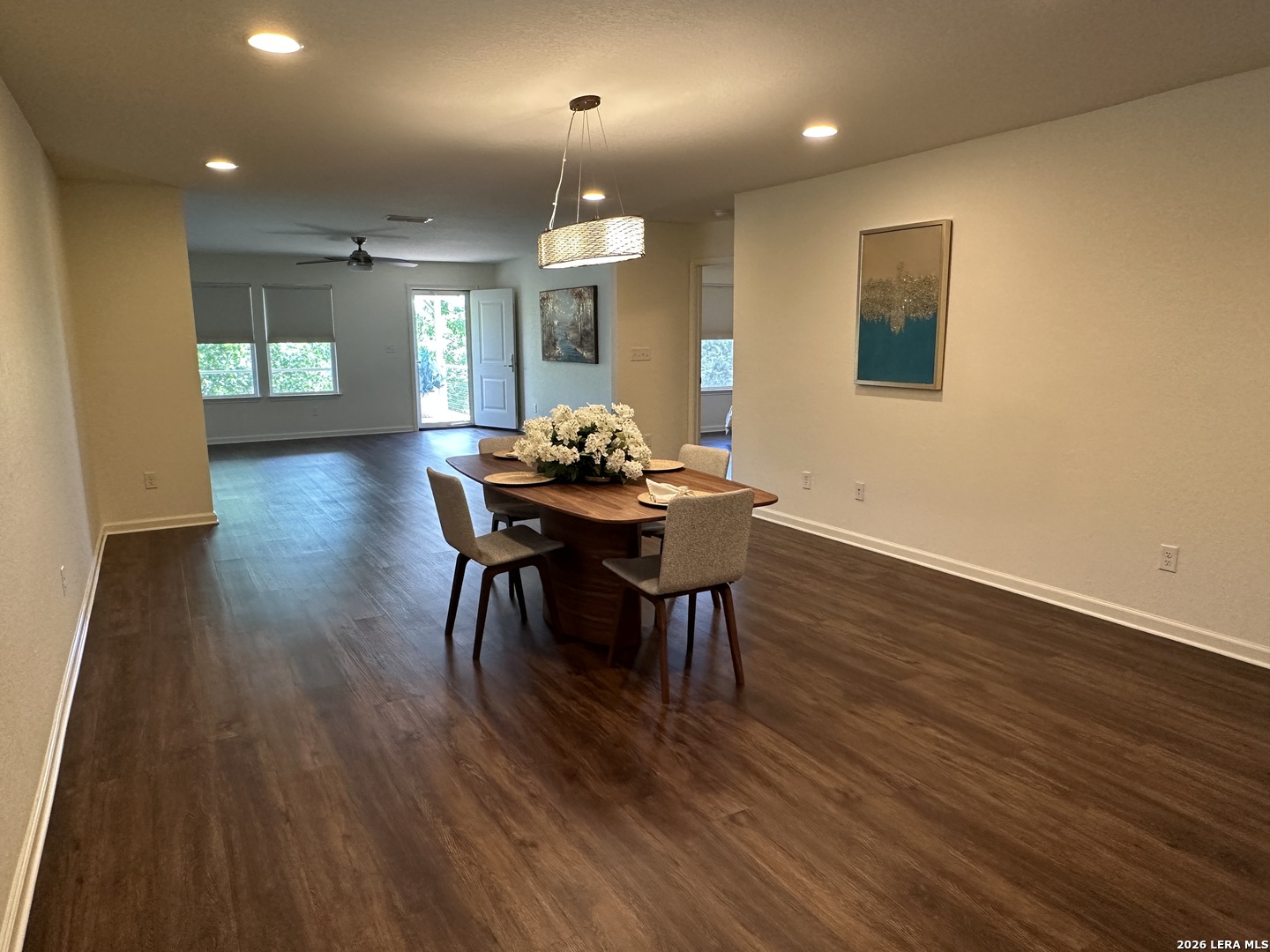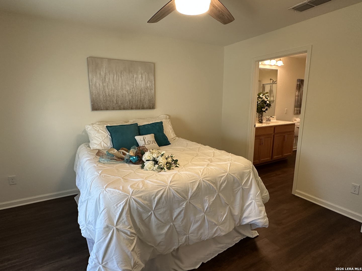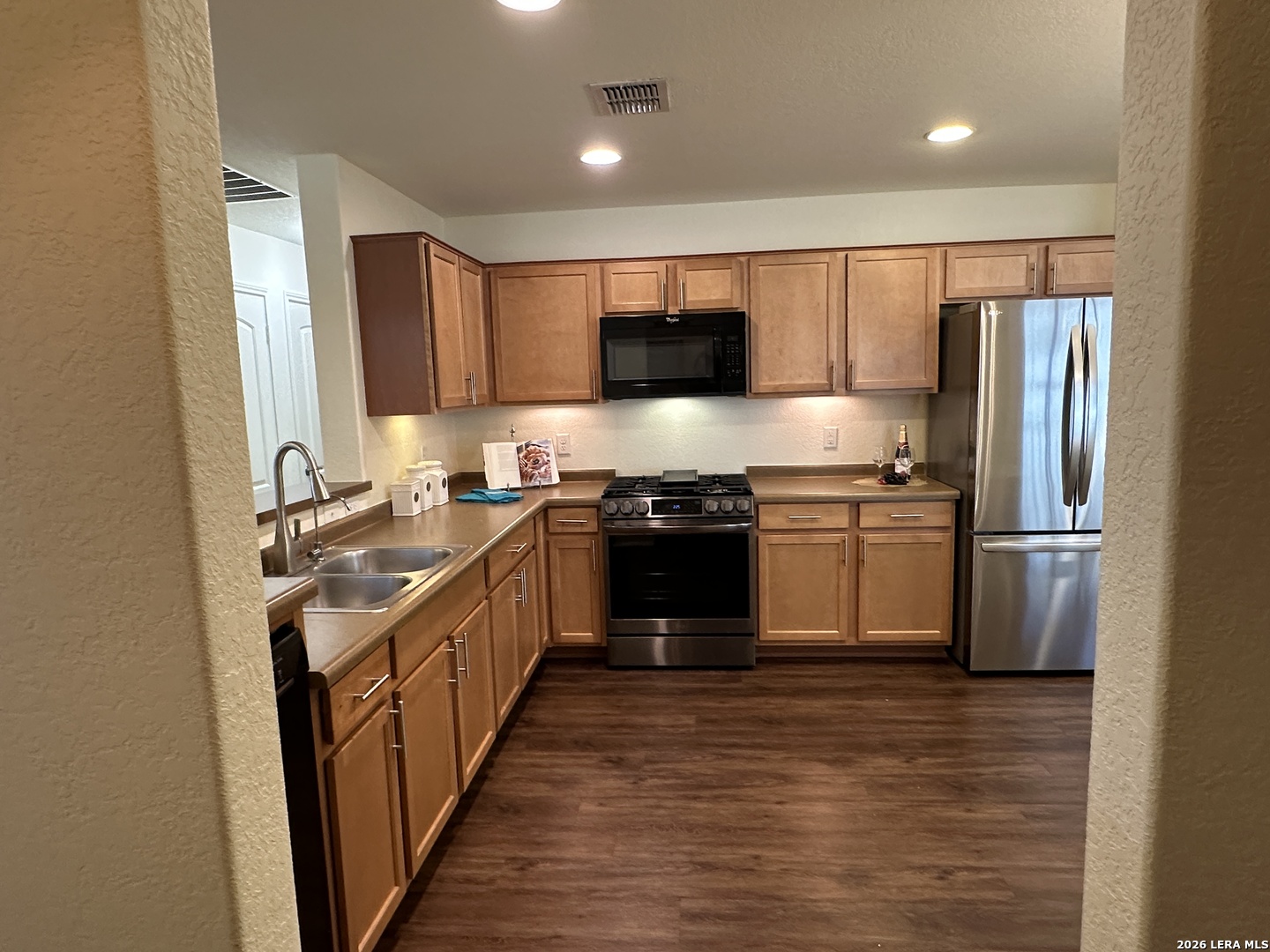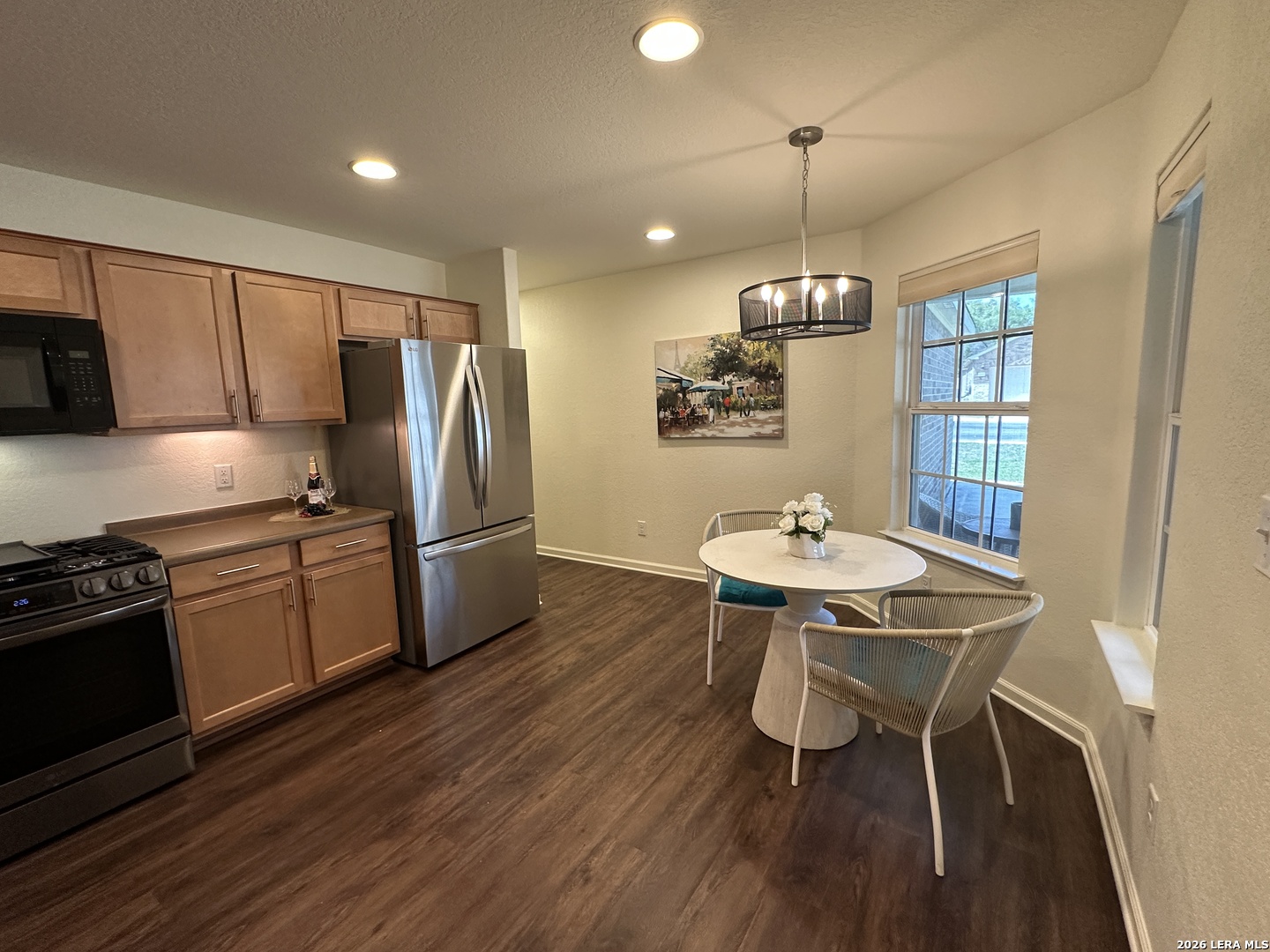 Beautifully appointed move in ready single story in the quiet over 55 community of Hill Country Retreat by Del Web. Open floor plan, many updates and aftermarket upgrades including Diamond composite deck with cover overlooking the serene greenbelt, custom master closet from Container Store, newer whole house waterproof LVP, front and back security doors plus 2 storm doors, newer LG refrigerator, LG stove (2025), recently painted, garage 220 plug for electric vehicle, water softener , newer gas water heater, new garage door (2025), 220 plug wired on deck for a future hot tub, honey comb Levolour custom blinds with remote which lower and rise from the top or bottom, ceiling fans throughout, new wrought iron fence in back, reverse osmosis water system, 1 hp garbage disposal, newer commodes, bring your buyers today!!