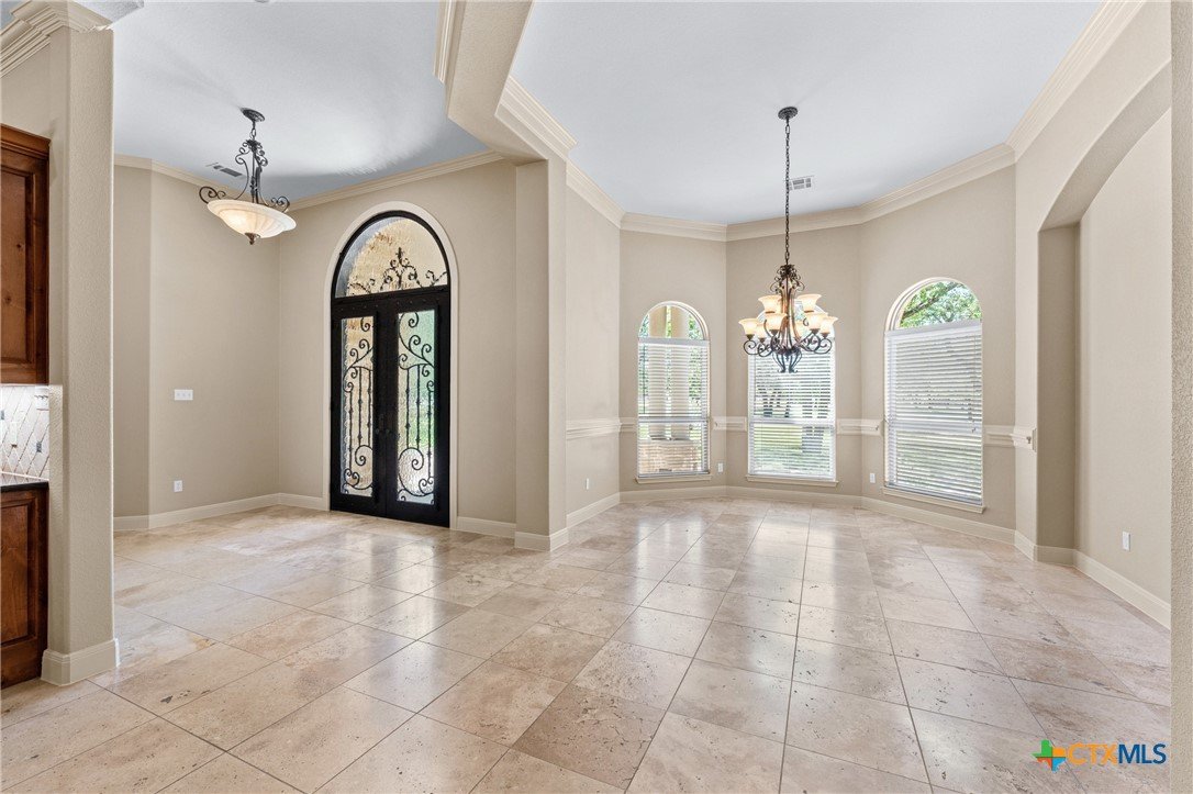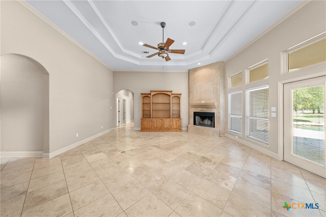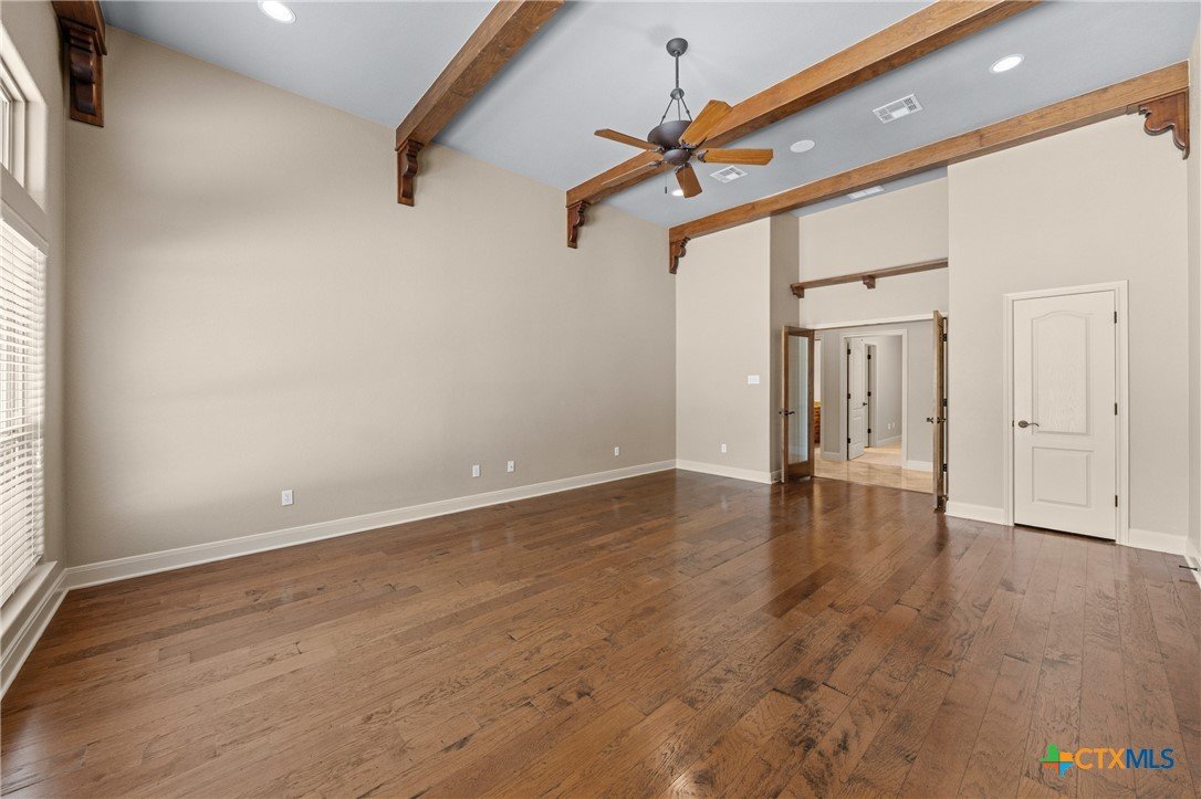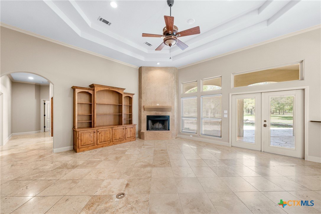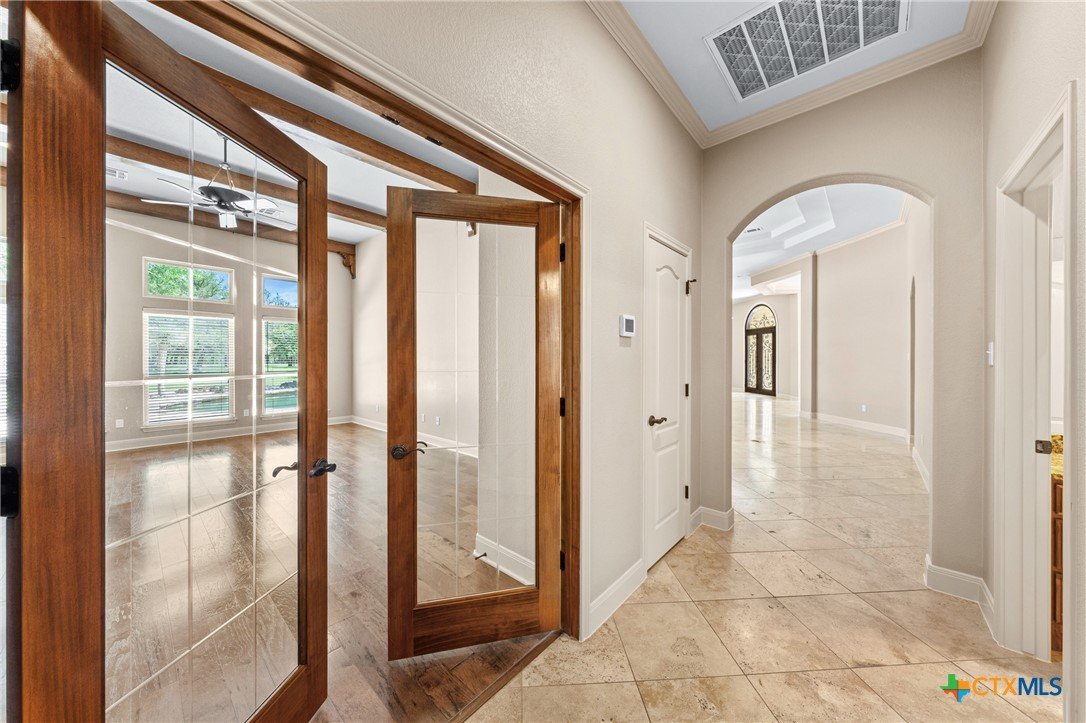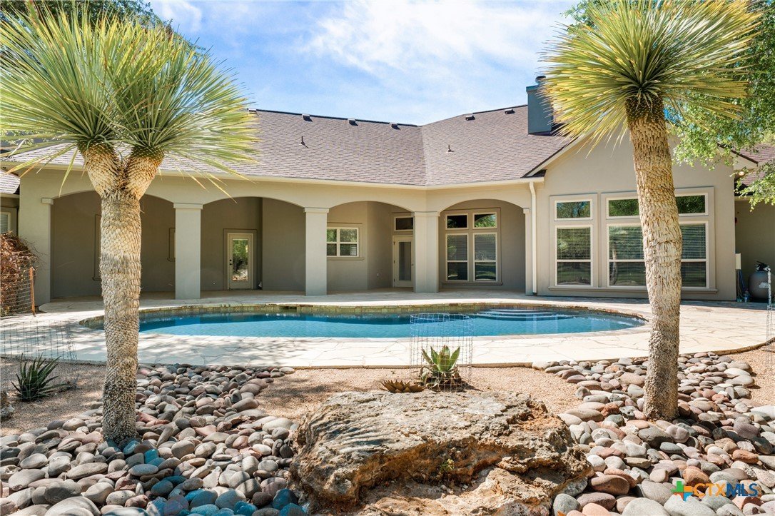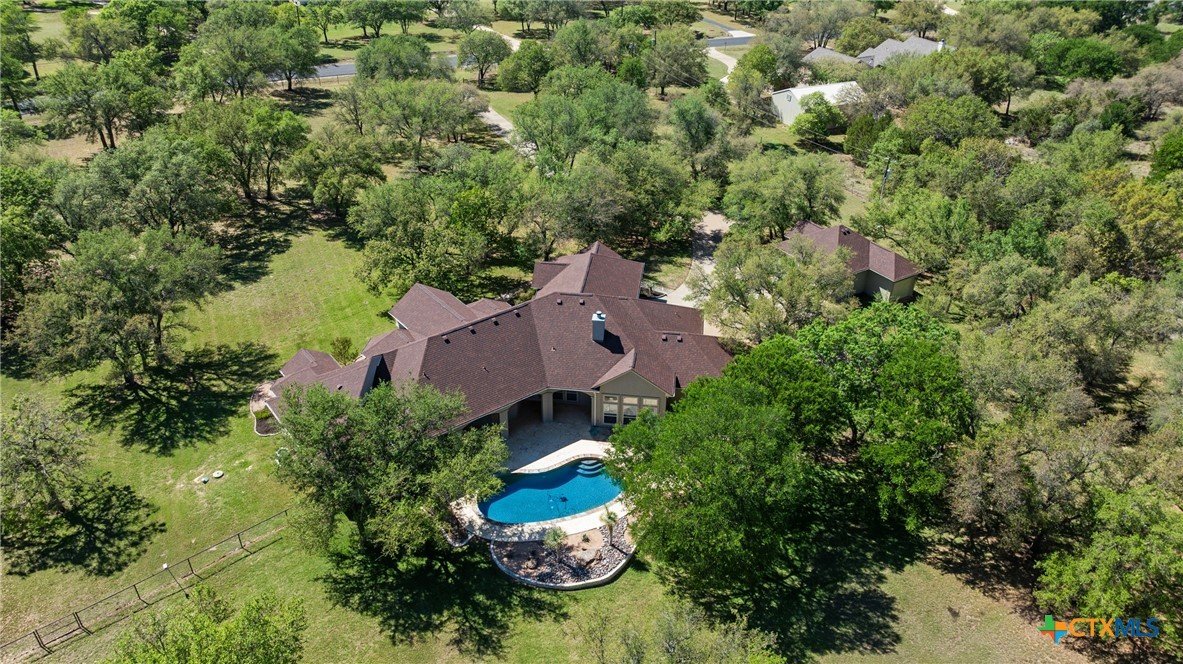 Imagine waking each morning in a beautifully maintained Hill Country estate tucked away in the coveted Hidden Springs neighborhood. Set on nearly five tree-covered acres, this exceptional property offers both privacy and space, complete with a sparkling swimming pool and a thoughtfully designed split floor plan. Inside, the home features two warm and inviting living areas, two elegant dining spaces, four spacious bedrooms, and four well-appointed bathrooms, along with a convenient four-car garage. The grand great room makes an unforgettable first impression with soaring ceilings, a striking fireplace, travertine floors, and dramatic double wrought-iron entry doors. Expansive windows flood the space with natural light and frame picturesque views of the backyard.Step outside to your own private oasis—the pool area is perfect for relaxing afternoons or entertaining guests, offering a serene retreat you may never want to leave. The generously sized kitchen is a true centerpiece, designed for both everyday living and gathering, with ample space to cook, connect, and entertain. A second living area adds character with rich wood floors, high ceilings, and beautiful exposed beams. All four bedrooms are generously sized, creating a comfortable and functional layout for modern living. Enjoy the peace and tranquility of country living while being just minutes from the charm, shopping, and dining of Salado.
