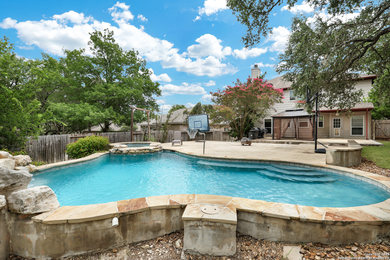 Nestled inside the gated Finesilver community, this beautifully maintained home is a peaceful escape designed for modern living. With a spacious, open layout and elegant upgrades, it offers the perfect balance of comfort, function, and style. The gourmet island kitchen features abundant storage, a breakfast nook, and views of the lush backyard. Host with ease in the formal dining room, or work in peace from the private office with French doors. Upstairs, unwind in a serene primary suite complete with a private balcony, large walk-in closet, and spa-like bath with dual vanities and a garden tub. A generous game room and three additional bedrooms provide flexibility for family, guests, or hobbies. The backyard is your personal paradise-featuring a heated custom pool with spa and waterfall, shaded patio, mature trees, and a fully fenced yard for privacy and comfort. Located in a gated neighborhood near top-rated schools, major shopping, dining, and highways, this home checks every box. A rare opportunity in Finesilver-schedule your private tour today.