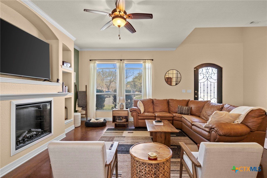 Upgraded custom home with Assumable 3.875% VA Loan- No rear neighbors in Nolanville, TX! This beautifully maintained 4-bedroom, 3-bathroom custom home offers the perfect blend of quality construction, thoughtful upgrades, and privacy- backing directly to Nolan Creek, so you'll enjoy no rear neighbors and peaceful natural views. Inside, you'll find high ceilings, custom built-ins, and a spacious, functional layout designed for everyday living and entertaining. Recent upgrades include a Class 3 impact-resistant roof (2024), HVAC system (2024), and added garage ceiling storage platforms for maximum efficiency. The backyard is fully enclosed with an updated privacy fence (2023) finished with a long-lasting, weather-resistant stain to stand up to the Texas sun. Located in the growing community of Nolanville, you'll love the convenient Central Texas location between Temple and Killeen. Schedule your private showing today! *Please note that sellers cannot vacate home until end of June*