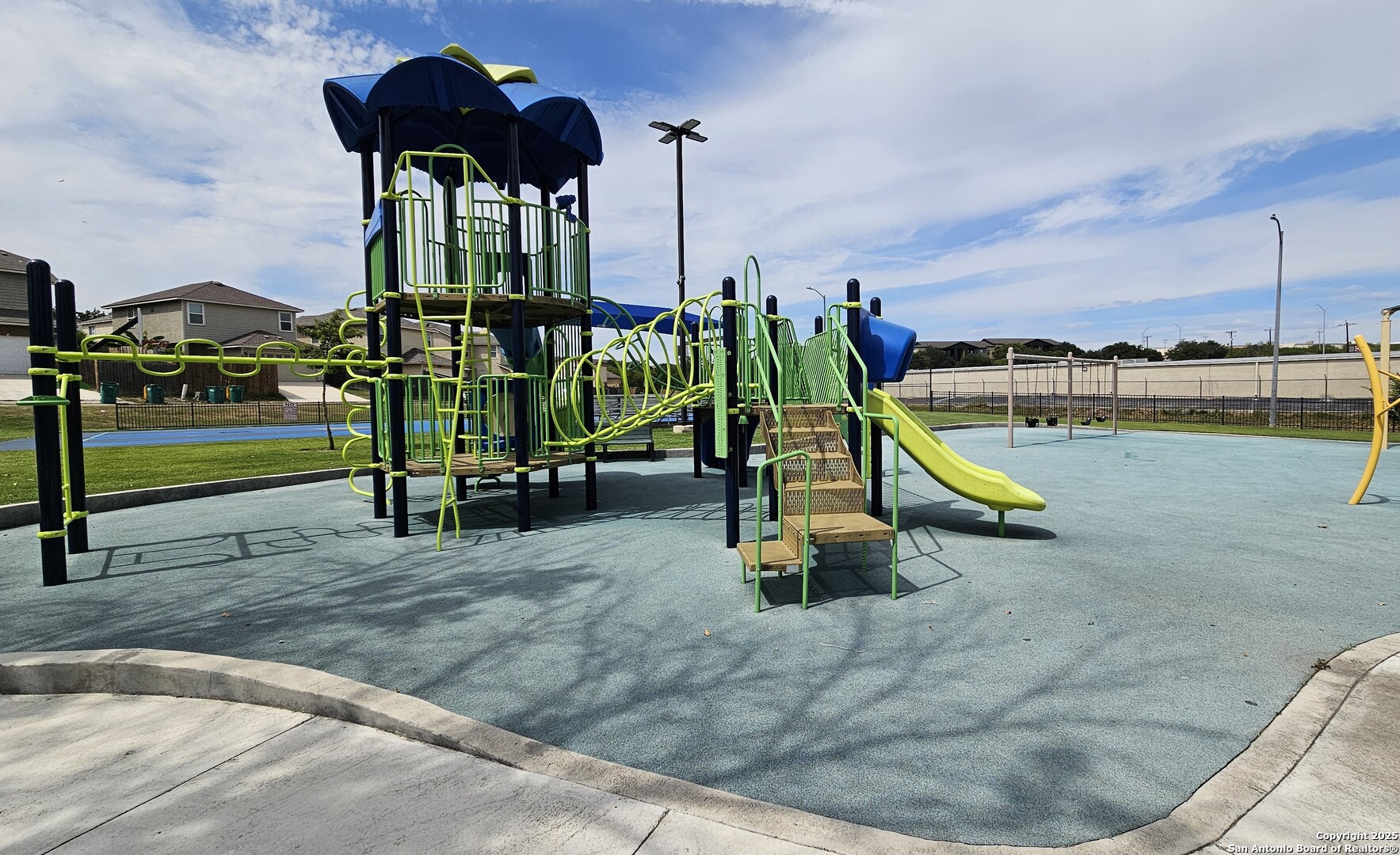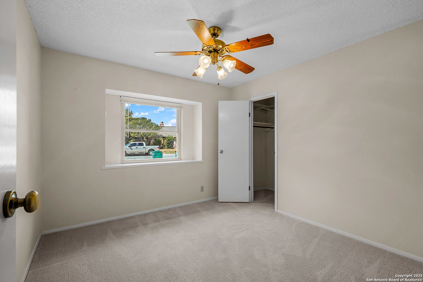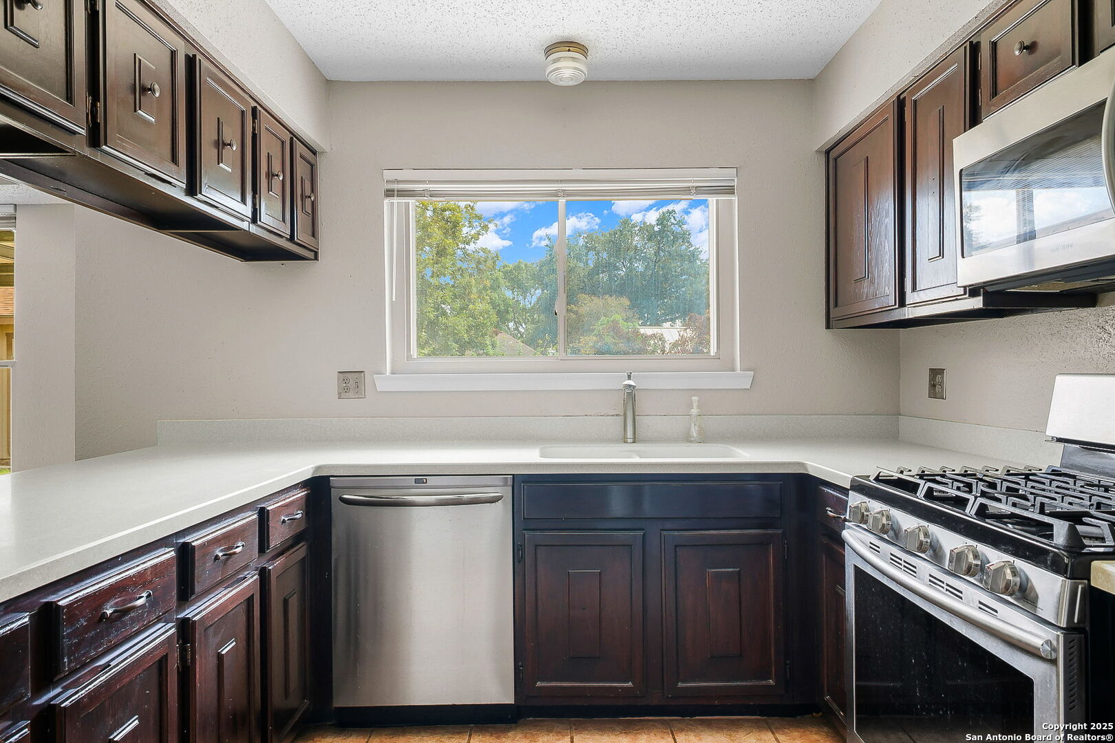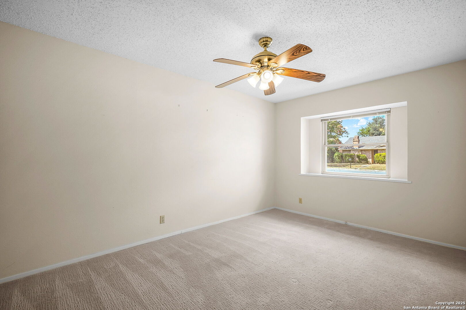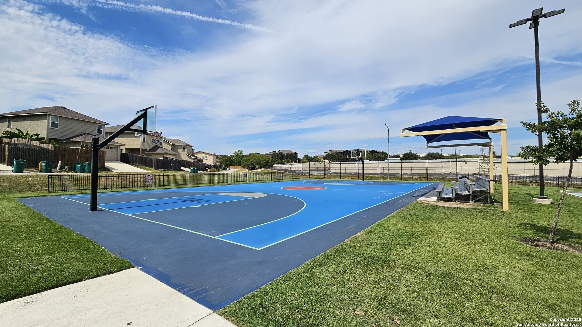 This inviting all-brick 3-bedroom, 2-bath home offers a perfect blend of comfort, character, and outdoor living! The living room features a beautiful see-through brick fireplace with glass doors and flows into the dining area with elegant custom built-in cabinetry. The remodeled kitchen showcases Corian countertops, a new sink, and refinished cabinets. Enjoy durable ceramic tile flooring throughout the common areas. The spacious primary suite includes a private flex room ideal for a nursery, home office, or oversized closet. Step outside to your backyard retreat featuring an in-ground pool, covered patio, fire pit, and a 200 SF insulated shed with AC - perfect for a workshop, studio, or storage. There's also space for a vegetable garden and herb beds, with extra hose bibs conveniently tied into the sprinkler system. A new gas water heater was installed in June 2025. Refrigerator, washer, gas dryer, and water filtration system are included with the sale. Pre-wired for an ADT security system. Located just down the street from Meadow Oaks Park, the area's largest park west of 1604, offering a playground, basketball court, pavilion with BBQ grill, and more. Schedule your private tour today and experience this beautifully maintained home for yourself!