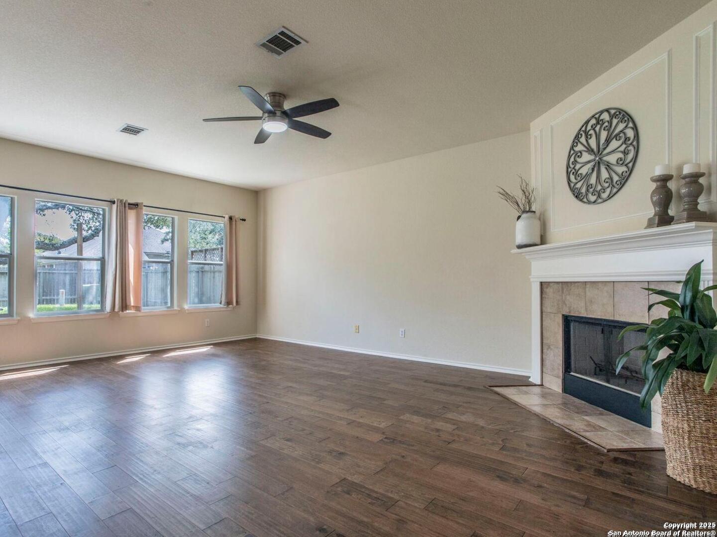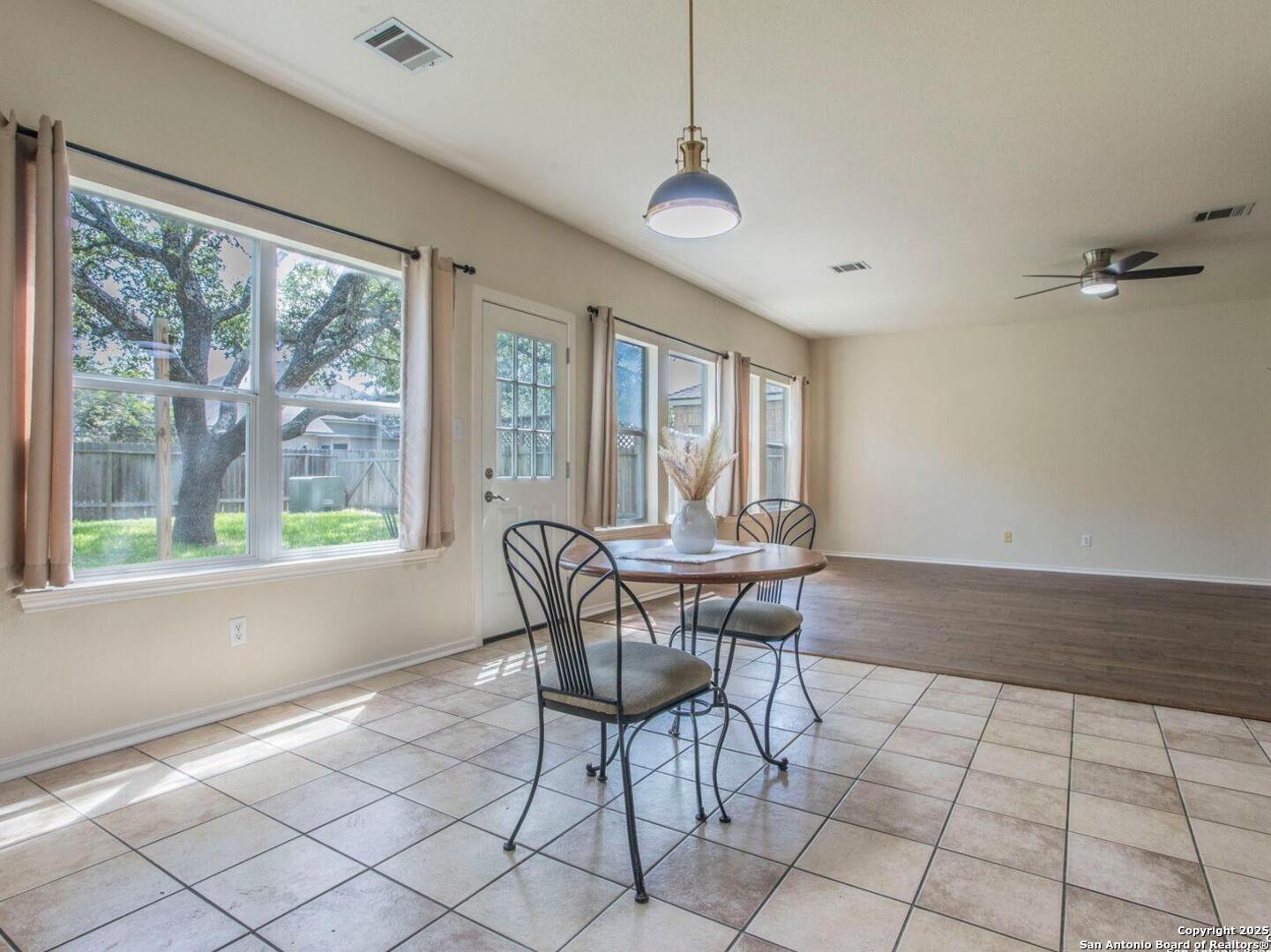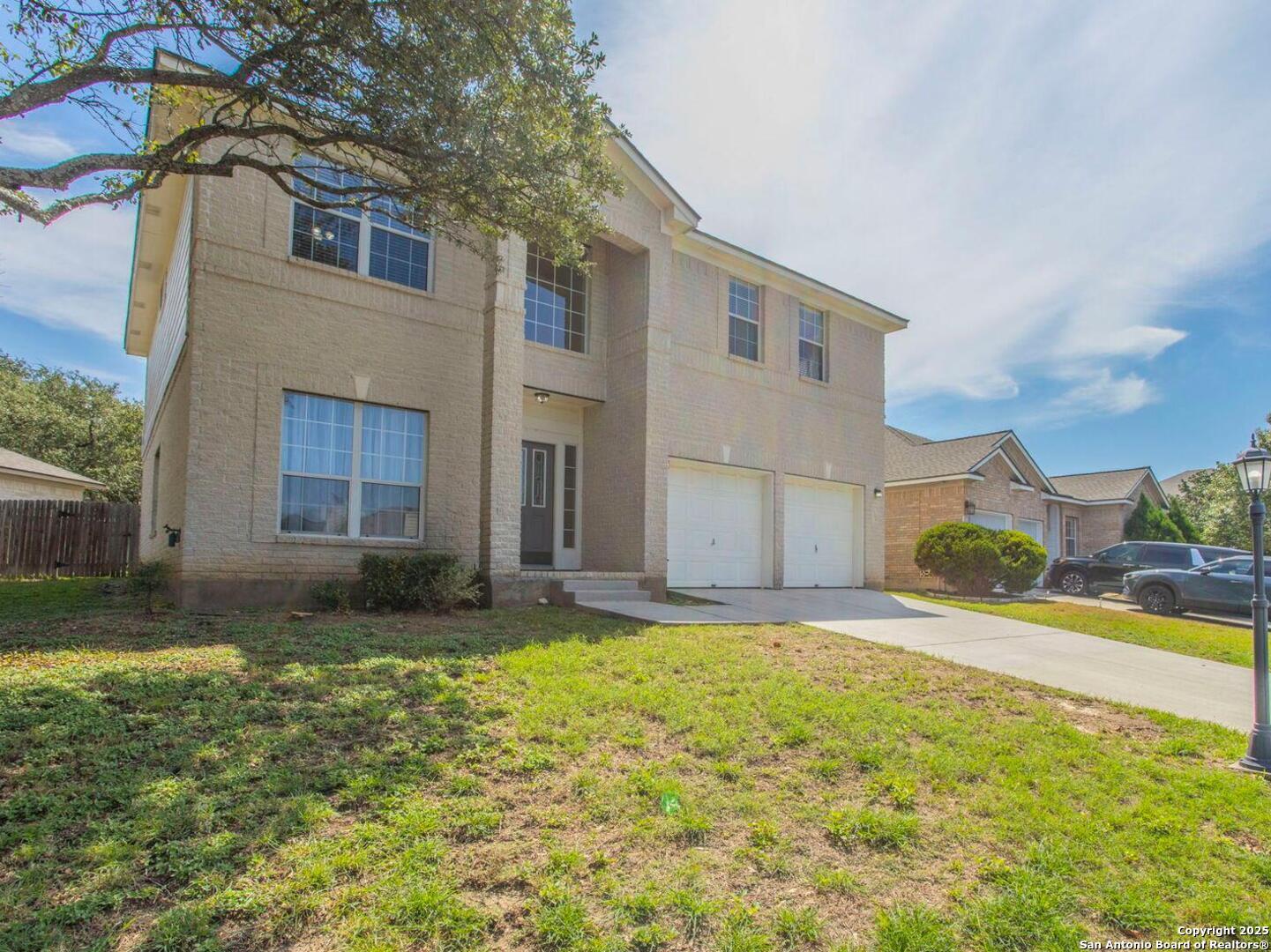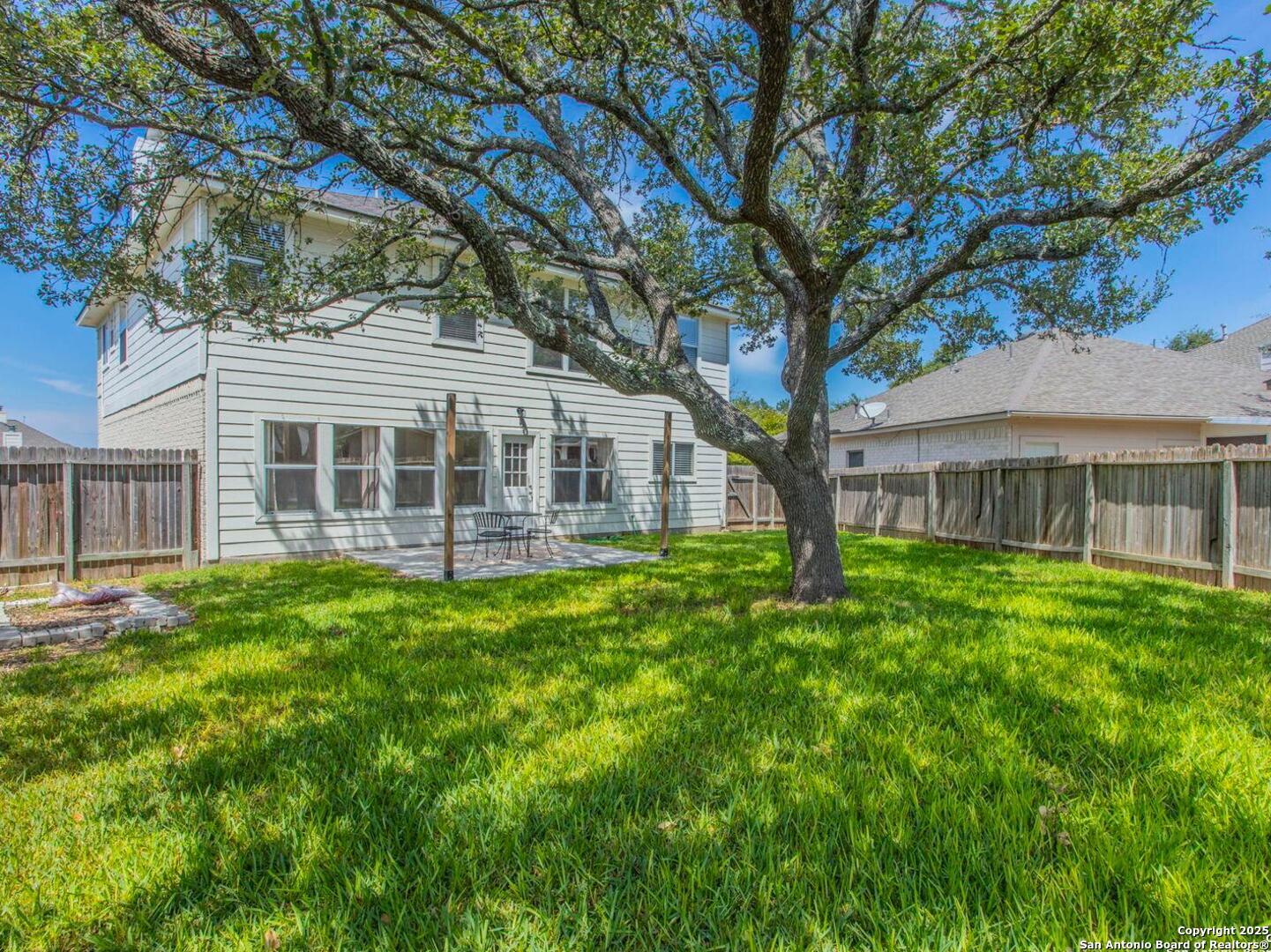 Welcome to the gated community of Mesa Vista in Stone Oak! Home has been freshly painted with new carpet throughout the upstairs living areas and stunning engineered wood & tile flooring in the primary lower level living spaces. This spacious two-story home includes 3 bedrooms, 2.5 bathrooms, 2 living areas, and 2 dining areas-ideal for both daily living and entertaining. The oversized primary suite includes a sitting/office area, a huge walk-in closet, and a well-appointed bath with dual vanities, a garden tub, and a separate shower. Two car garage, dual AC units, with open floor plan and kitchen leading into family room with wood burning fireplace. Mature trees in large backyard. Conveniently located next to Lopez Middle School and across from Hardy Oak Elementary, with shopping, dining, and major thoroughfares just minutes away.