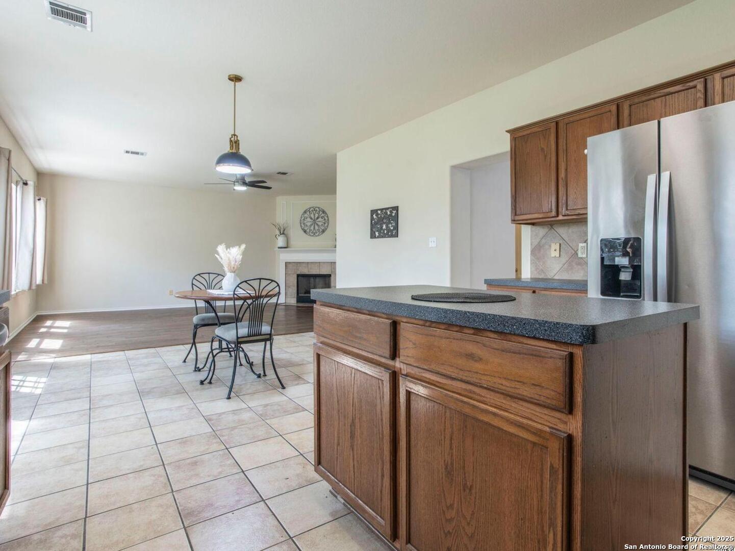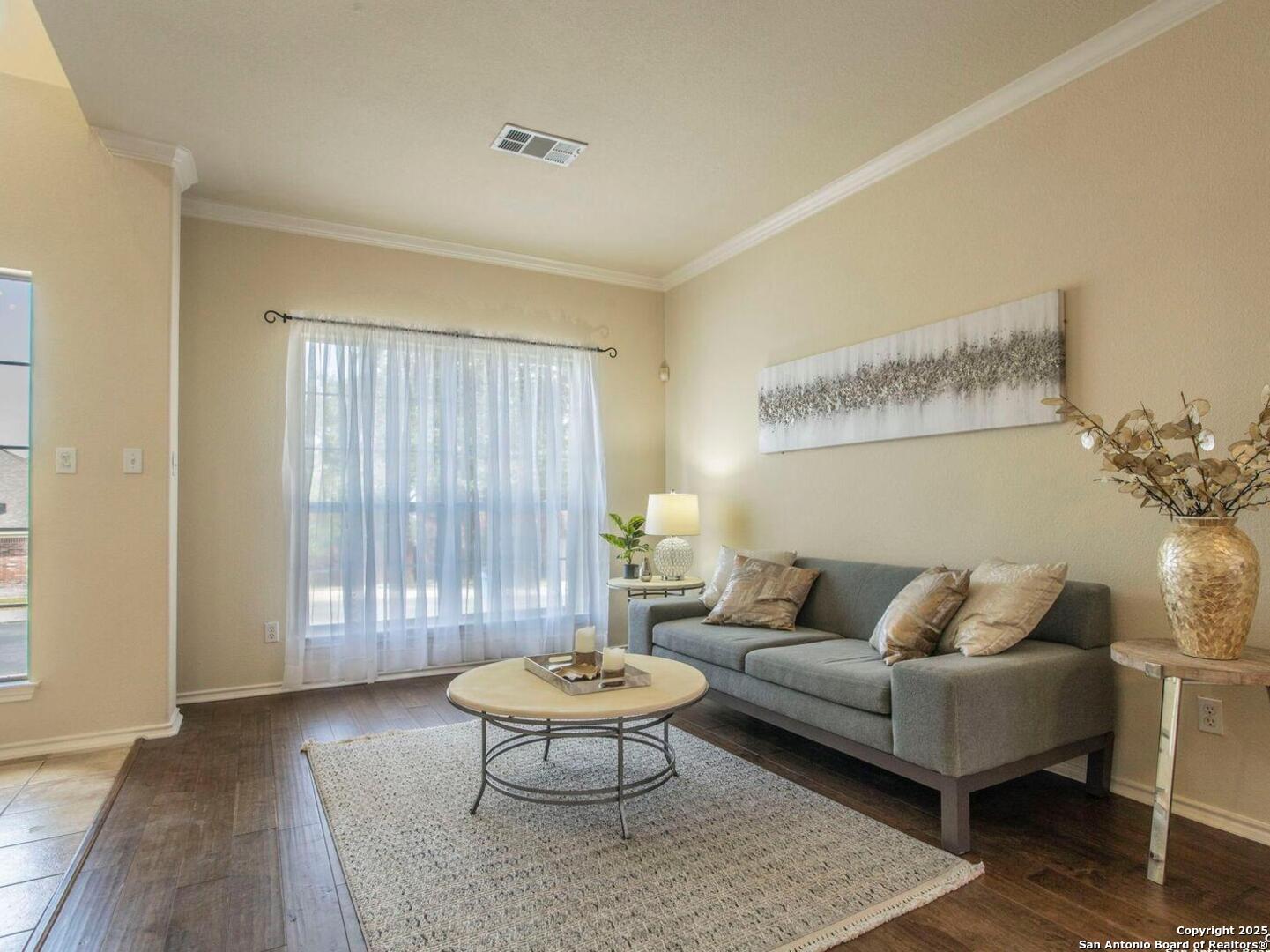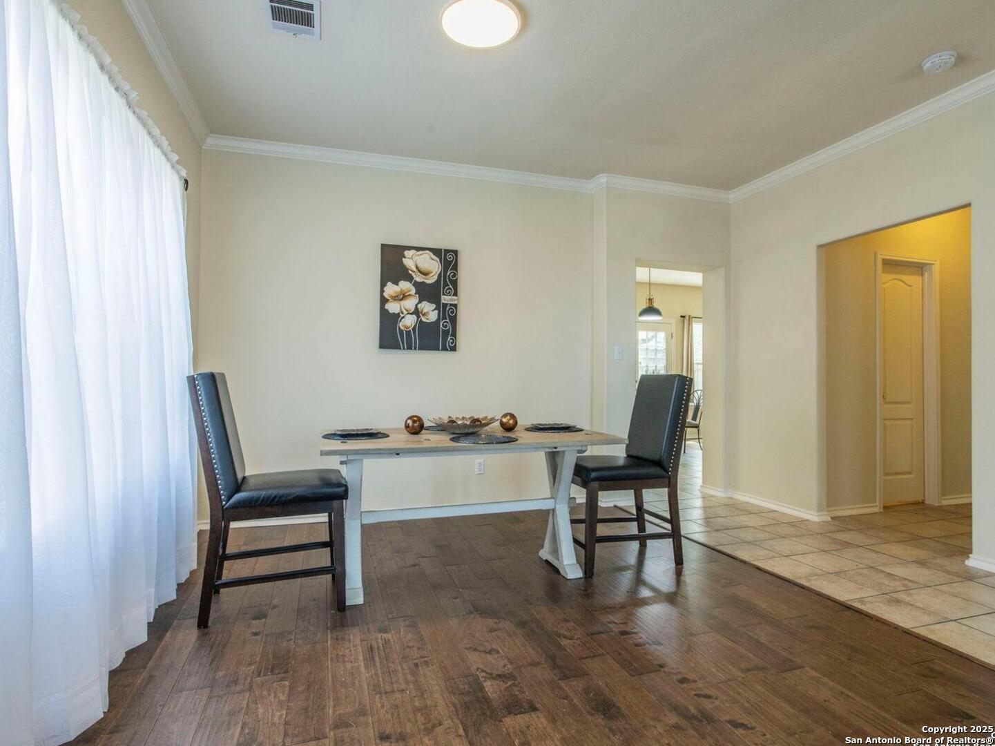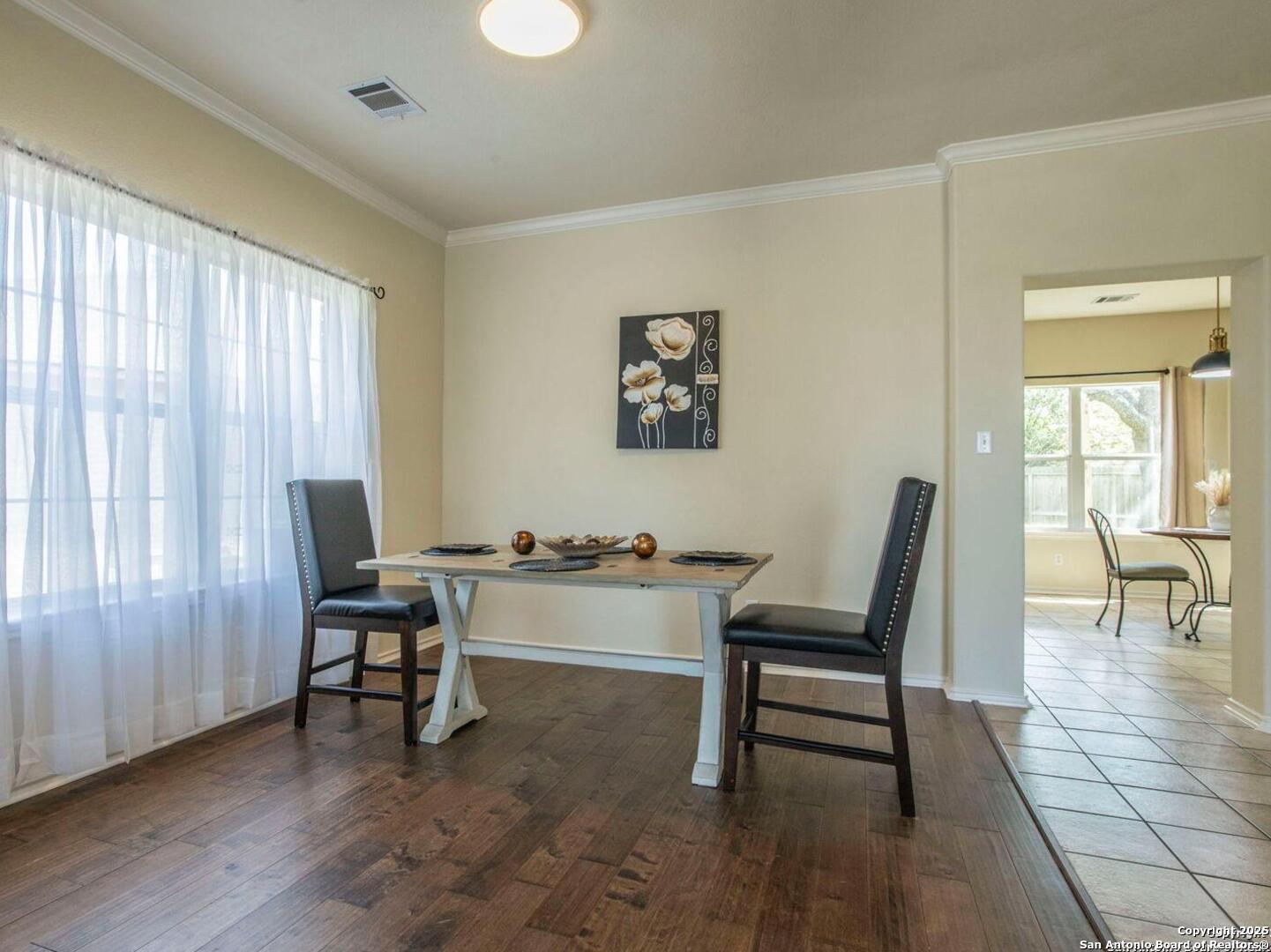 Welcome to the gated community of Mesa Vista in Stone Oak! Home has been freshly painted with new carpet throughout the upstairs living areas and stunning engineered wood & tile flooring in the primary lower level living spaces. This spacious two-story home includes 3 bedrooms, 2.5 bathrooms, 2 living areas, and 2 dining areas-ideal for both daily living and entertaining. The oversized primary suite includes a sitting/office area, a huge walk-in closet, and a well-appointed bath with dual vanities, a garden tub, and a separate shower. Two car garage, dual AC units, with open floor plan and kitchen leading into family room with wood burning fireplace. Mature trees in large backyard. Conveniently located next to Lopez Middle School and across from Hardy Oak Elementary, with shopping, dining, and major thoroughfares just minutes away.