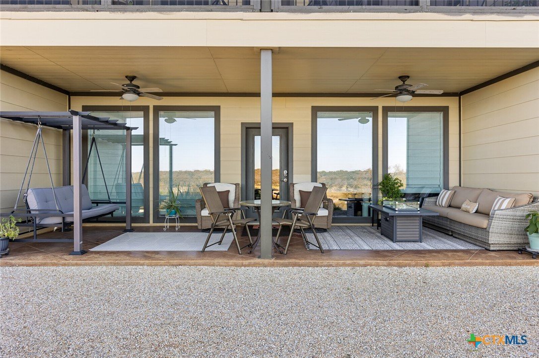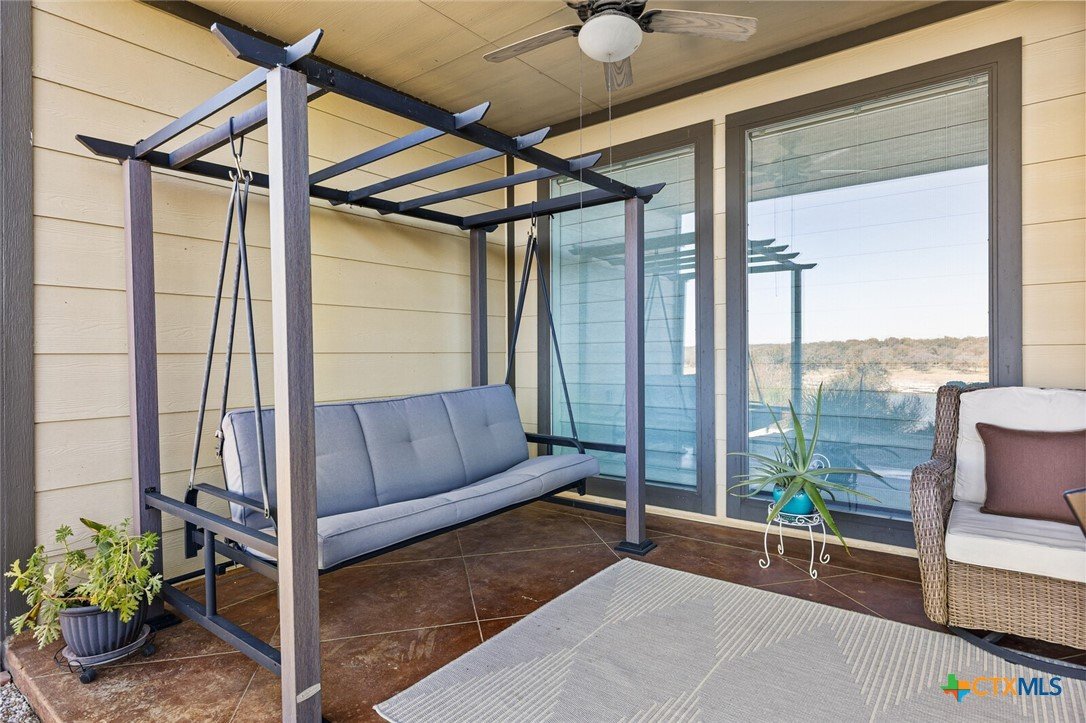 WELCOME TO EFFORTLESS LAKESIDE LIVING IN THIS BEAUTIFULLY APPOINTED FIRST-FLOOR 3 BED, 2 BATH CONDO ~ AN IDEAL SECOND-HOME RETREAT OR DOWNSIZING DREAM! Step inside to discover a bright, open layout with gorgeous lake views from both main living areas and the spacious primary suite. The kitchen features granite countertops, extensive custom cabinetry, and a seamless flow into the living and dining spaces, all oriented to capture the tranquil water backdrop. The large primary bedroom offers a direct view to the lake and opens to a well-designed en-suite bath complete with double vanities, a jetted tub, separate shower, and private toilet area. Two additional bedrooms provide excellent flexibility for guests, a home office, or hobby space, and both enjoy easy access to the beautifully updated guest bath with a step-in shower. Outdoor living is the true gem of this home: a wide, deep covered porch provides multiple zones for lounging and dining while overlooking manicured grounds filled with native plants and peaceful lake views. Whether hosting friends or enjoying a quiet morning coffee, this space becomes an extension of your living area. Residents also enjoy exclusive access to a privately shared outdoor pool and entertainment pavilion featuring an outdoor kitchen, shaded dining under an expansive pergola, and thoughtfully maintained landscaping that offers both beauty and privacy—an amenity impeccably cared for by the HOA. Combining comfort, style, and a serene lakeside setting, this condo delivers the ultimate low-maintenance lifestyle. Just move in, unwind, and enjoy.
