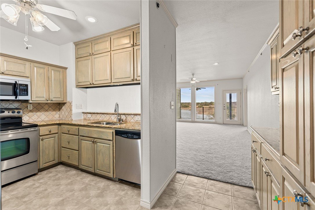 ENJOY EASY LAKESIDE LIVING IN THIS WELL CARED FOR FIRST FLOOR CONDOMINIUM FEATURING 3 BEDROOMS & 2 FULL BATHS - IDEAL AS A SECOND HOME, WEEKEND RETREAT, OR COMFORTABLE DOWNSIZING OPTION! The open-concept layout is filled with natural light and offers peaceful lake views from the main living areas and the primary suite. The kitchen includes granite countertops, ample custom cabinetry, and flows effortlessly into the living and dining spaces, all oriented toward the scenic backdrop of Lake Belton. The primary bedroom captures tranquil water views and includes an en-suite bath with dual vanities, a large walk-in shower, and a private toilet area. Two additional bedrooms provide flexibility for guests, a home office, or hobby space, with convenient access to the secondary bath. A spacious covered patio extends the living area outdoors, offering room for both relaxing and dining while overlooking landscaped grounds and lake views. Community amenities include a privately shared pool and pavilion with an outdoor kitchen, shaded seating beneath a pergola, and thoughtfully maintained common areas, all managed by the HOA. This condo offers a comfortable, low-maintenance lifestyle in a serene lakeside setting—ready to enjoy and make your own.