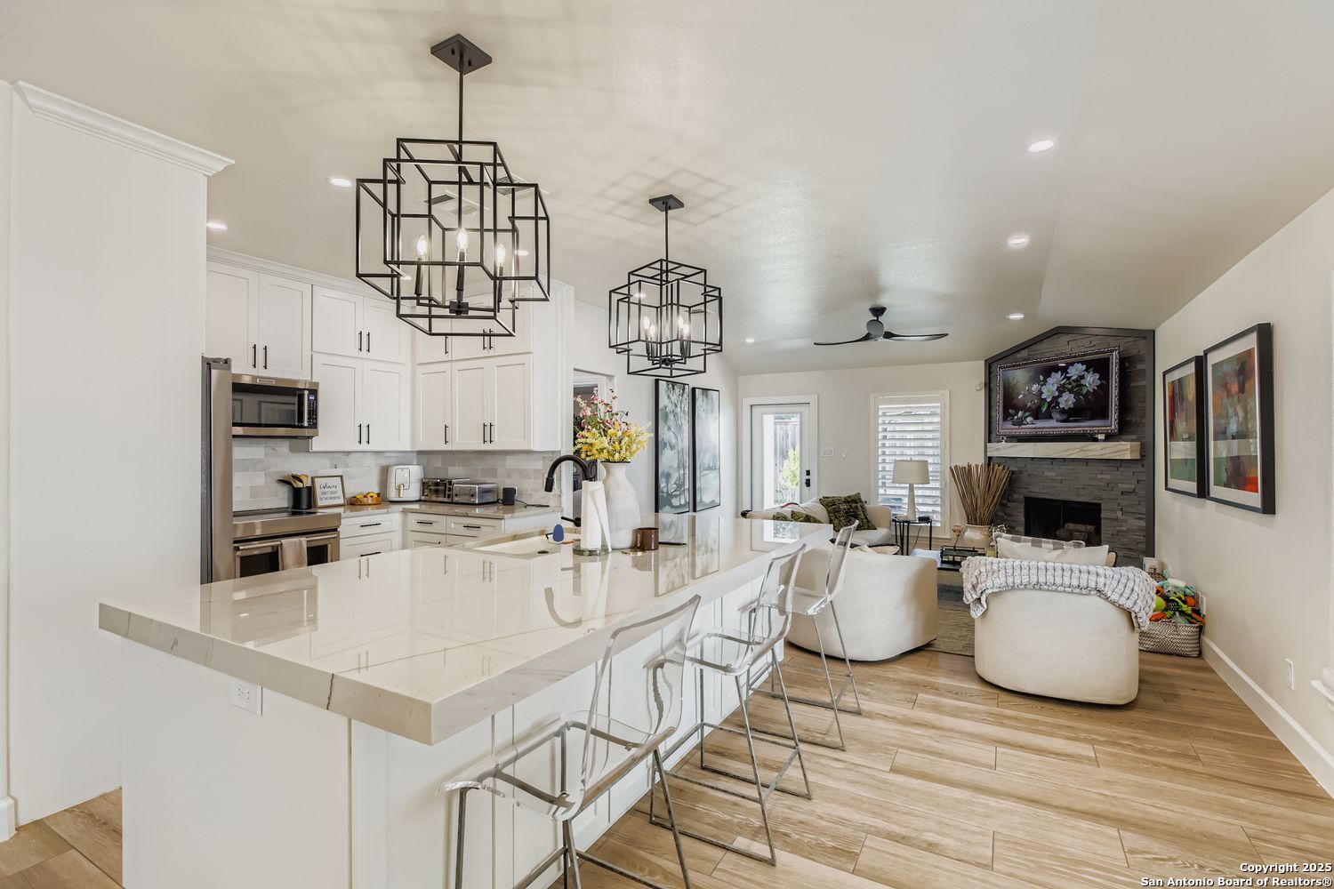 Open House 9/6 11-2...Completely renovated single-story home featuring 3 bedrooms and 2 bathrooms, located in a highly desirable gated community with top-rated schools. This open-concept floor plan offers just under 1,900 square feet of beautifully designed living space, perfect for modern living and entertaining. The chef's kitchen boasts top-of-the-line appliances, classic finishes, and a spacious walk-in butler's pantry. A cozy fireplace anchors the living area, while the versatile layout of the common spaces allows for multiple configurations to suit your lifestyle. The spacious primary suite is thoughtfully separated from the secondary bedrooms, offering added privacy. It features a luxurious en suite bathroom with abundant storage and a large walk-in closet. This property combines comfort, style, and convenience-making it a must-see for discerning buyers.