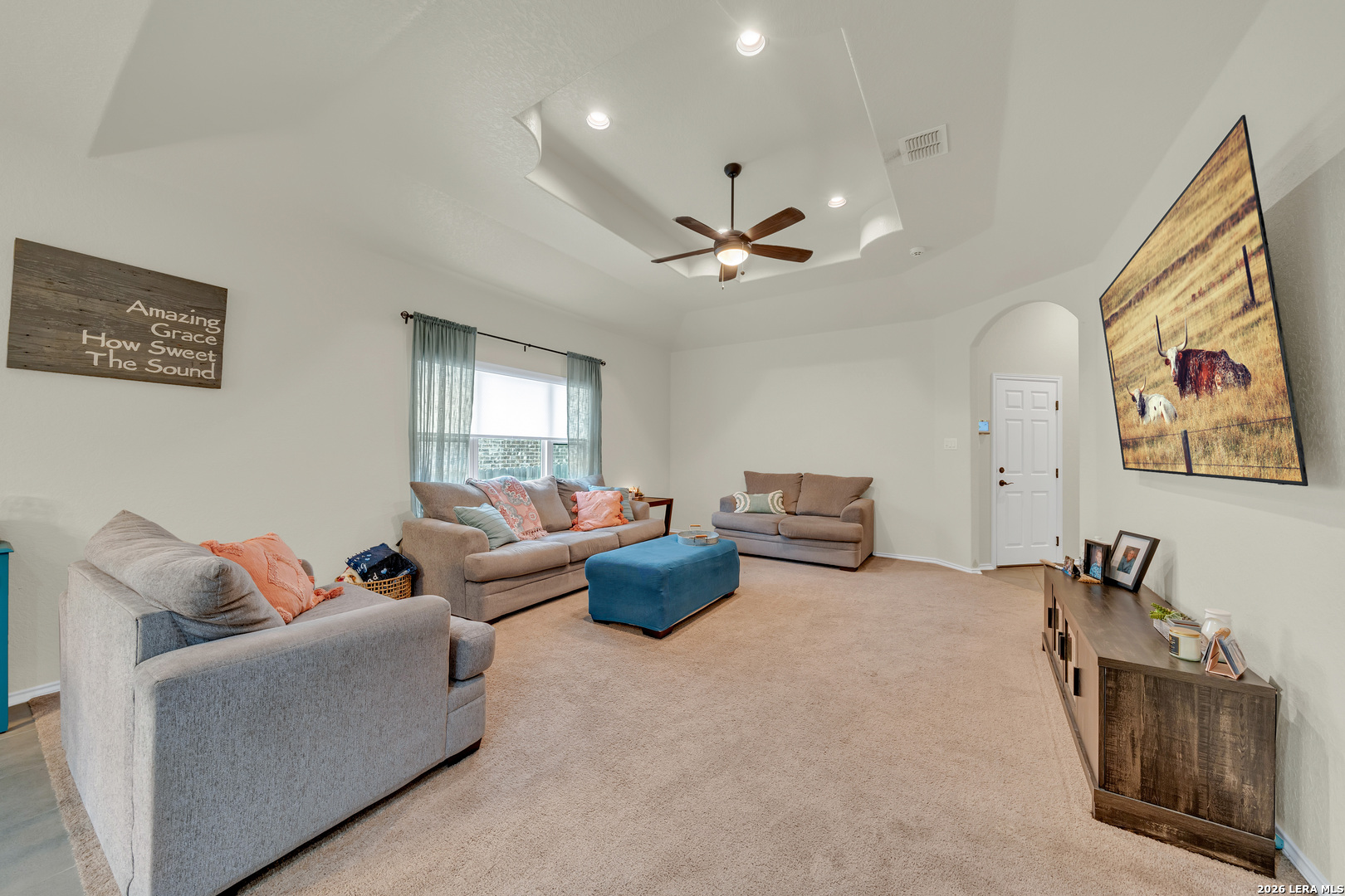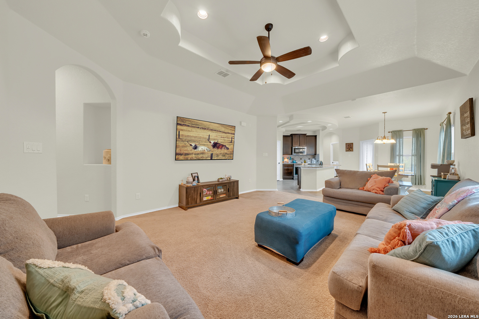 Room for Everyone in Dove Creek! This spacious 3-bedroom, 2-bath, 2-car garage home in the welcoming Dove Creek subdivision offers over 1,600 square feet of well-designed living space on a great-sized lot. With a flexible floor plan, quality finishes, and a location close to everything you need, this home is ready to impress. The open floor plan creates a natural connection between the kitchen, with its granite countertops, and the living, and dining spaces, with easy sight lines that make the home feel bright, airy, and perfectly suited for both everyday life and entertaining. The primary suite is thoughtfully positioned apart from the secondary bedrooms, offering privacy and a peaceful escape at the end of the day. The ensuite bathroom adds the comfort and convenience that make the primary suite truly feel like a retreat. additional bedrooms provide plenty of flexibility for family, guests, a home office, or whatever your household demands. With 2 bathrooms, morning routines are a breeze no matter how full the house gets. Smart features include: Ecobee thermostat, Skybell doorbell, Guardia security system. Upgraded luxury appliances, custom fit roller shades (complete blackout in primary bedroom) and a low maintenance yard for this center home on the cul de sac. Out back, the fenced yard offers a private outdoor space ready for weekend cookouts, playtime, or simply relaxing in your own corner of the world. The generous lot gives everyone room to spread out and enjoy. Conveniently located close to area shopping, dining, and everyday essentials, Dove Creek puts everything within easy reach. Additionally, it is close off of 1604 on the green belt side where the home has access to community pool! Also, the Water softener conveys with home! The owner was deployed 5 of the 6 years while being in this home, so most appliances have minimal use. This one is move-in ready and waiting for its next chapter - schedule your showing today.