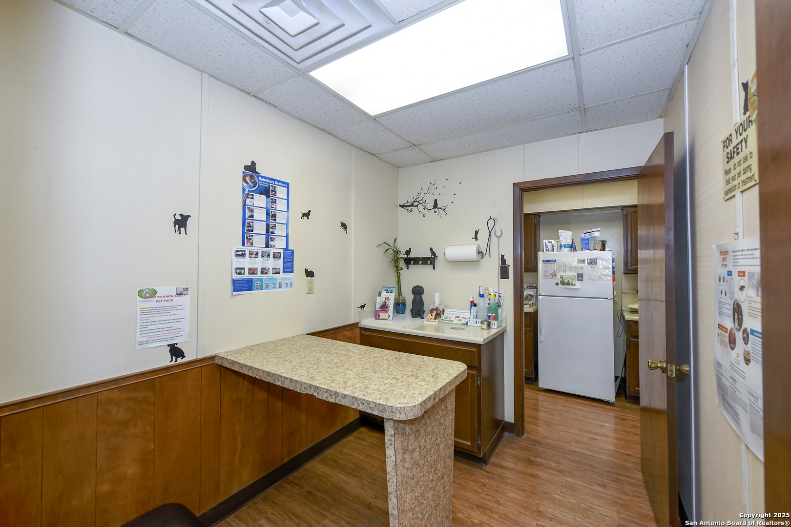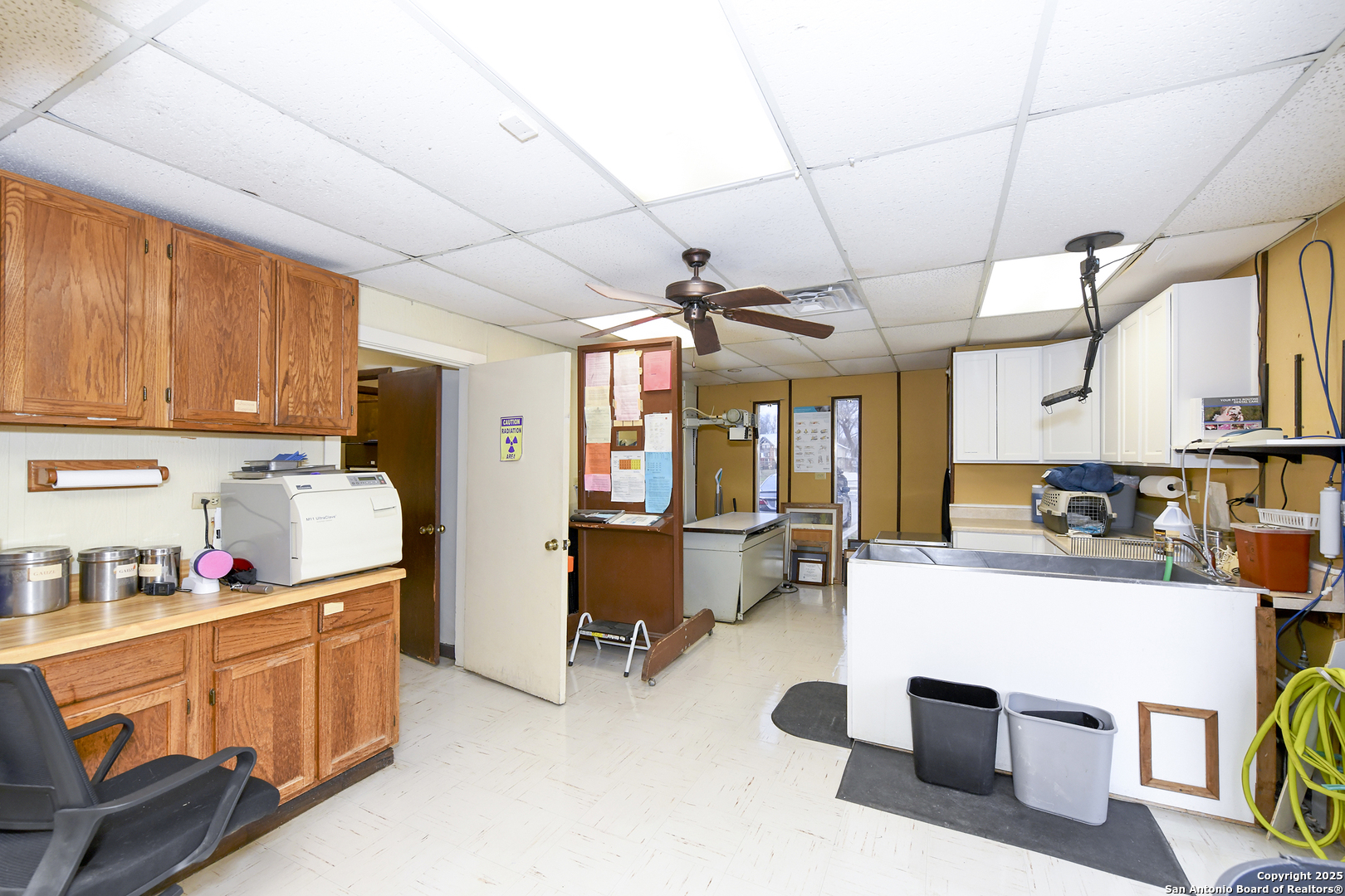 Stand alone building off a busy street that has been a veterinarian office for over 50 years. Just recently closed. Building includes a patient waiting room with bathroom, front desk area, three examination rooms, kennel room with over 15 kennels, office area with full bathroom, kitchen area with washer/dryer/stove/sink/microwave. Also, operating & x-ray room, plus pet bathing area. All equipment/supplies go with sale if wanted. Parking lot with 16 parking slots. Seller has files with over 1,000 past clients that could be included in sale as well.