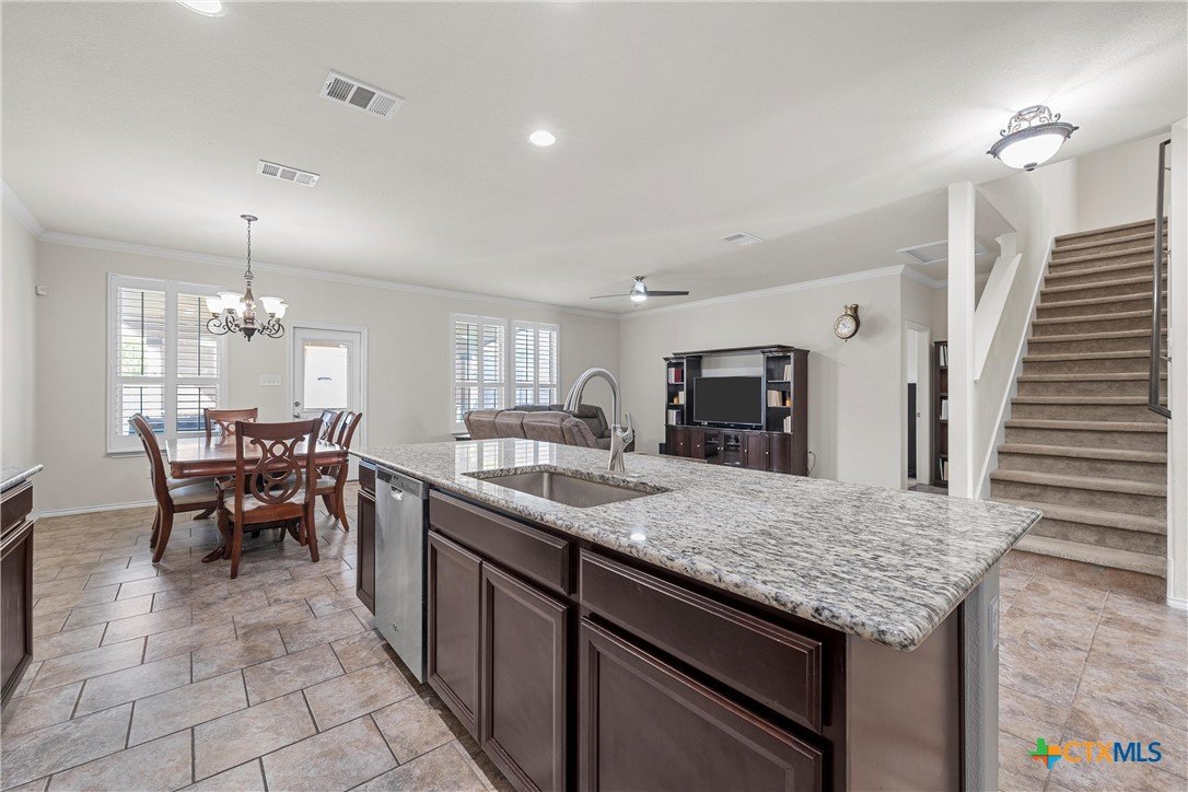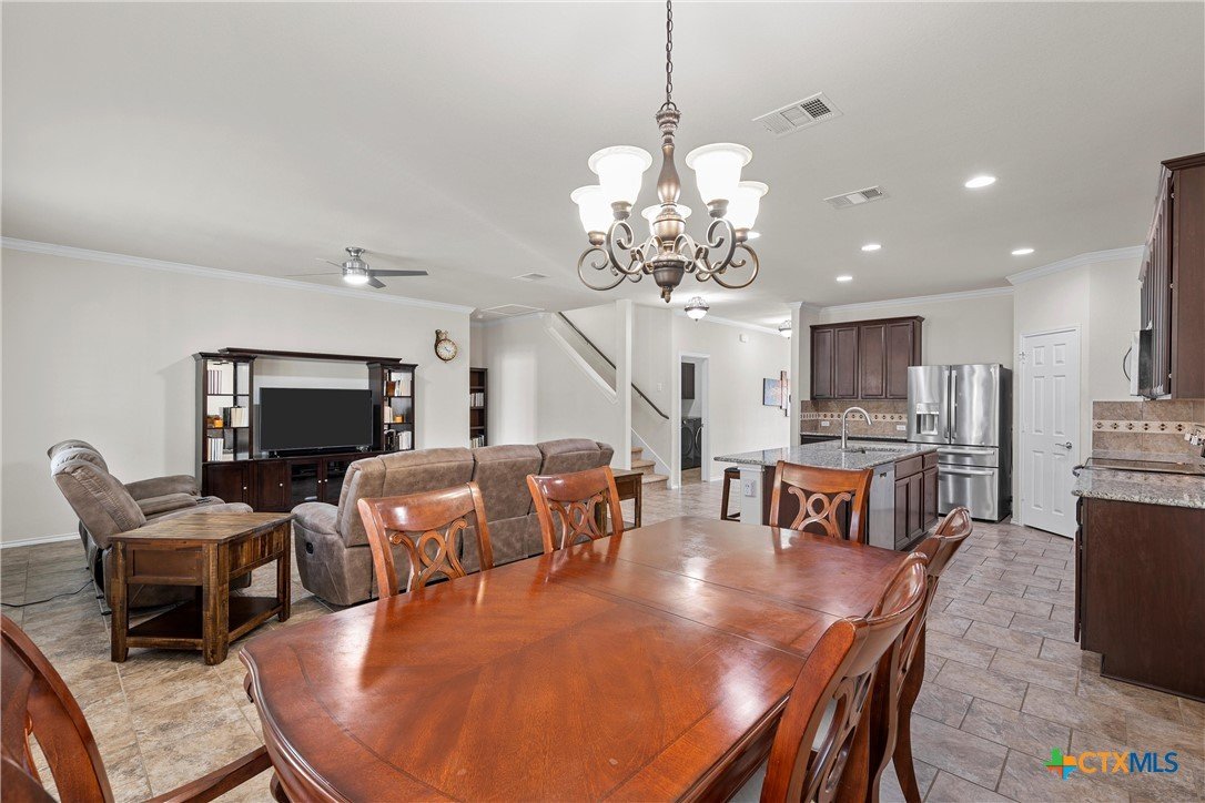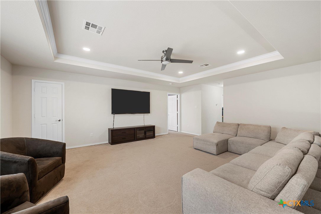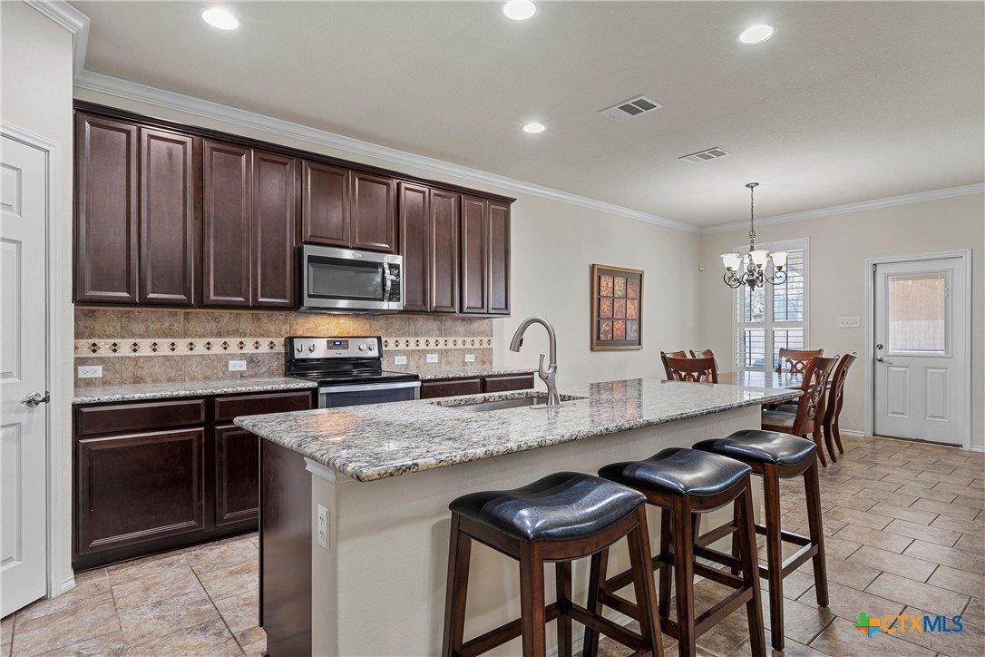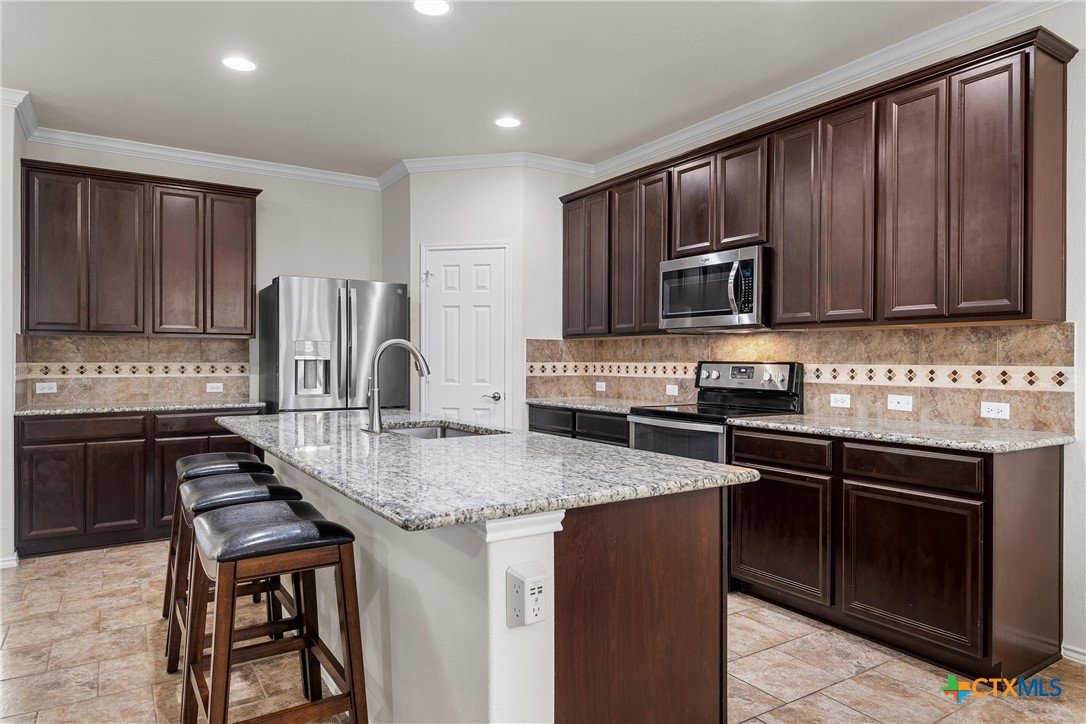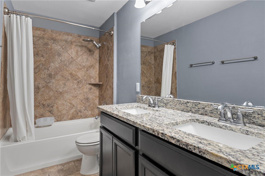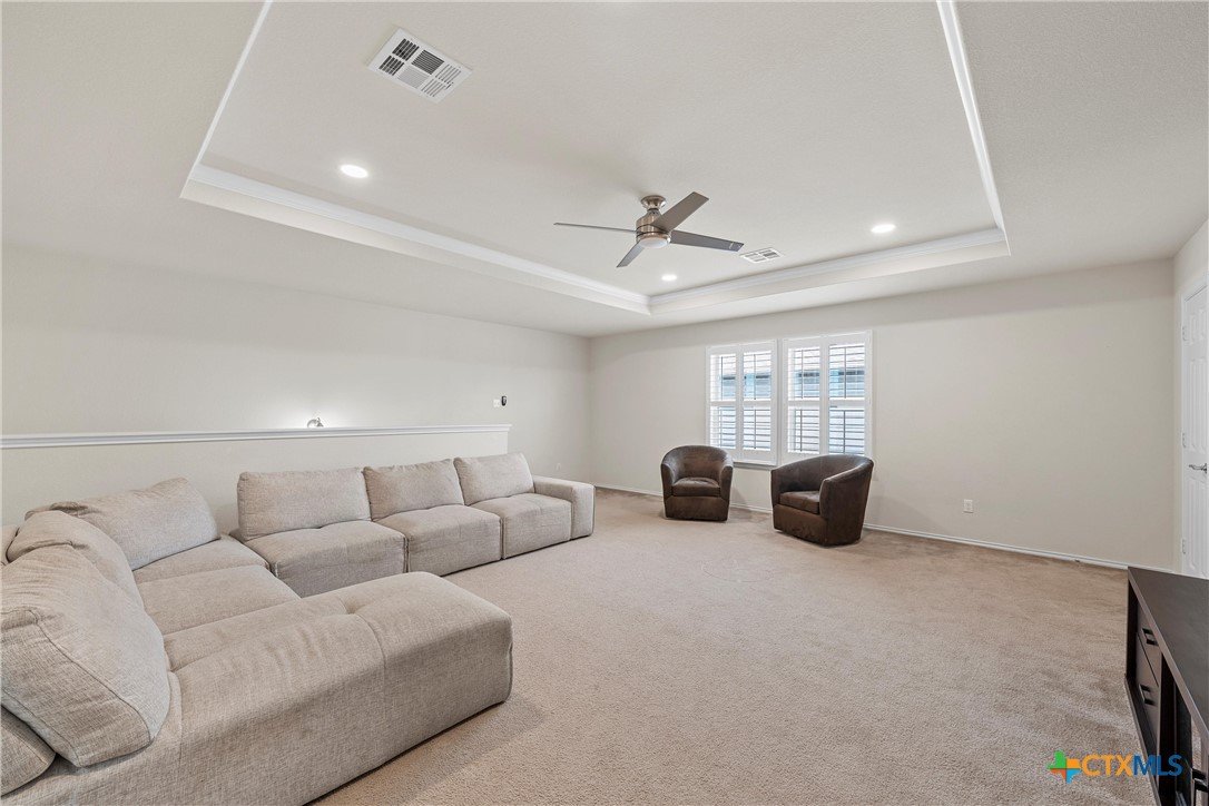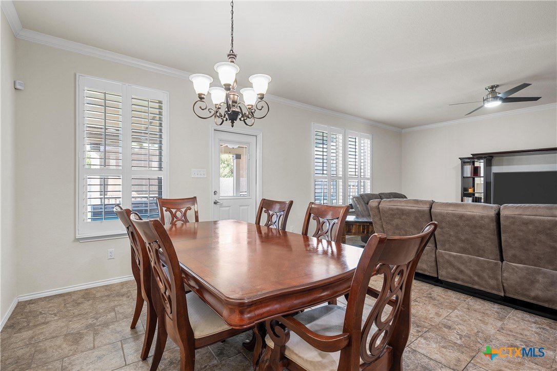 BIG buyer incentive! Seller is covering ALL closing costs plus offering a rate buy down. Buyers may qualify for a 5.25% fixed rate or a 1:0 buy down—4.25% the first year, then 5.25% fixed. Contact our preferred lender for full details and qualification. Welcome to this beautifully upgraded two-story home offering 4 bedrooms, 2.5 baths, and a dedicated office, perfectly blending comfort, functionality, and style. Inside, an elegant office with French doors creates an ideal work-from-home space. A hallway leads to a coat closet and a spacious half bath with a custom vanity. Nearby, the well-designed laundry room offers garage access, a single basin sink, custom vanity, and overhead cabinetry. The heart of the home is the open kitchen, dining, and living area—perfect for entertaining and everyday living. The kitchen features granite countertops, an oversized island for dining and gathering, a coffee bar, generous walk-in pantry, and all-electric appliances, including a refrigerator that conveys. Tile flooring flows throughout the main areas, and plantation shutters with a lifetime warranty help keep the home energy-efficient and comfortable. The main-level primary suite includes a dual vanity bath, stand-up shower, and a massive walk-in closet that wraps under the stairs for extra storage. Upstairs, a large loft with recessed lighting connects to three spacious bedrooms, each with walk-in closets, and a full bath with a dual vanity and tub/shower combo. Step outside to an extended covered patio with retractable sunshades, ideal for relaxing or hosting guests. The meticulously maintained lawn and three-sided stone exterior with lap siding add durability, charm, and curb appeal. Located a short walk from the community pool, park, and soccer pitch—and minutes from Belton ISD schools, Crossroads Park, and shopping and dining along West Adams—this home offers convenience, quality, and an exceptional location.