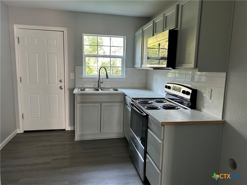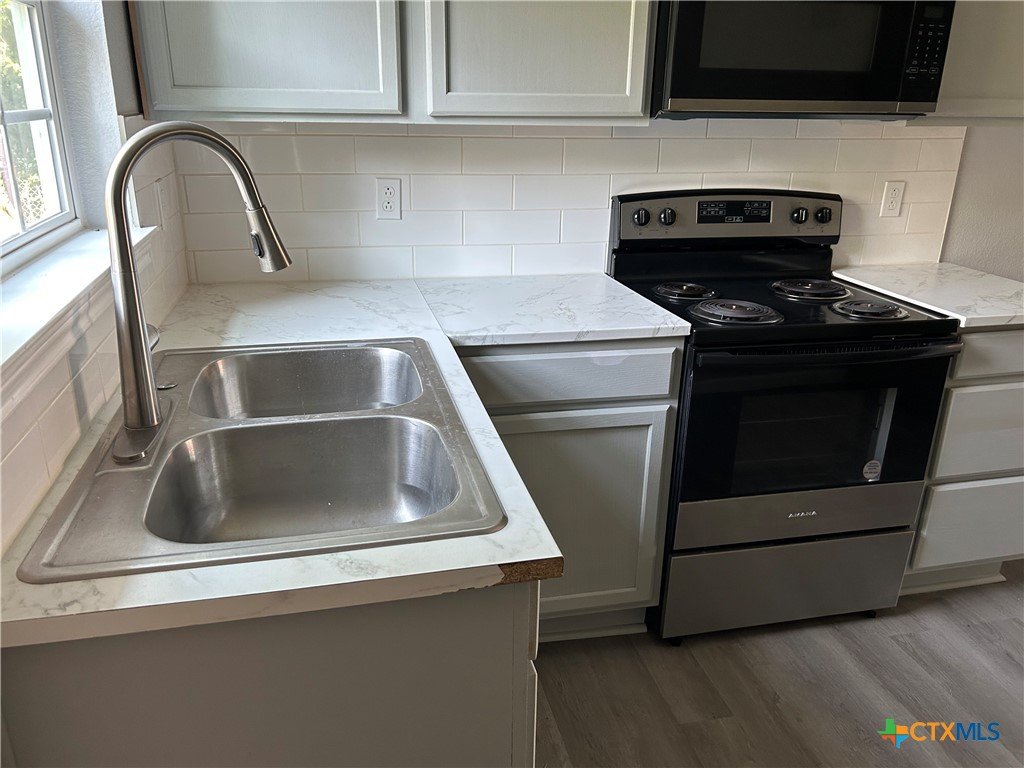 WALKING TRAIL AND PARK JUST BEHIND THE HOUSE. Perfect for retired couple or for small family. THIS IS A GEM OF AN INVESTMENT. Everything NEW! This very cute duplex has been renovated from slab to roof in 2023. New laminate flooring, fresh paint throughout, new wiring, plumbing, new appliances to include stacked washer and dryer connections. This new find also had a new roof put on in June 2025 and new gutters in Aug 2025. The whole building is fenced and each side has their own yard. So bring on the babies and the small pooch.