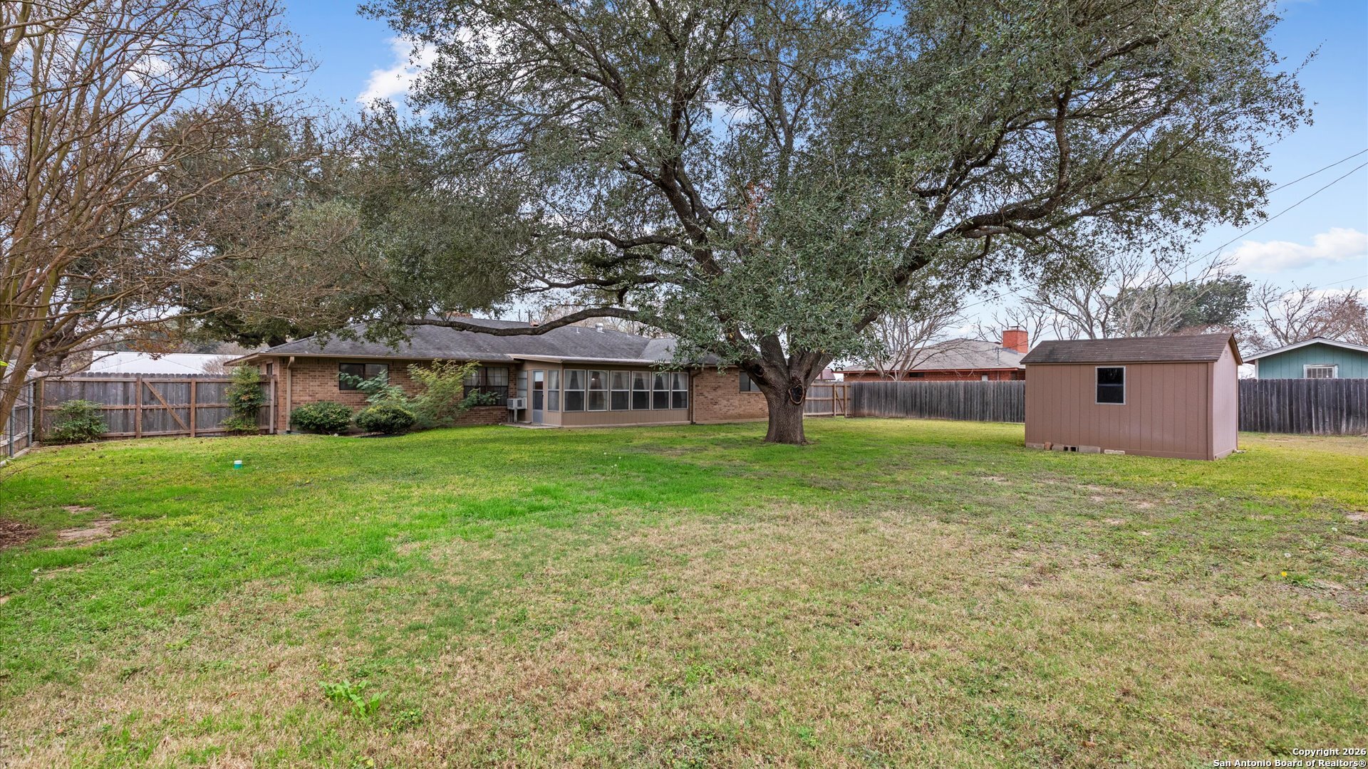 Welcome to this charming 3-bedroom, 2-full bath home nestled in a quiet, peaceful neighborhood with mature trees that create a serene setting. With no HOA, you'll enjoy the freedom to truly make this property your own. Inside, the inviting living room features a cozy fireplace, perfect for relaxing evenings. A bright sunroom offers additional living space to enjoy year-round-ideal for morning coffee, a home office, or a reading retreat. The home is a perfect canvas for your personal touches and creative vision. Step outside to a large backyard with plenty of room for entertaining, gardening, or future expansion. A convenient storage shed adds extra space for tools and outdoor equipment. If you're looking for a peaceful retreat with character, space, and endless potential, this home is ready to welcome you.