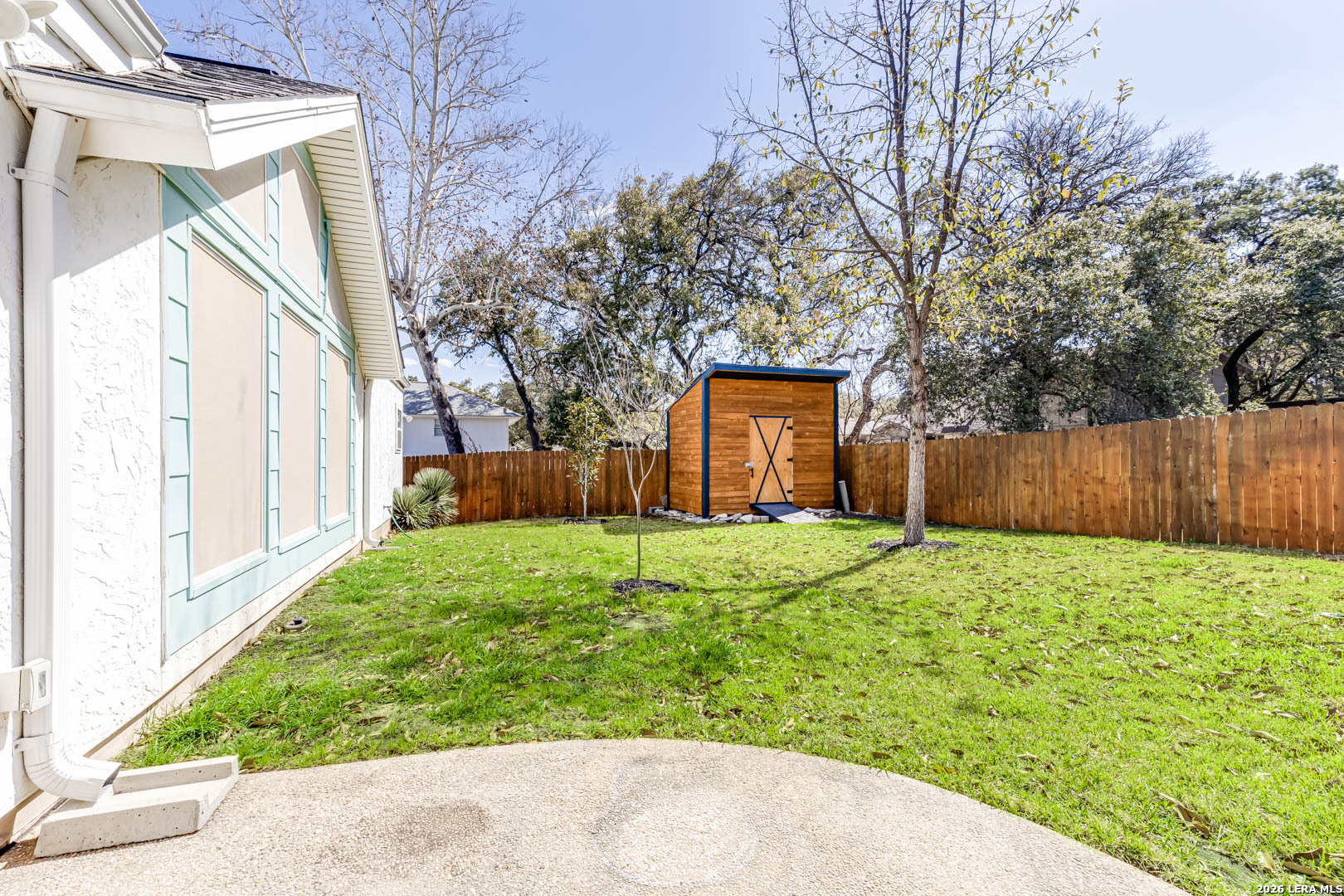 This exquisite 1 story hm is nestled in the exclusive Park Forest community & will take your breath away. Features inc: One of a kind private lot, Stunning curb appeal w Stucco exterior, 2 car garage, Lush landscape, Tons of Windows, New HVAC unit, New Interior doors & some New Windows, open floor plan, tile flooring & stained concrete in all traffic areas, dedicated dining area, HUGE family room with custom fireplace & Soaring ceilings, gourmet chefs kitchen with quartz counters, Stainless steel appliances, double ovens, Tons of cabinet and counter space and so much more! The luxury master suite is its own private sanctuary and adorns a zen ensuite with a walk-in shower. Don't miss the 2 beautiful secondary bedrooms with soaring ceilings. Walk out to your own private back yard paradise with covered majestic patio, huge shed overlooking a serene, private .21-acre lot! This home truly is remarkable and you must see it to appreciate all the details!
