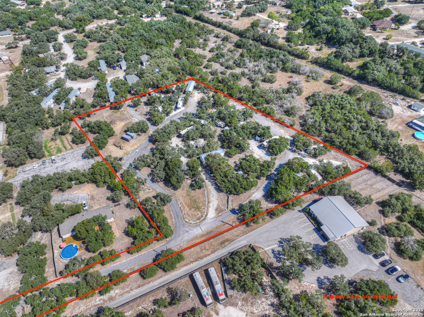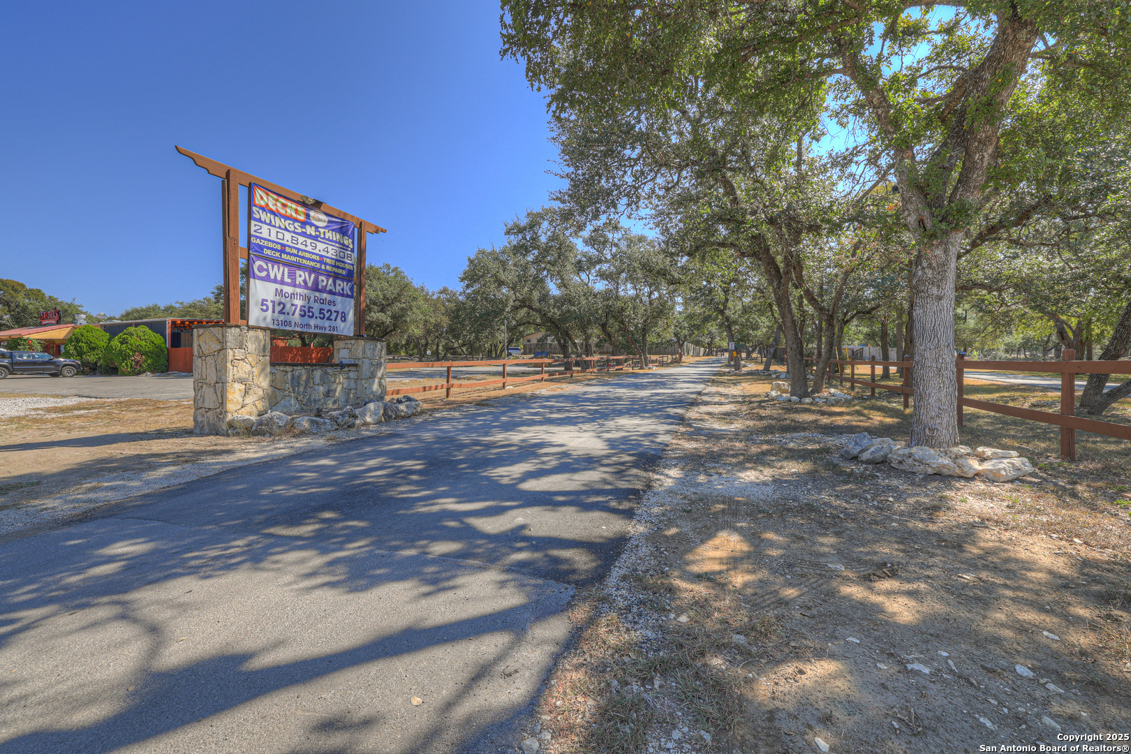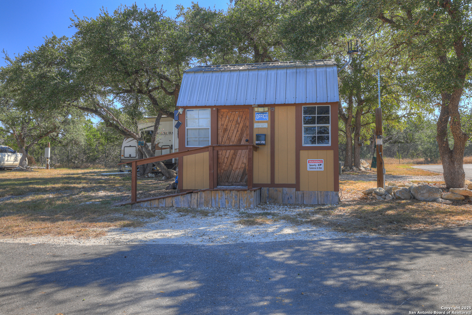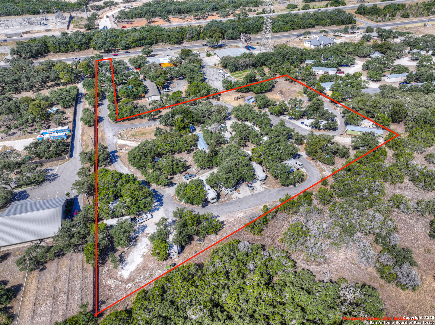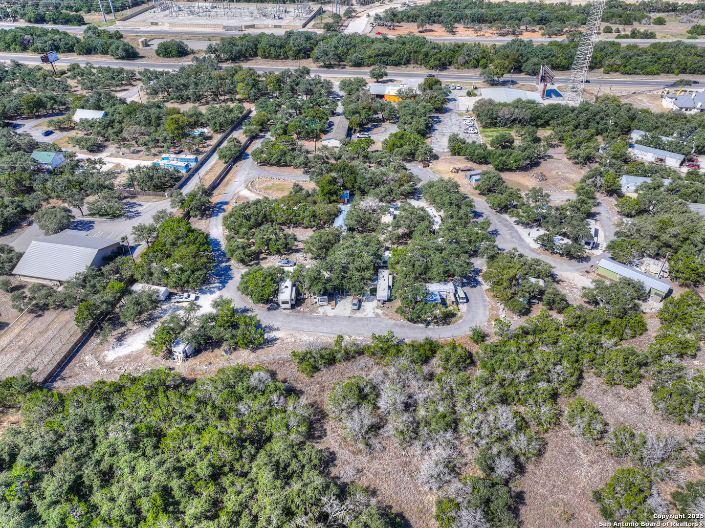 Income-Producing RV Property - Prime Location off Hwy 281 Between San Antonio and Canyon Lake Discover an exceptional investment opportunity with this income-producing property situated just off Highway 281 in the rapidly developing corridor between San Antonio and Canyon Lake. Nestled among mature oak trees on nearly 4 acres, this property features 20 long-term RV sites, each equipped with full hookups. Highlights include: 20 fully serviced long-term RV sites, Community dog park, On-site laundry facility, Equipment storage buildings, On-site office, Shaded setting with mature oak trees, Convenient access to Bulverde and Spring Branch. This well-maintained property offers income potential in a high-growth area, making it ideal for investors seeking a turn-key RV park or expansion opportunity.