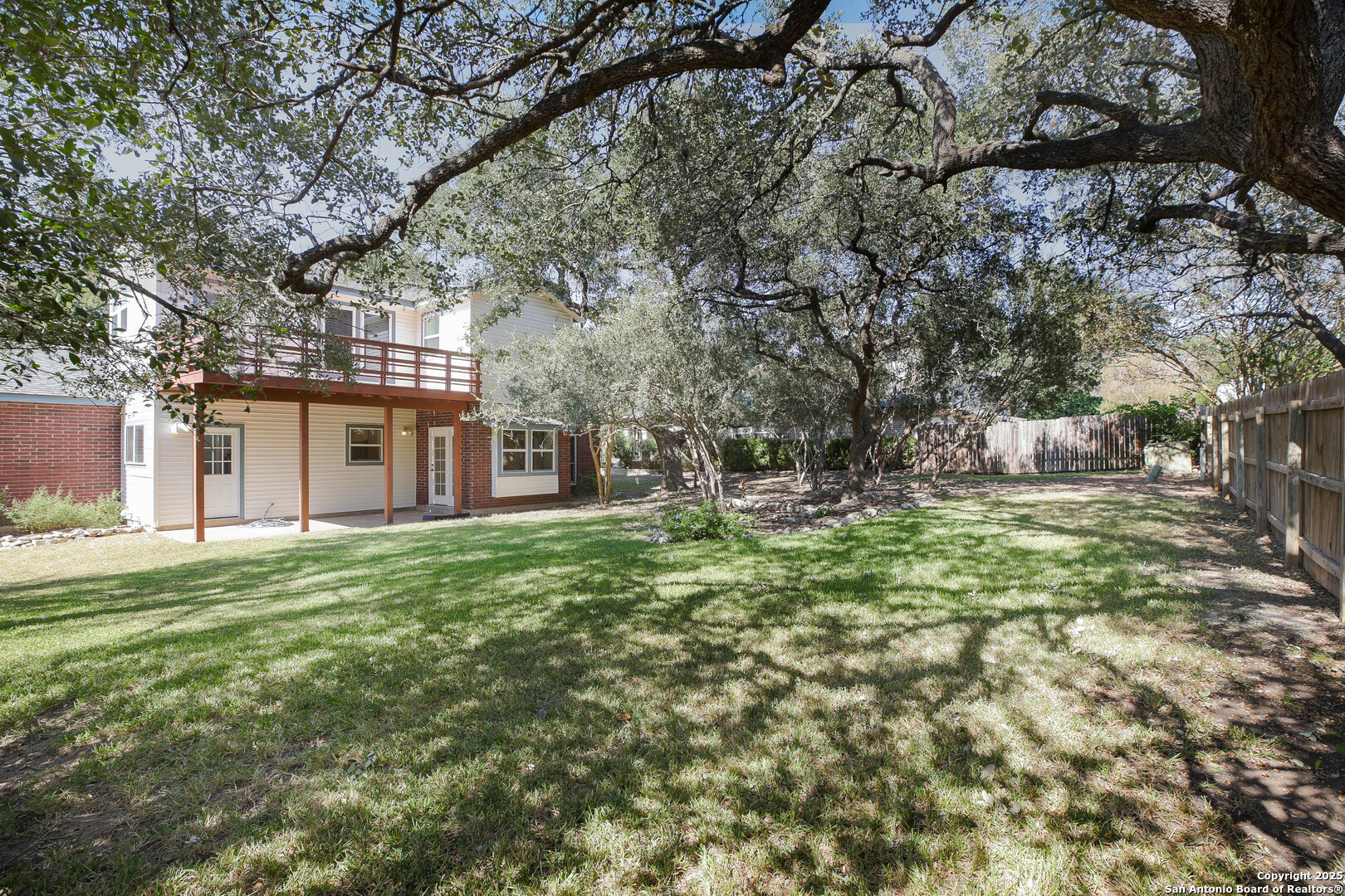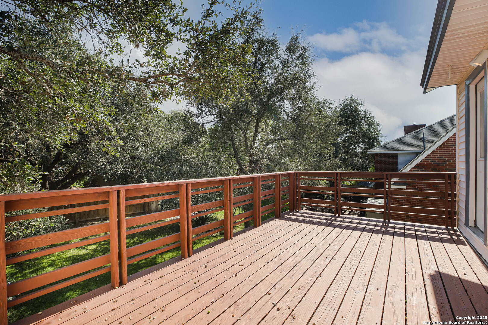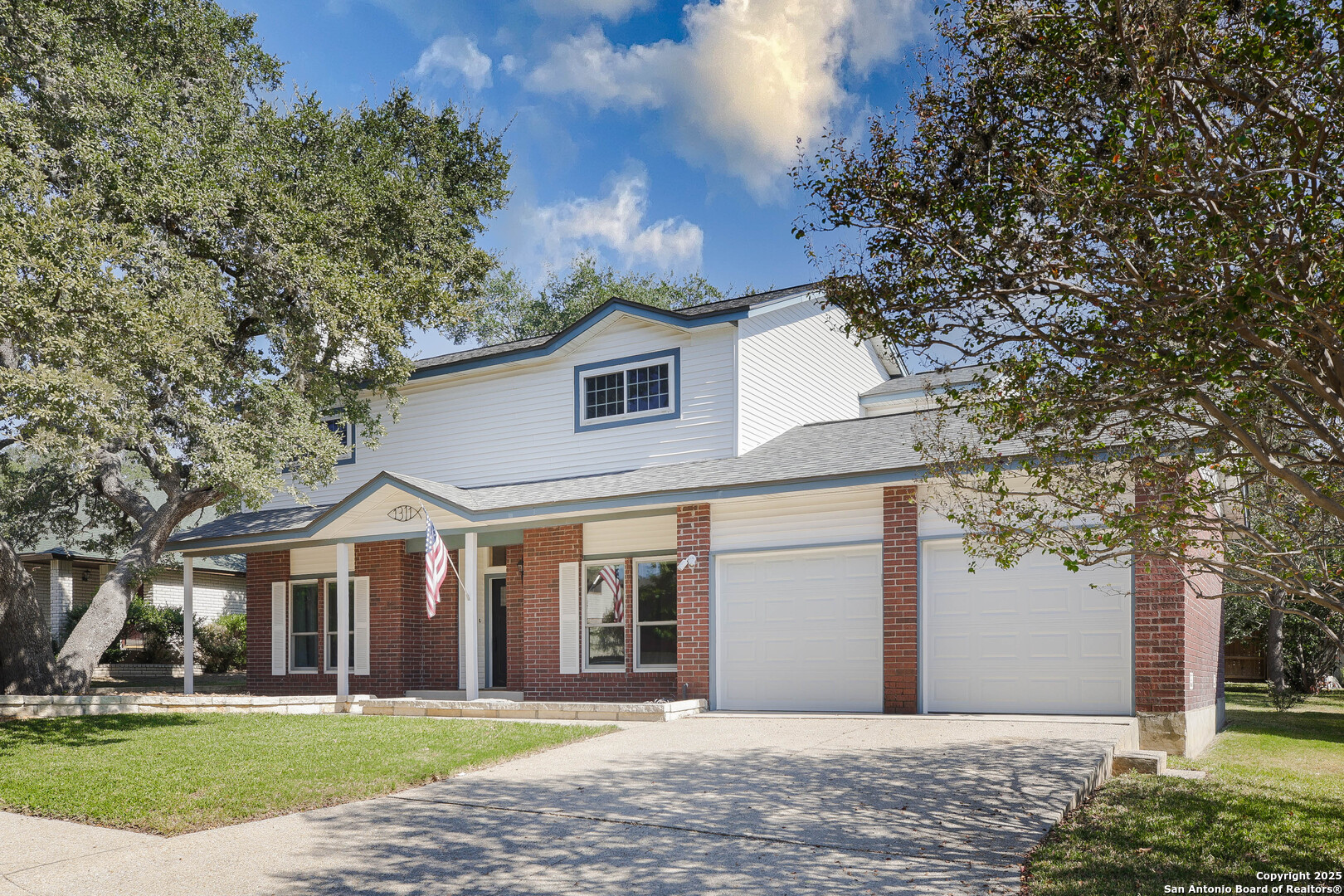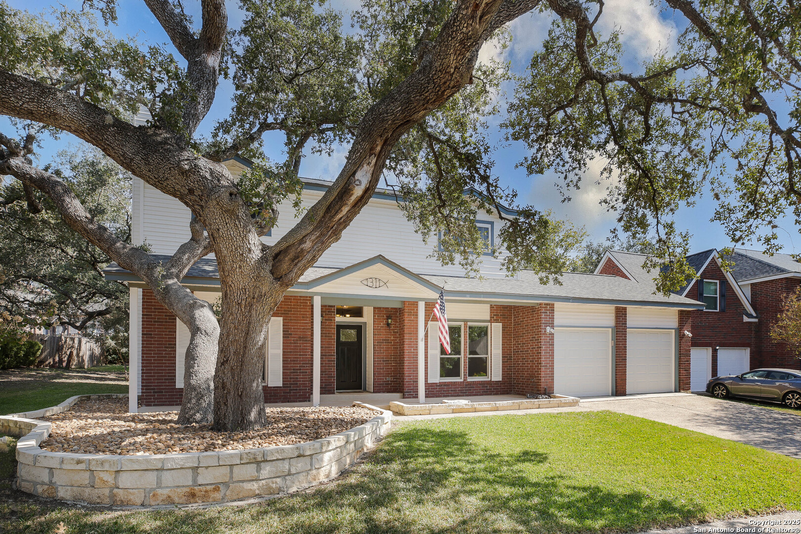 Step into this beautifully refreshed 4-bedroom, 2.5-bath custom-built home located in the heart of Stone Oak, offering the perfect blend of space, style, and convenience. Situated near NEISD schools, shopping, dining, and commuter routes, this home checks all the boxes for modern living. Enjoy peace of mind with a brand-new roof (2025), partial siding replacement, updated windows throughout, and new garage doors. Inside, the home boasts a thoughtful layout featuring two spacious living areas and two dining spaces, perfect for both everyday comfort and entertaining guests. The kitchen is a standout with granite countertops, a new stainless steel dishwasher and refrigerator, and ample cabinetry. Downstairs showcases engineered hardwood floors and an abundance of natural light. Upstairs, the private primary suite offers a tranquil retreat with a walk-in closet, cozy office nook, and access to a private deck with views of lush, mature trees-a serene spot to enjoy your morning coffee or unwind in the evening. The home has been freshly updated with new paint in the bedrooms, kitchen, and dining areas, giving it a bright and inviting feel. Outside, you'll find beautiful landscaping with established trees that provide both charm and privacy. (Note: backyard is open with no fence-perfect for enjoying the natural scenery.) Don't miss this move-in ready home!