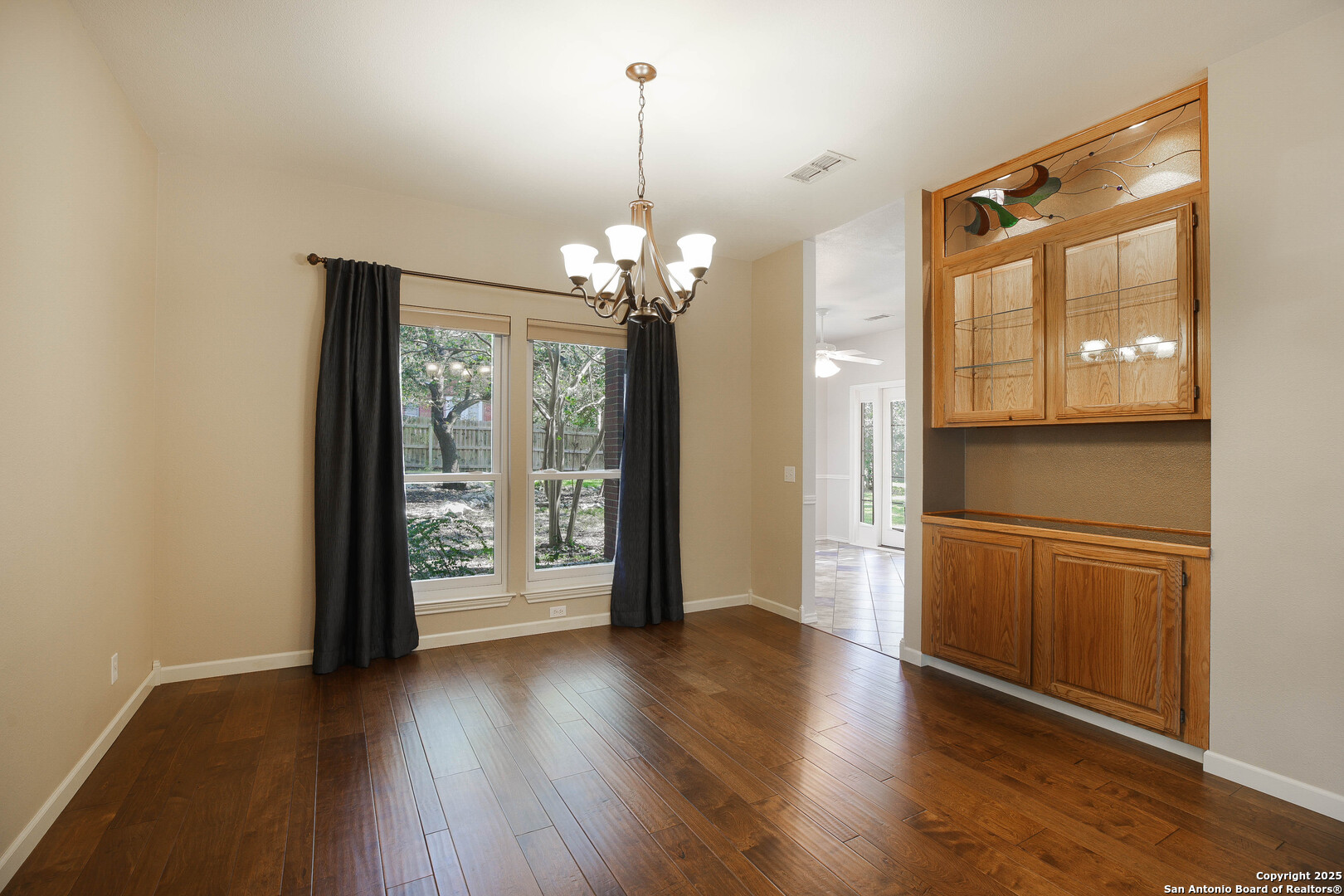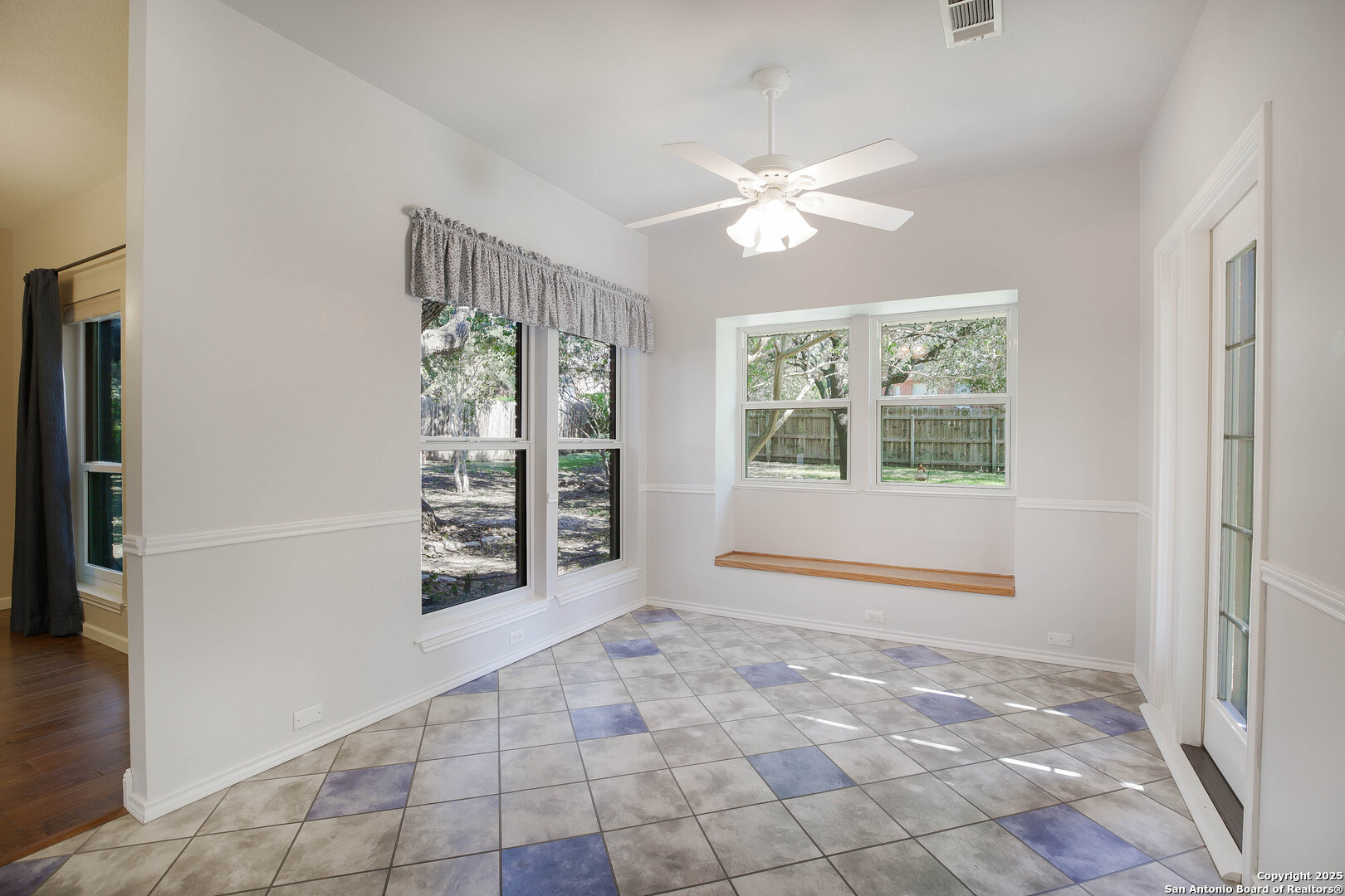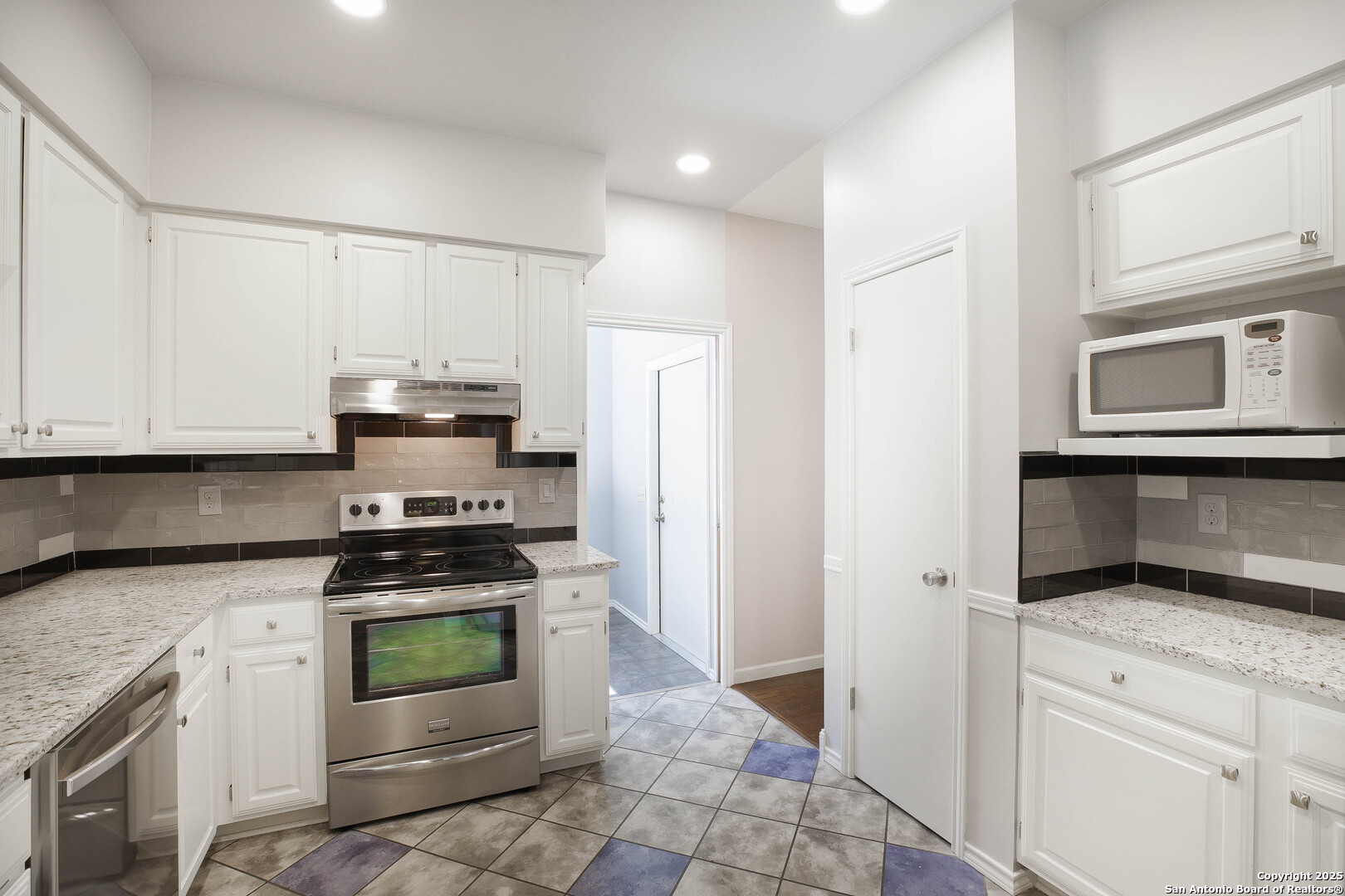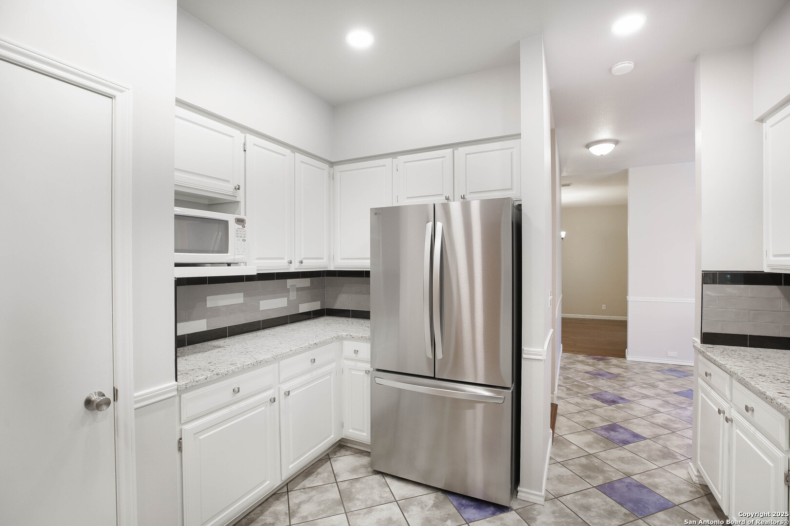 Step into this beautifully refreshed 4-bedroom, 2.5-bath custom-built home located in the heart of Stone Oak, offering the perfect blend of space, style, and convenience. Situated near NEISD schools, shopping, dining, and commuter routes, this home checks all the boxes for modern living. Enjoy peace of mind with a brand-new roof (2025), partial siding replacement, updated windows throughout, and new garage doors. Inside, the home boasts a thoughtful layout featuring two spacious living areas and two dining spaces, perfect for both everyday comfort and entertaining guests. The kitchen is a standout with granite countertops, a new stainless steel dishwasher and refrigerator, and ample cabinetry. Downstairs showcases engineered hardwood floors and an abundance of natural light. Upstairs, the private primary suite offers a tranquil retreat with a walk-in closet, cozy office nook, and access to a private deck with views of lush, mature trees-a serene spot to enjoy your morning coffee or unwind in the evening. The home has been freshly updated with new paint in the bedrooms, kitchen, and dining areas, giving it a bright and inviting feel. Outside, you'll find beautiful landscaping with established trees that provide both charm and privacy. (Note: backyard is open with no fence-perfect for enjoying the natural scenery.) Don't miss this move-in ready home!