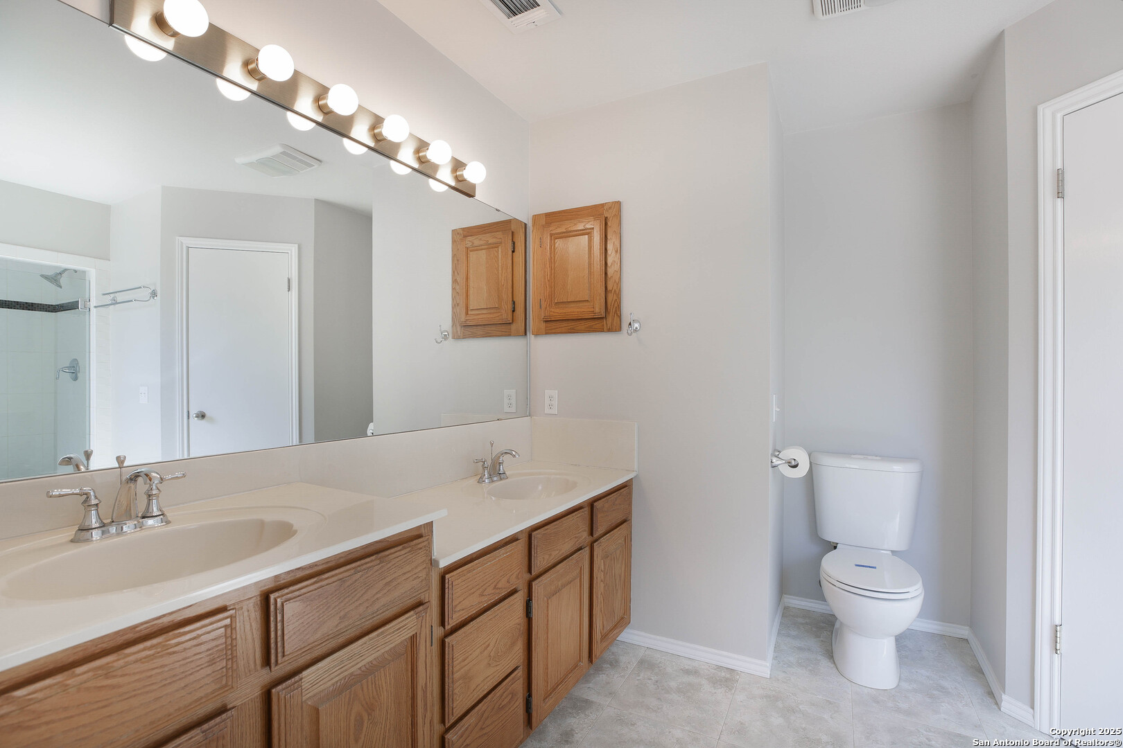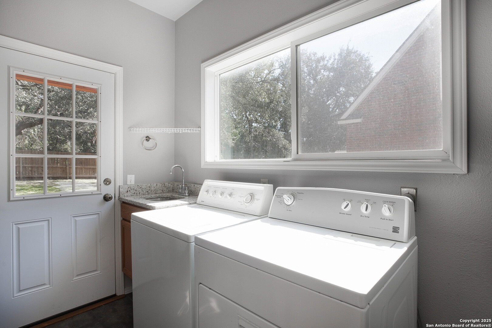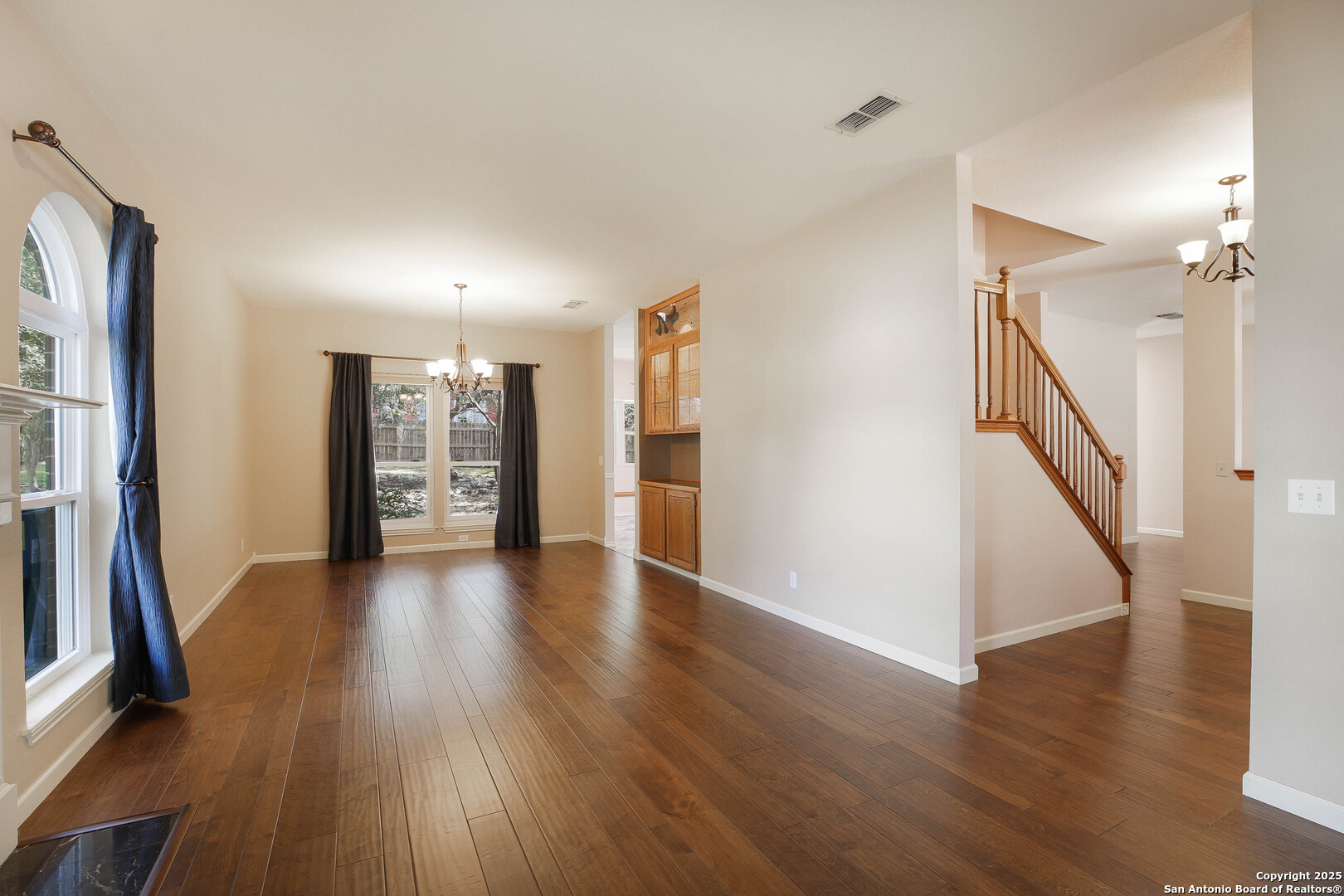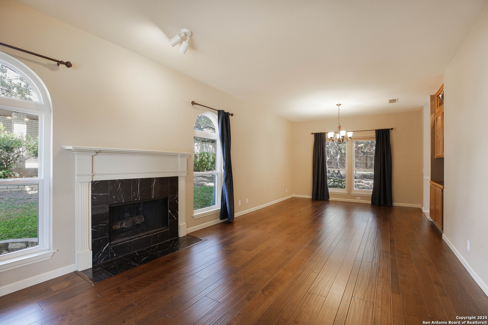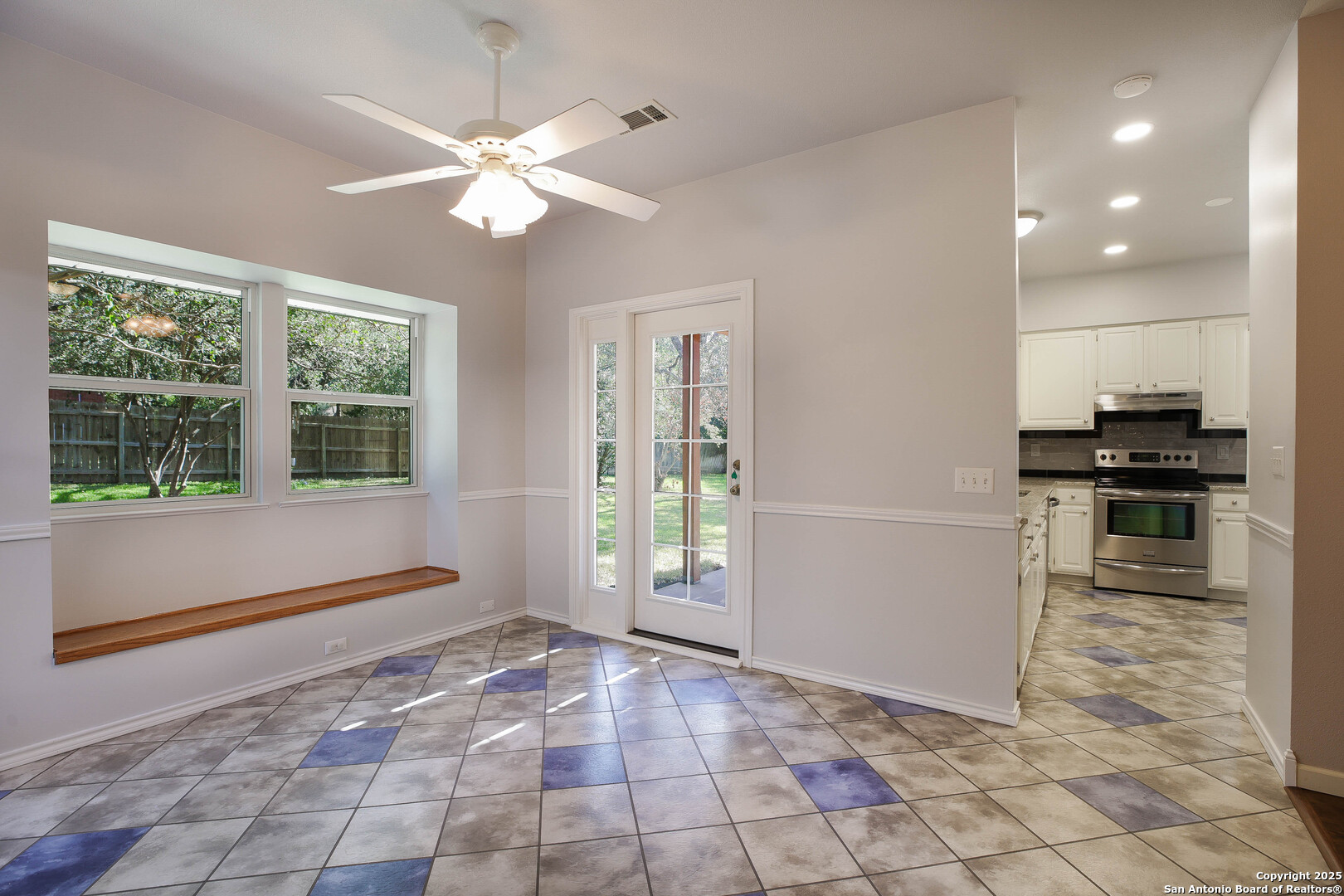 Step into this beautifully refreshed 4-bedroom, 2.5-bath custom-built home located in the heart of Stone Oak, offering the perfect blend of space, style, and convenience. Situated near NEISD schools, shopping, dining, and commuter routes, this home checks all the boxes for modern living. Enjoy peace of mind with a brand-new roof (2025), partial siding replacement, updated windows throughout, and new garage doors. Inside, the home boasts a thoughtful layout featuring two spacious living areas and two dining spaces, perfect for both everyday comfort and entertaining guests. The kitchen is a standout with granite countertops, a new stainless steel dishwasher and refrigerator, and ample cabinetry. Downstairs showcases engineered hardwood floors and an abundance of natural light. Upstairs, the private primary suite offers a tranquil retreat with a walk-in closet, cozy office nook, and access to a private deck with views of lush, mature trees-a serene spot to enjoy your morning coffee or unwind in the evening. The home has been freshly updated with new paint in the bedrooms, kitchen, and dining areas, giving it a bright and inviting feel. Outside, you'll find beautiful landscaping with established trees that provide both charm and privacy. (Note: backyard is open with no fence-perfect for enjoying the natural scenery.) Don't miss this move-in ready home!
