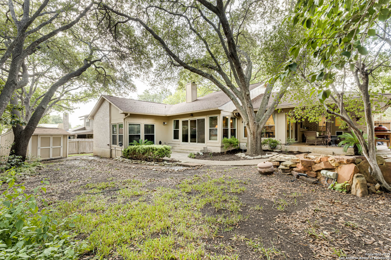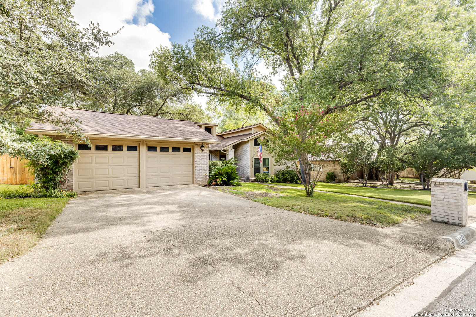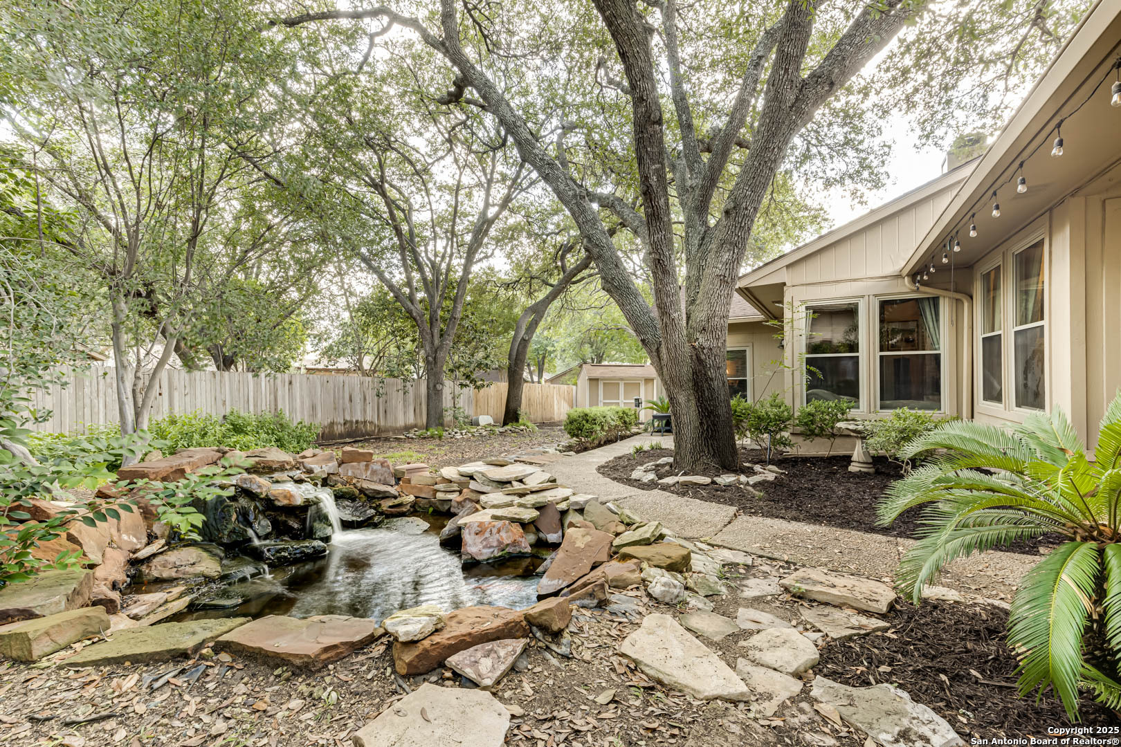 Desirable Hunters Creek home with curb appeal. Great central location! Beautiful single story home with lots of windows. Living room has high ceilings, fireplace and built-ins. Wood floors. Spacious kitchen with granite counters and under cabinet lighting. Oven, microwave, and dishwasher replaced in 2017. All bedrooms have high ceilings. Primary Primary bathroom shower replaced and has skylight. Second bathroom updated in 2018 - carpet removed, painted, new tile, and new mirrors. All windows replaced in 2017 except for one window in garage. Carpet replaced in 2017. HVAC replaced 2018. Water heater replaced approximately 2020. Roof replaced approximately 2016. Garage door opener replaced 2022. Exterior paint 2017. Large covered patio overlooks shady backyard with fish pond. Fish do not stay. Gas attachment for a BBQ is next to the patio. Shed approximately 2018. Walk to neighborhood pool, tennis courts, and clubhouse, voluntary membership. 2300 sq ft per Appraiser, 2245 sq ft per BCAD.