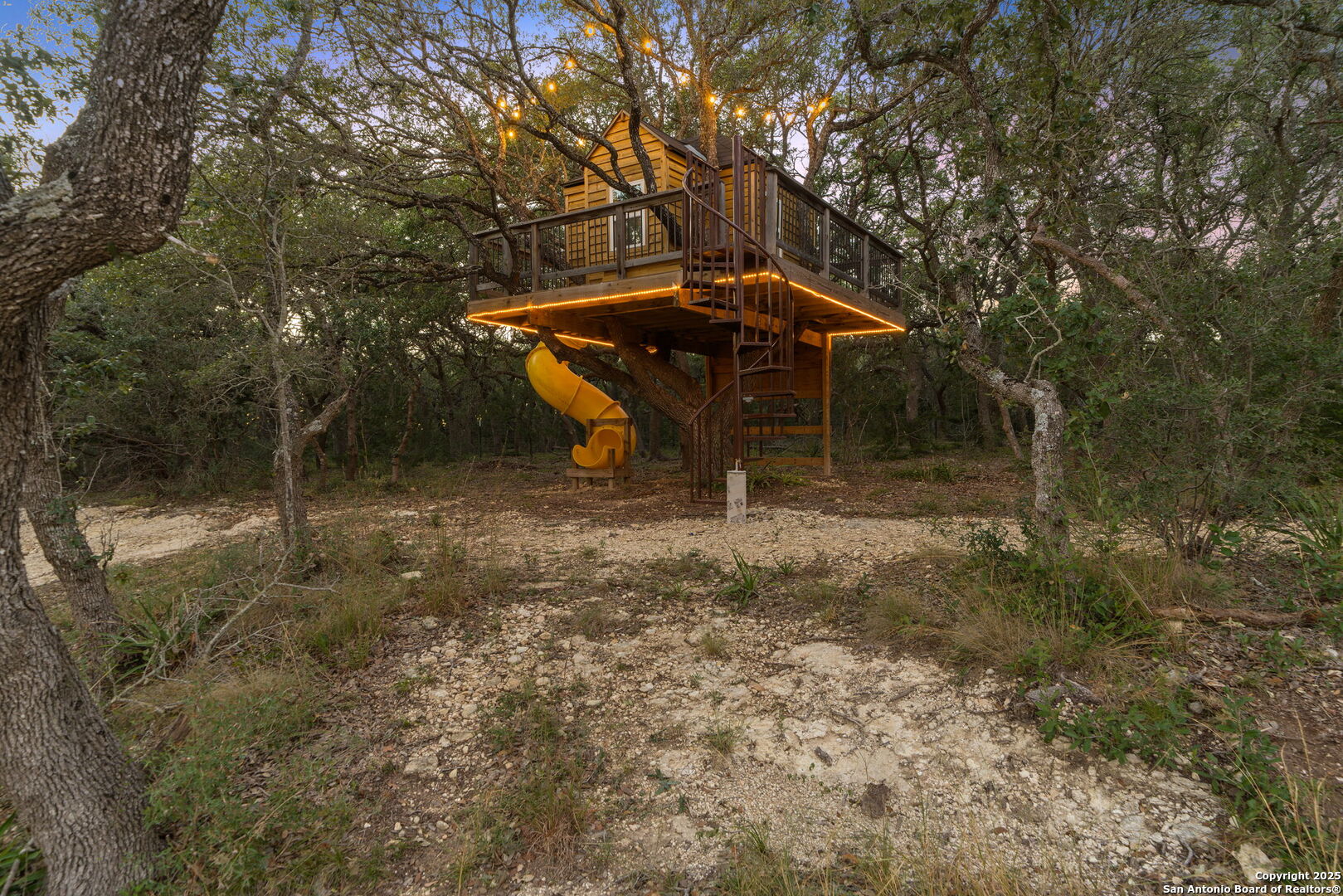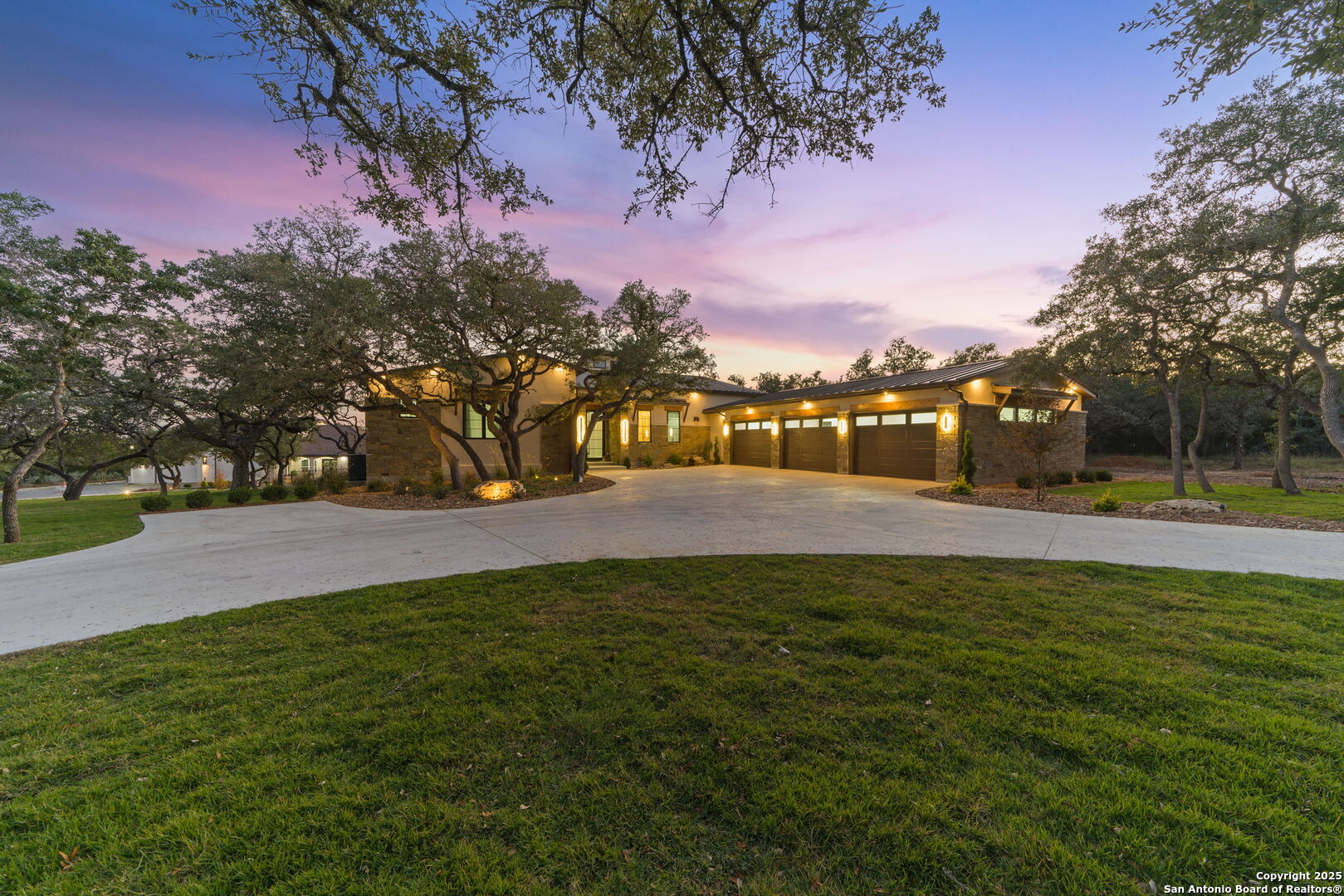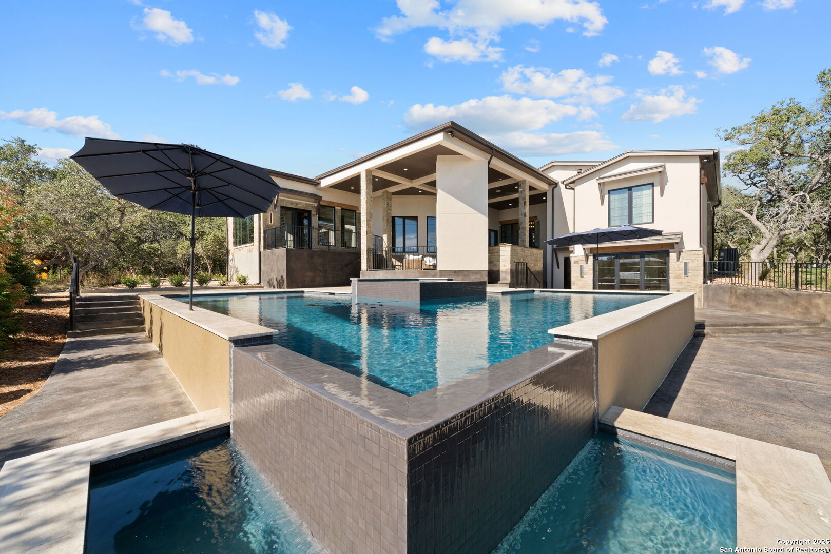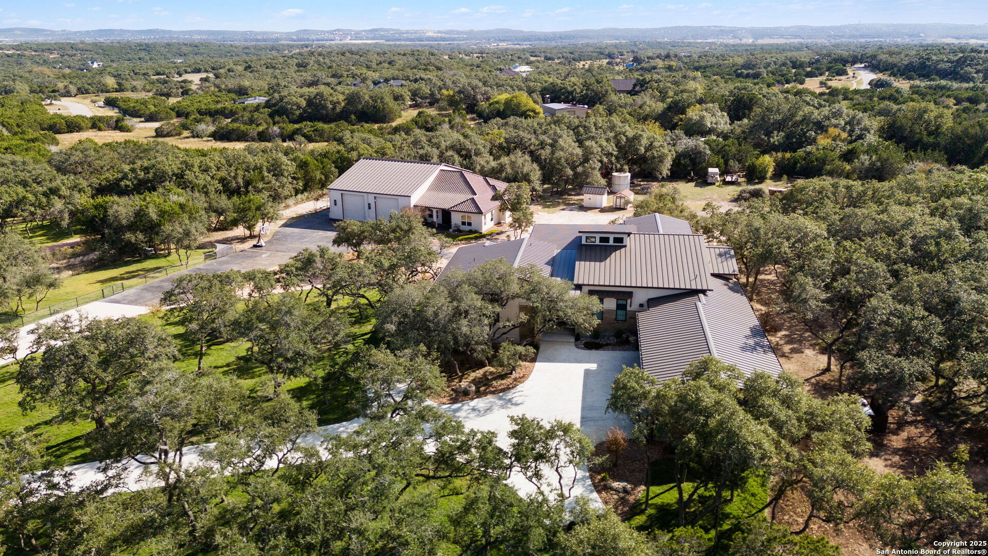 The Ultimate Hill Country Compound. Tucked away in the prestigious gated community of Monteola, this private estate combines resort-style amenities with the charm of Texas Hill Country living-just minutes from city conveniences. Resting on 5.22 acres the main home, completed in 2023, showcases 3 bedrooms and 3.5 baths with a striking open floor plan highlighted by 13-foot ceilings and walls of windows. Entertainment abounds with a dedicated theater, game and billiards room, and seamless flow into expansive outdoor living areas. A resort-style pool with cascading spa, vibrant landscaping, outdoor speakers, and a 16-foot covered patio create the perfect backdrop for gatherings large or small. For extended stays or multi-generational living, the 1,786 sq. ft. guest house offers comfort and privacy, while the 3,500 sq. ft. insulated shop provides endless flexibility. Every detail of this compound-from the custom pool design to the luxury finishes-was crafted to deliver the ultimate family retreat and entertainer's dream. Shop has septic hook up , water and power for motorhome. This property is on a private well. Kid tree house also has power.