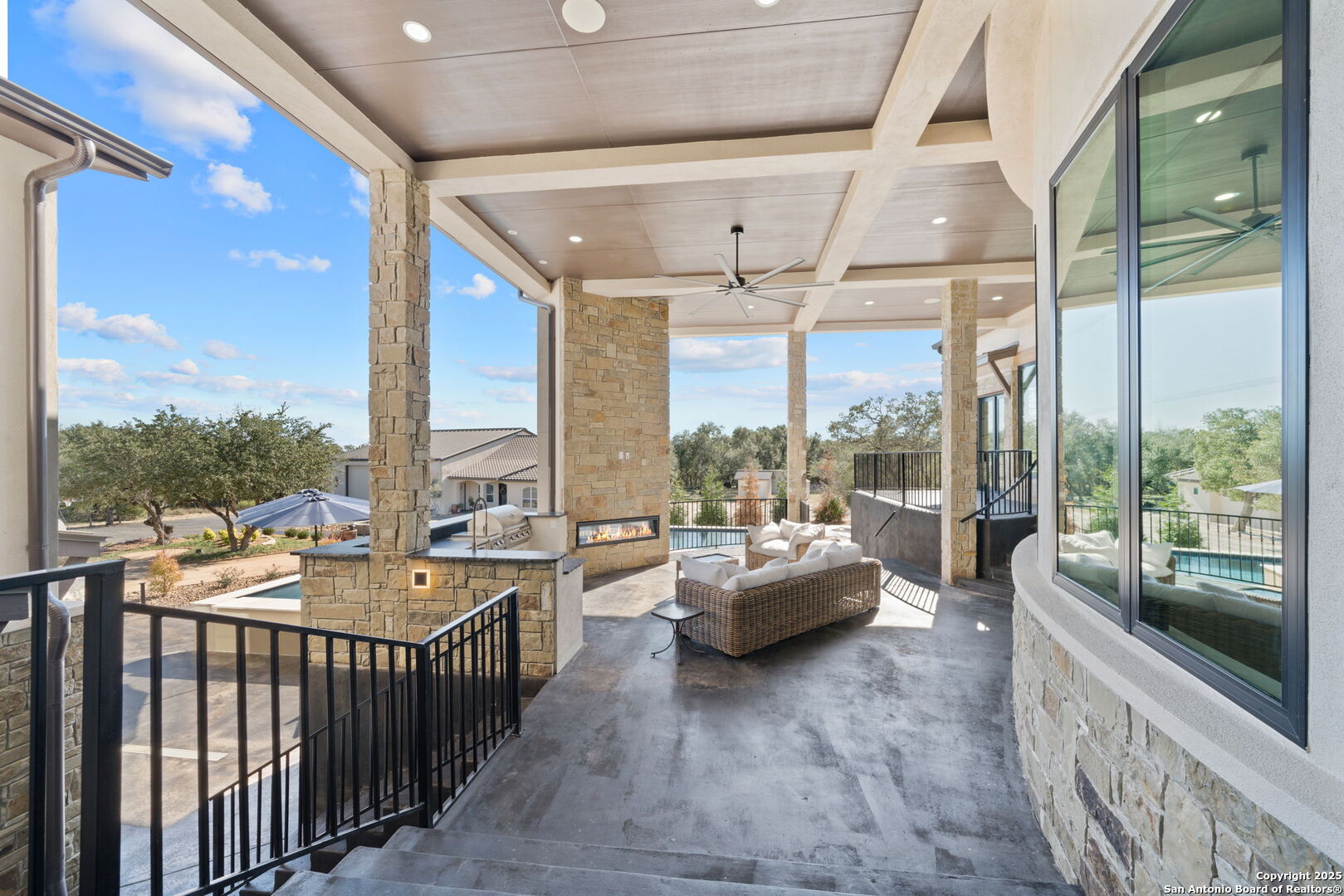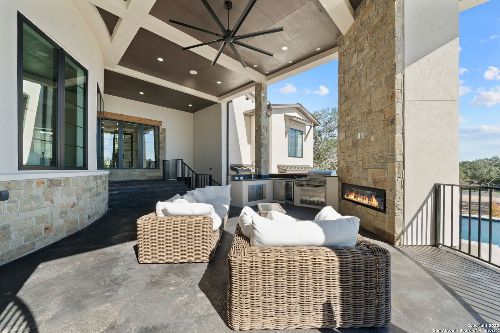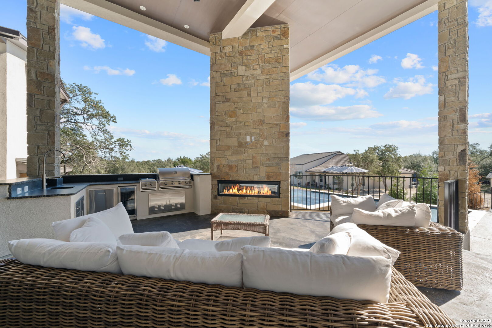 The Ultimate Hill Country Compound. Tucked away in the prestigious gated community of Monteola, this private estate combines resort-style amenities with the charm of Texas Hill Country living-just minutes from city conveniences. Resting on 5.22 acres the main home, completed in 2023, showcases 3 bedrooms and 3.5 baths with a striking open floor plan highlighted by 13-foot ceilings and walls of windows. Entertainment abounds with a dedicated theater, game and billiards room, and seamless flow into expansive outdoor living areas. A resort-style pool with cascading spa, vibrant landscaping, outdoor speakers, and a 16-foot covered patio create the perfect backdrop for gatherings large or small. For extended stays or multi-generational living, the 1,786 sq. ft. guest house offers comfort and privacy, while the 3,500 sq. ft. insulated shop provides endless flexibility. Every detail of this compound-from the custom pool design to the luxury finishes-was crafted to deliver the ultimate family retreat and entertainer's dream. Shop has septic hook up , water and power for motorhome. This property is on a private well. Kid tree house also has power.