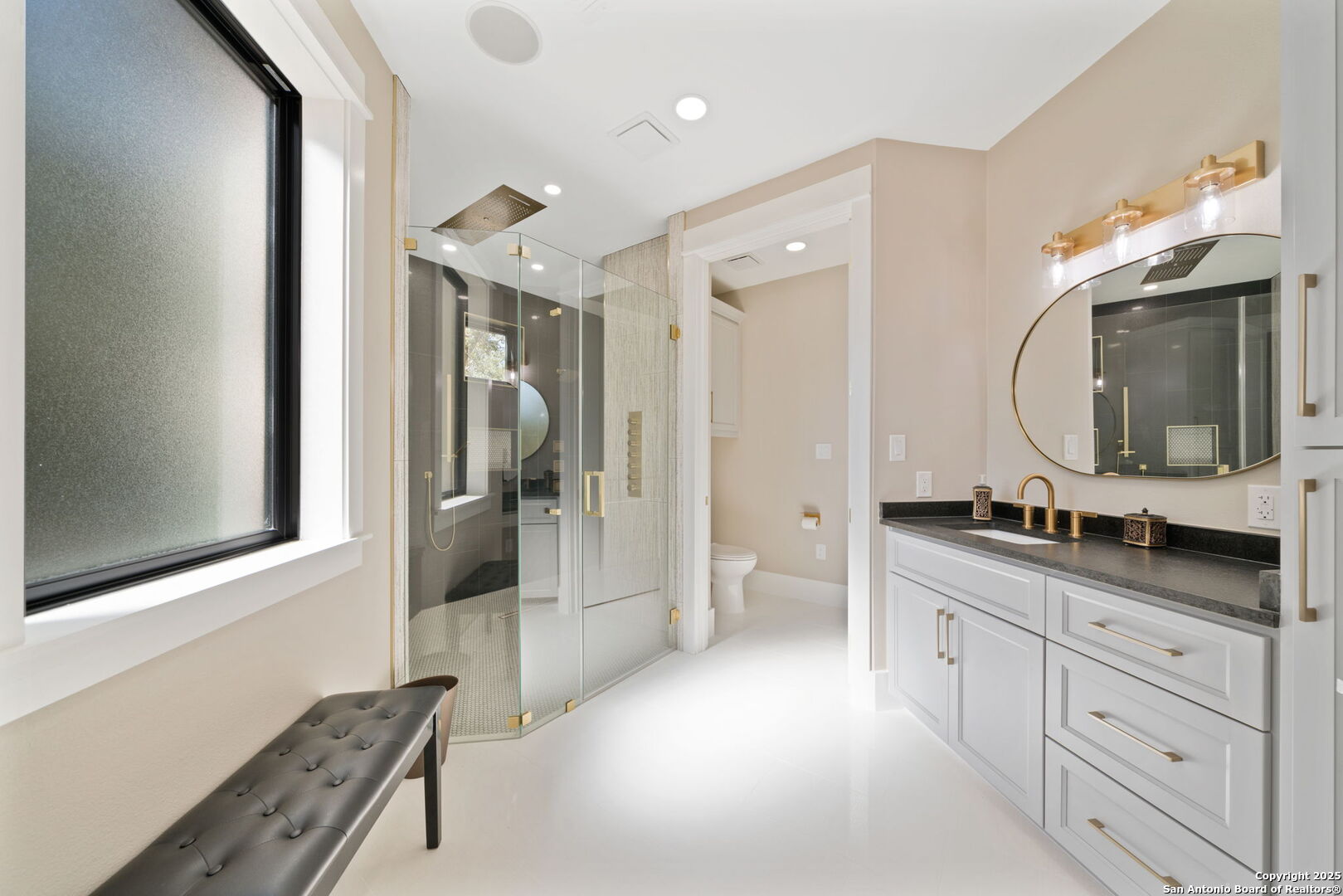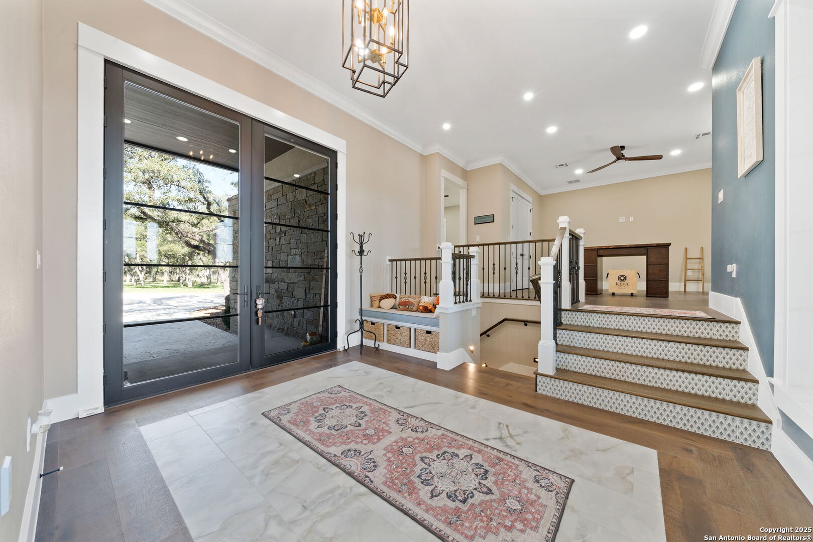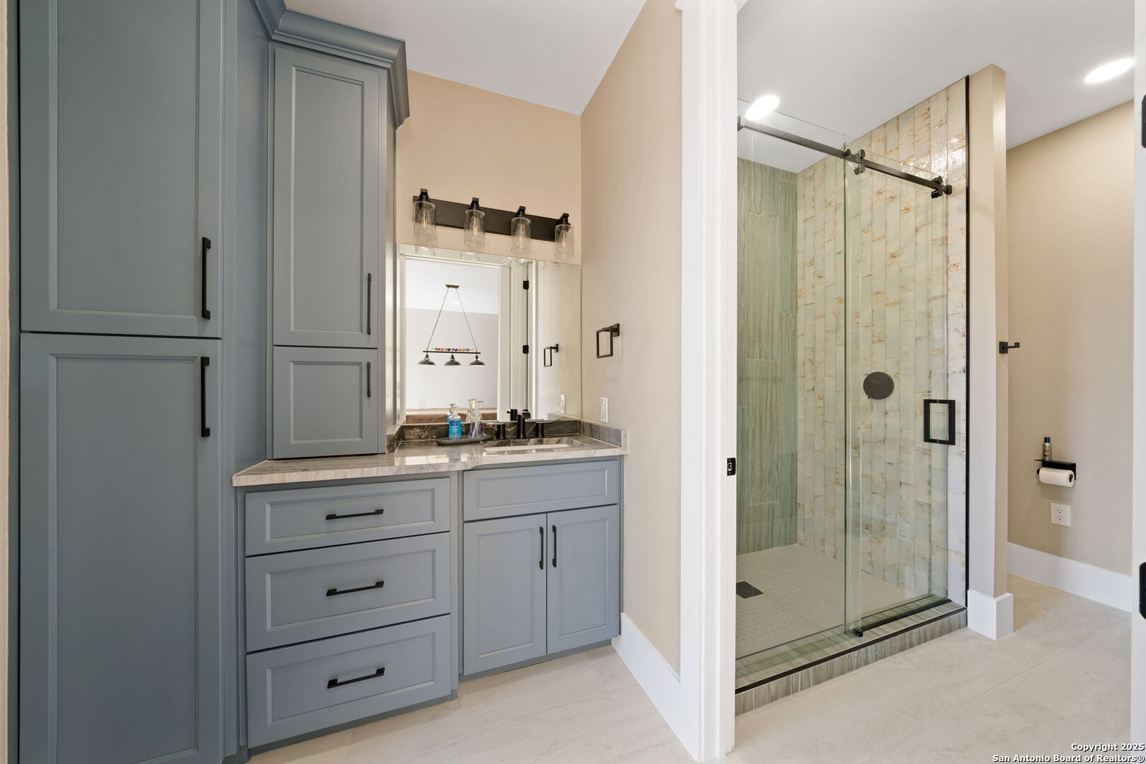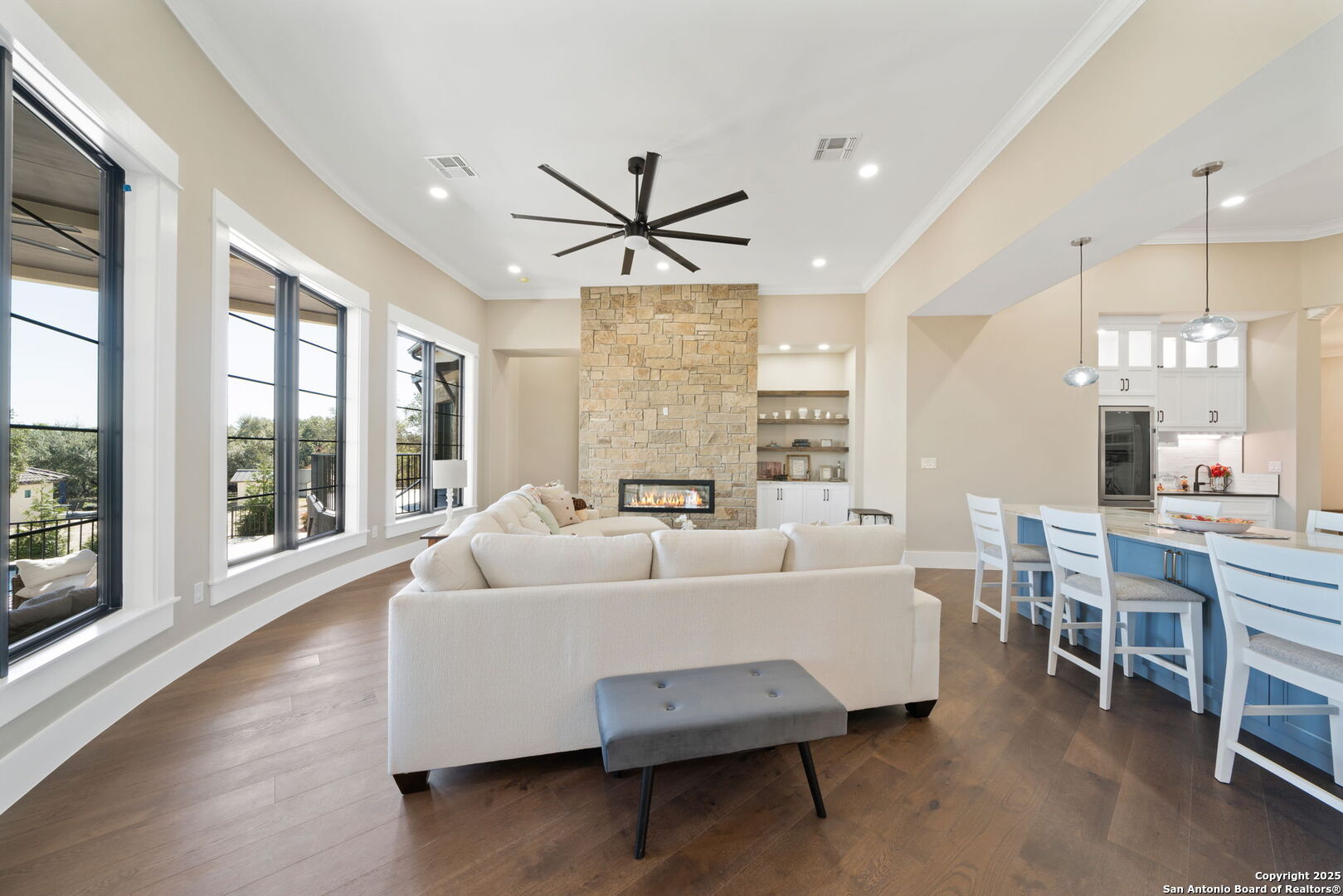 The Ultimate Hill Country Compound. Tucked away in the prestigious gated community of Monteola, this private estate combines resort-style amenities with the charm of Texas Hill Country living-just minutes from city conveniences. Resting on 5.22 acres the main home, completed in 2023, showcases 3 bedrooms and 3.5 baths with a striking open floor plan highlighted by 13-foot ceilings and walls of windows. Entertainment abounds with a dedicated theater, game and billiards room, and seamless flow into expansive outdoor living areas. A resort-style pool with cascading spa, vibrant landscaping, outdoor speakers, and a 16-foot covered patio create the perfect backdrop for gatherings large or small. For extended stays or multi-generational living, the 1,786 sq. ft. guest house offers comfort and privacy, while the 3,500 sq. ft. insulated shop provides endless flexibility. Every detail of this compound-from the custom pool design to the luxury finishes-was crafted to deliver the ultimate family retreat and entertainer's dream. Shop has septic hook up , water and power for motorhome. This property is on a private well. Kid tree house also has power.