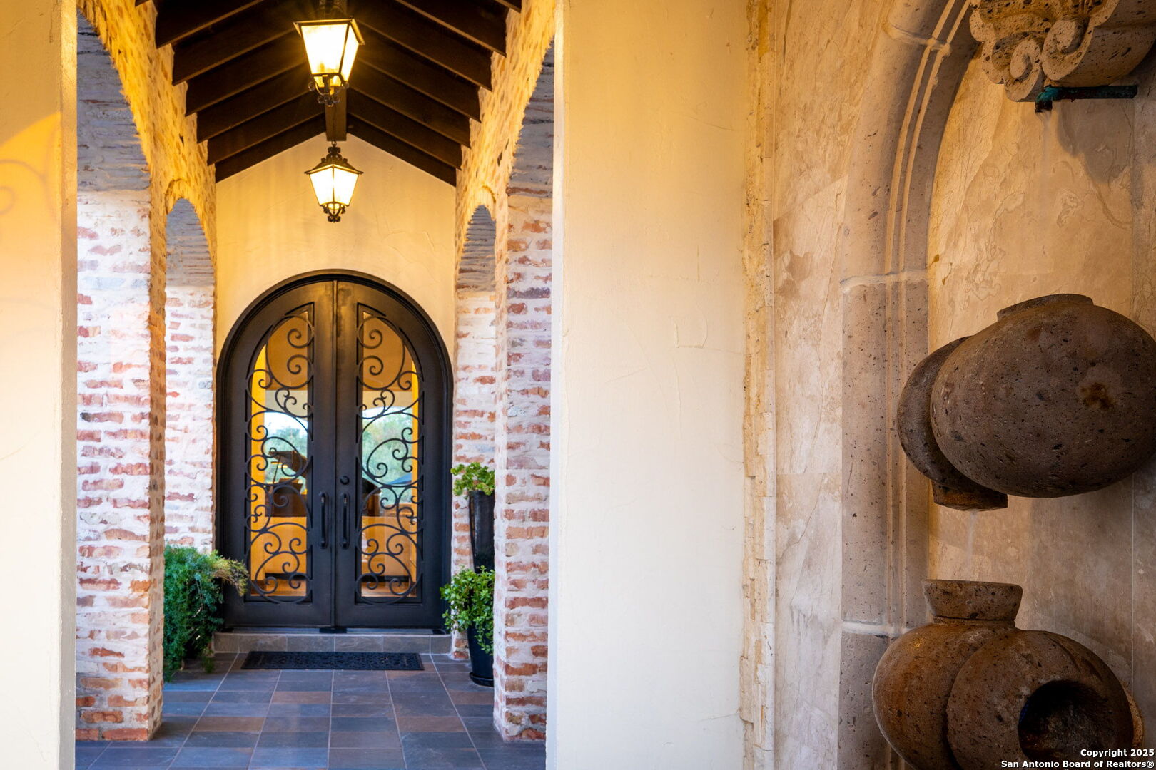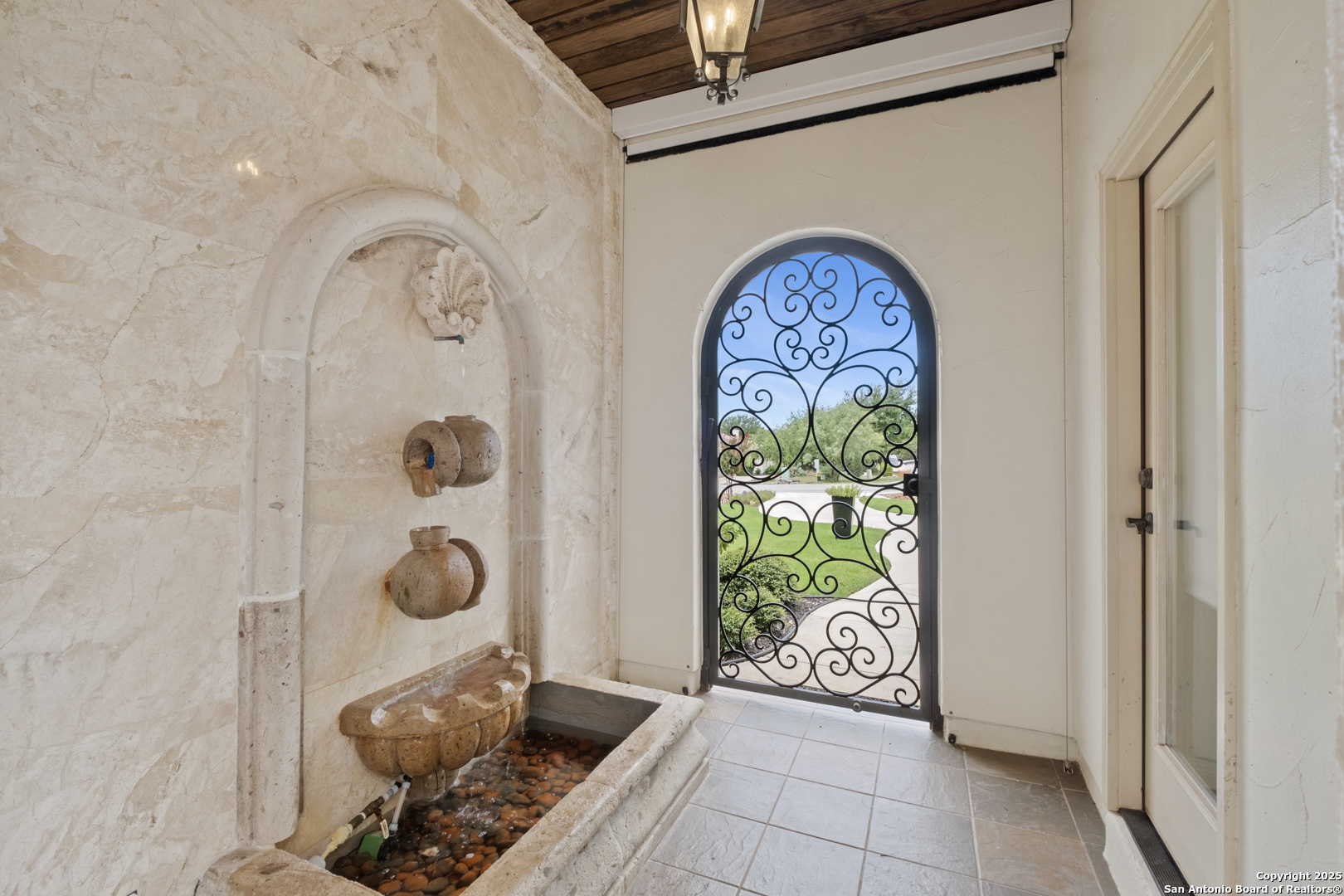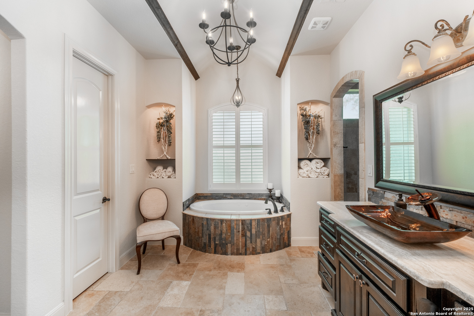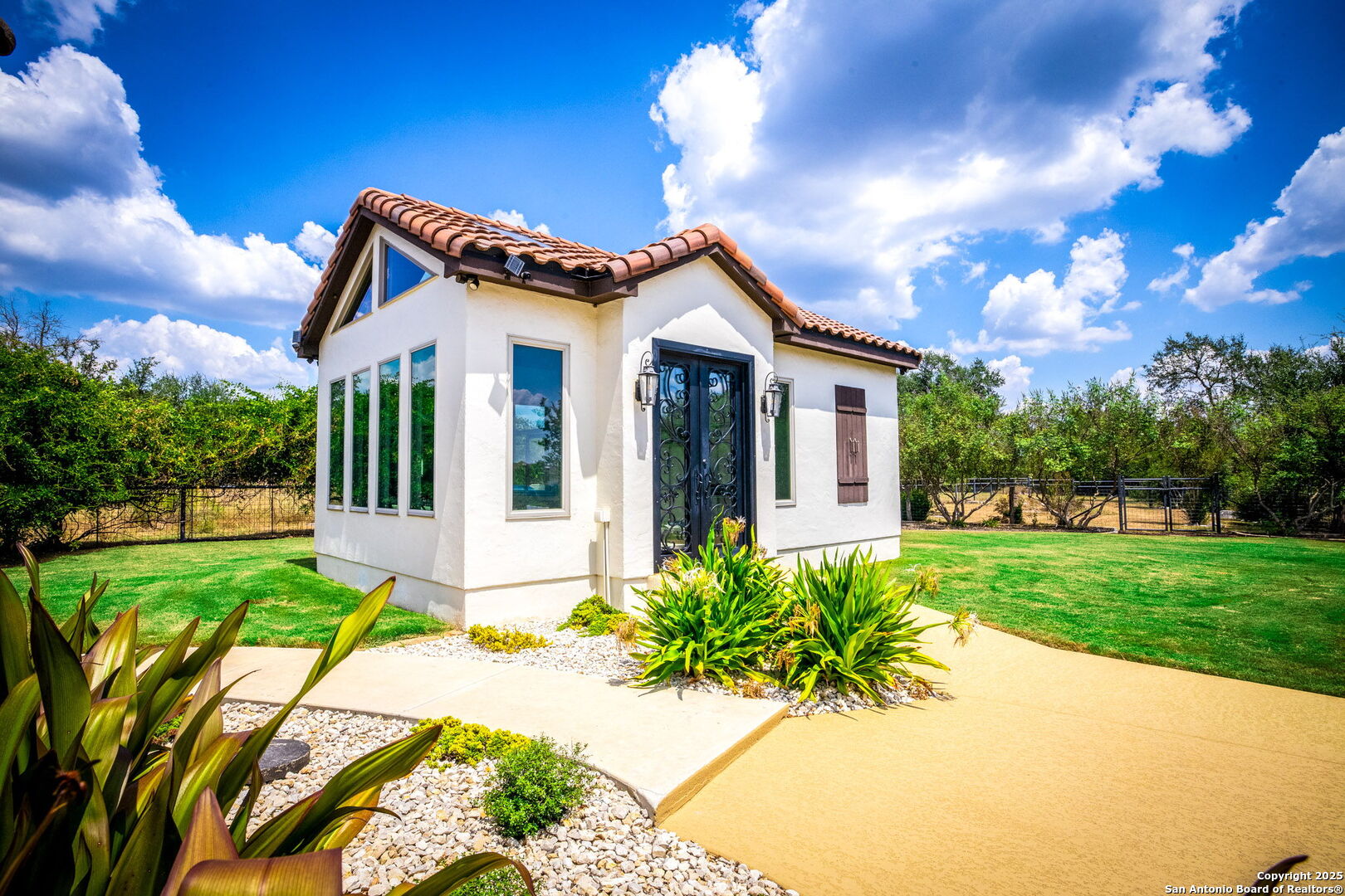 Old World Architecture masterfully blends European Elegance with Modern Luxury! Located in Prestigious Vintage Oaks Nestled on a 1-acre lot, this 5-bedroom, 4.5-bath will not disappoint! Enter through the wrought iron gate into gorgeous private courtyard adorned with arches, wood burning fireplace. Attached casita for multi-generational family or quiet getaway for guests. Enter into main home through the double wrought iron doors passing down foyer with barrel roll ceiling into the sprawling living room with open and expansive feel. Fireplace stands floor to ceiling. The impressive European-style gourmet kitchen, adorned with knotty alder cabinets and commercial grade appliances, is complemented by a separate chef's prep kitchen and two inviting eating areas, perfect for grand entertaining. Offset in the formal dining you can house your favorite wines or China in separate bar room. The private owner's retreat is a sanctuary, featuring a spacious bedroom with a cozy seating area, a lavish bathroom with a jetted tub, large walk-in shower, dual vanities, a makeup vanity, and two generous closets. The study is nestled in back of home for quiet concentration. The other 3 bedrooms are situated down private hallway with possibility of a flex space. Unwind in the luxurious heated saltwater pool and hot tub, or cultivate your garden in the exquisite greenhouse, equipped with electricity, water, and heat with many other options to convert to your own liking. Dedicated dog run or garden area is fenced separately. Custom chandeliers, blinds, and exposed wood ceilings and beams accent the home's sophisticated charm. This Vintage Oaks masterpiece, bathed in natural light, is a rare gem of unparalleled style and comfort! Resort style amenities to add. Clubhouse, 3 pools, fitness center, volleyball court, pickleball courts, basketball court and walking trails. Seller motivated.