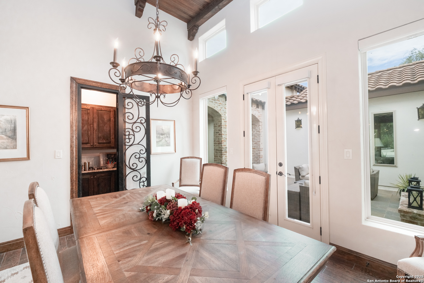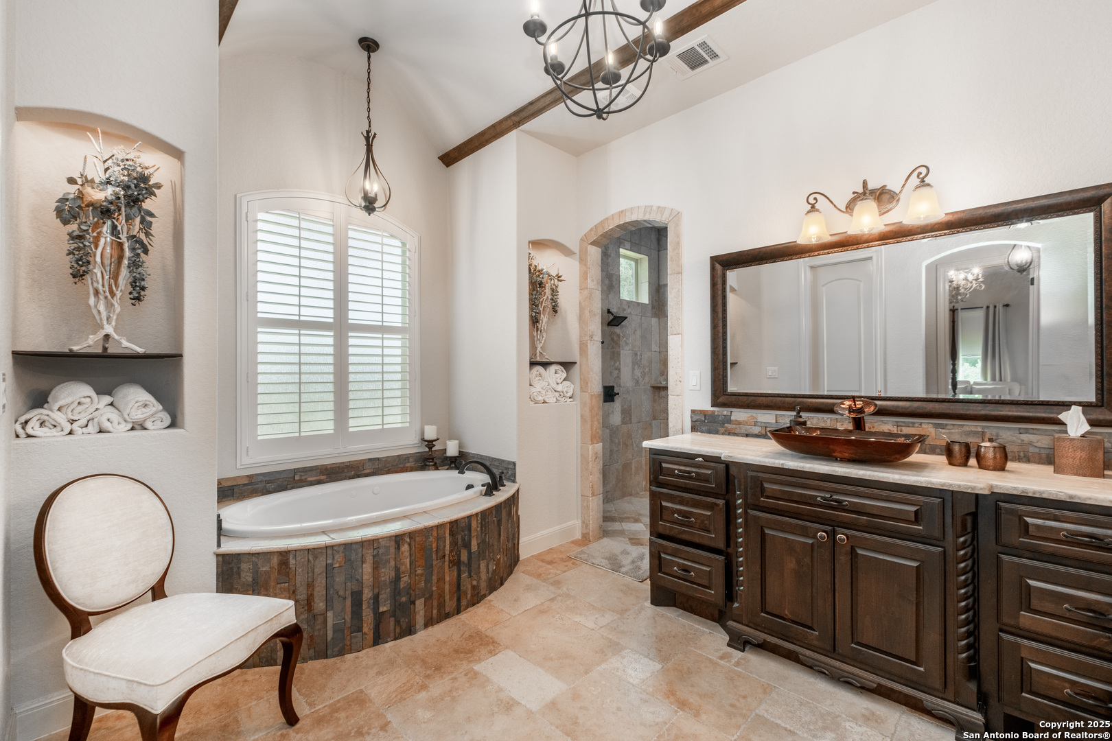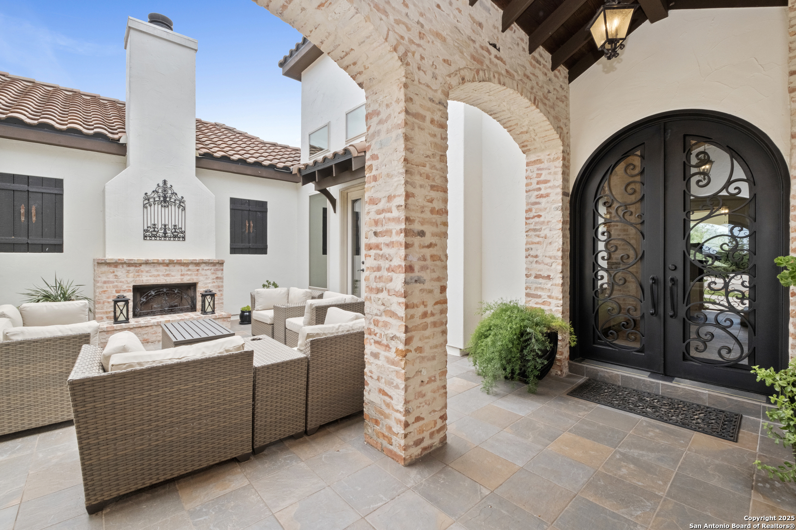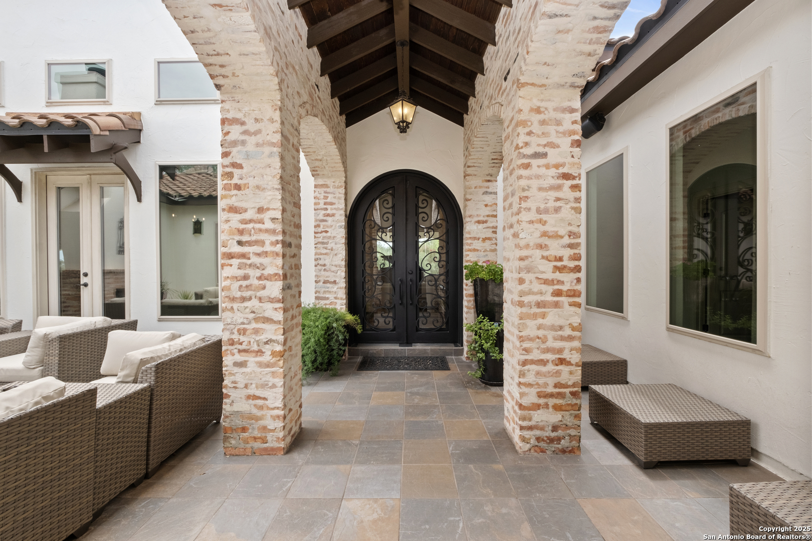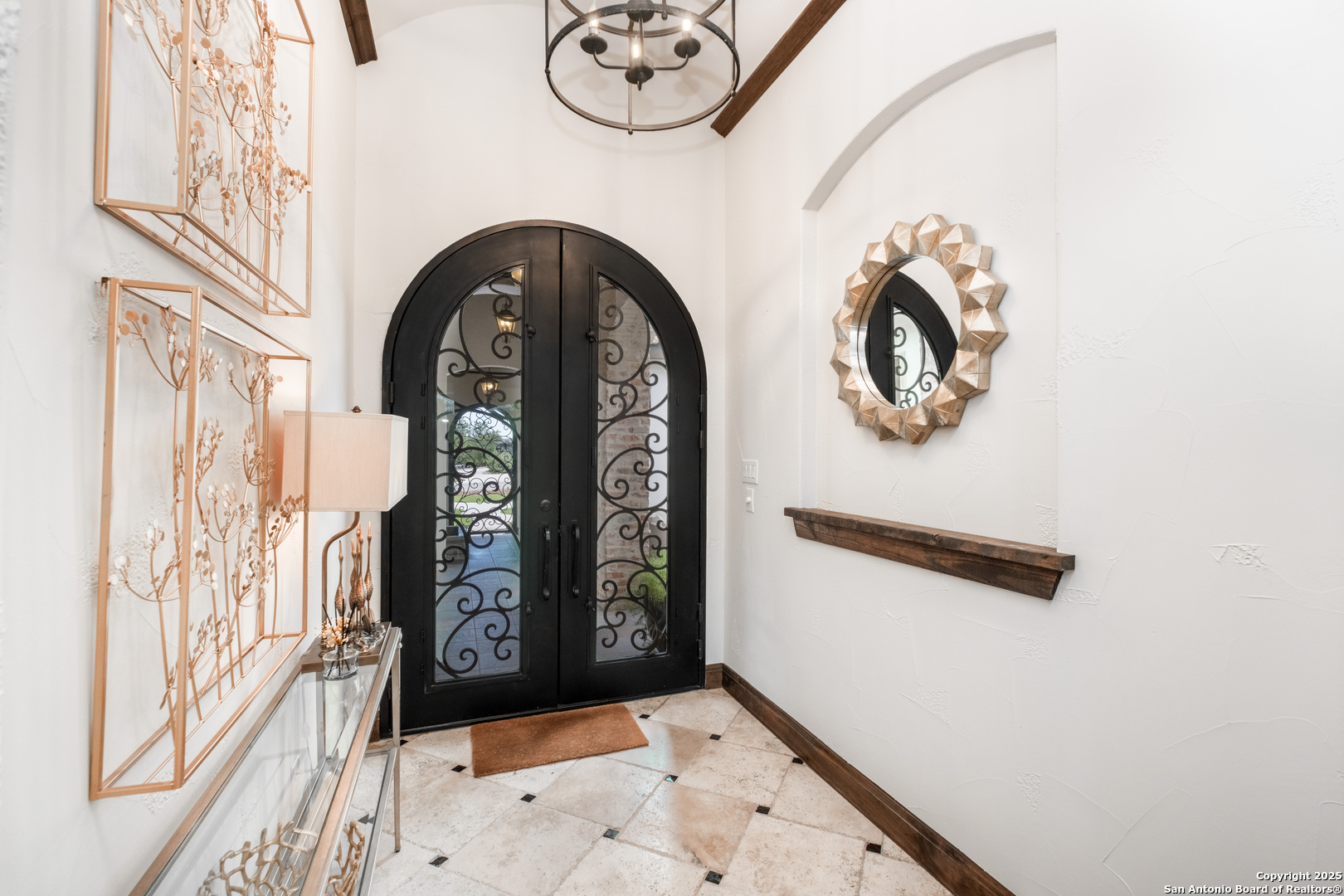 Old World Architecture masterfully blends European Elegance with Modern Luxury! Located in Prestigious Vintage Oaks Nestled on a 1-acre lot, this 5-bedroom, 4.5-bath will not disappoint! Enter through the wrought iron gate into gorgeous private courtyard adorned with arches, wood burning fireplace. Attached casita for multi-generational family or quiet getaway for guests. Enter into main home through the double wrought iron doors passing down foyer with barrel roll ceiling into the sprawling living room with open and expansive feel. Fireplace stands floor to ceiling. The impressive European-style gourmet kitchen, adorned with knotty alder cabinets and commercial grade appliances, is complemented by a separate chef's prep kitchen and two inviting eating areas, perfect for grand entertaining. Offset in the formal dining you can house your favorite wines or China in separate bar room. The private owner's retreat is a sanctuary, featuring a spacious bedroom with a cozy seating area, a lavish bathroom with a jetted tub, large walk-in shower, dual vanities, a makeup vanity, and two generous closets. The study is nestled in back of home for quiet concentration. The other 3 bedrooms are situated down private hallway with possibility of a flex space. Unwind in the luxurious heated saltwater pool and hot tub, or cultivate your garden in the exquisite greenhouse, equipped with electricity, water, and heat with many other options to convert to your own liking. Dedicated dog run or garden area is fenced separately. Custom chandeliers, blinds, and exposed wood ceilings and beams accent the home's sophisticated charm. This Vintage Oaks masterpiece, bathed in natural light, is a rare gem of unparalleled style and comfort! Resort style amenities to add. Clubhouse, 3 pools, fitness center, volleyball court, pickleball courts, basketball court and walking trails. Seller motivated.
