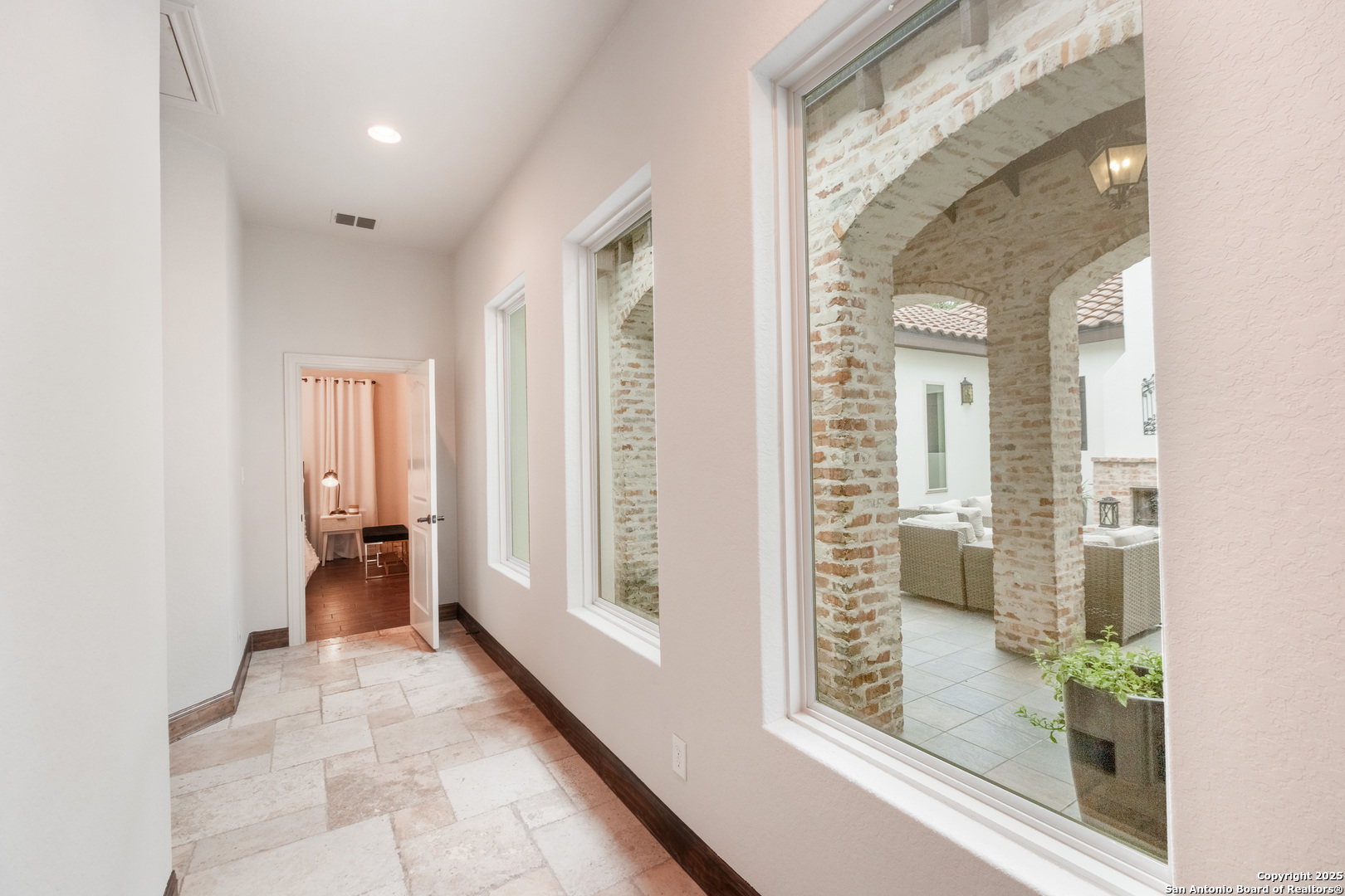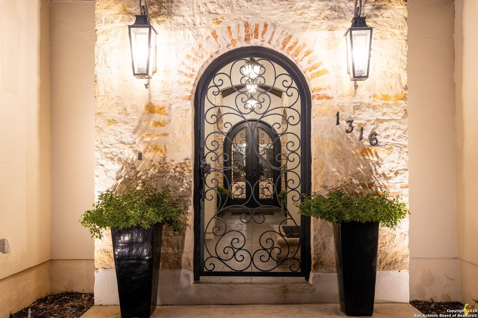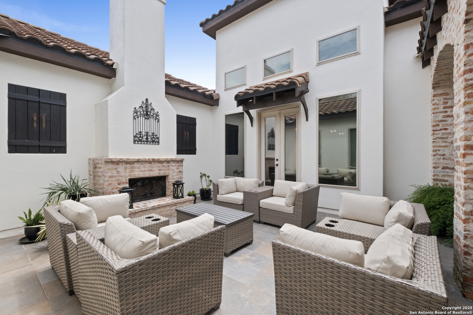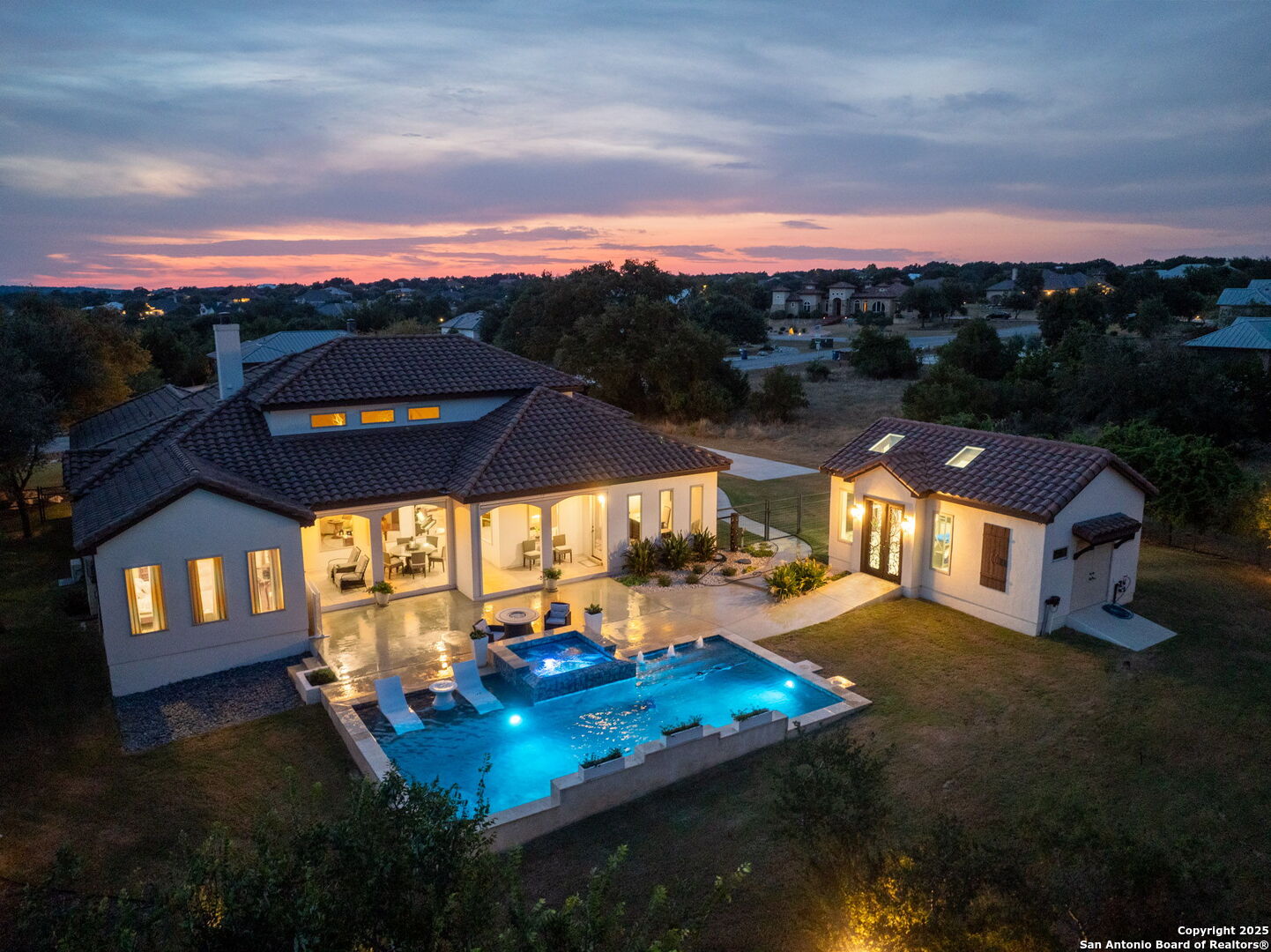 Old World Architecture masterfully blends European Elegance with Modern Luxury! Located in Prestigious Vintage Oaks Nestled on a 1-acre lot, this 5-bedroom, 4.5-bath will not disappoint! Enter through the wrought iron gate into gorgeous private courtyard adorned with arches, wood burning fireplace. Attached casita for multi-generational family or quiet getaway for guests. Enter into main home through the double wrought iron doors passing down foyer with barrel roll ceiling into the sprawling living room with open and expansive feel. Fireplace stands floor to ceiling. The impressive European-style gourmet kitchen, adorned with knotty alder cabinets and commercial grade appliances, is complemented by a separate chef's prep kitchen and two inviting eating areas, perfect for grand entertaining. Offset in the formal dining you can house your favorite wines or China in separate bar room. The private owner's retreat is a sanctuary, featuring a spacious bedroom with a cozy seating area, a lavish bathroom with a jetted tub, large walk-in shower, dual vanities, a makeup vanity, and two generous closets. The study is nestled in back of home for quiet concentration. The other 3 bedrooms are situated down private hallway with possibility of a flex space. Unwind in the luxurious heated saltwater pool and hot tub, or cultivate your garden in the exquisite greenhouse, equipped with electricity, water, and heat with many other options to convert to your own liking. Dedicated dog run or garden area is fenced separately. Custom chandeliers, blinds, and exposed wood ceilings and beams accent the home's sophisticated charm. This Vintage Oaks masterpiece, bathed in natural light, is a rare gem of unparalleled style and comfort! Resort style amenities to add. Clubhouse, 3 pools, fitness center, volleyball court, pickleball courts, basketball court and walking trails. Seller motivated.